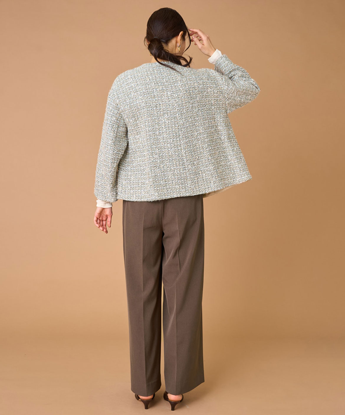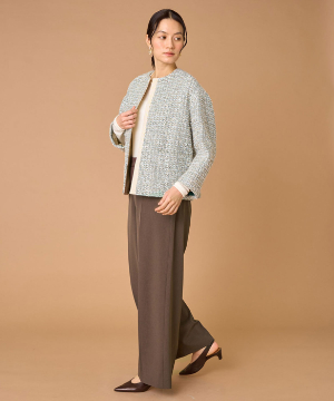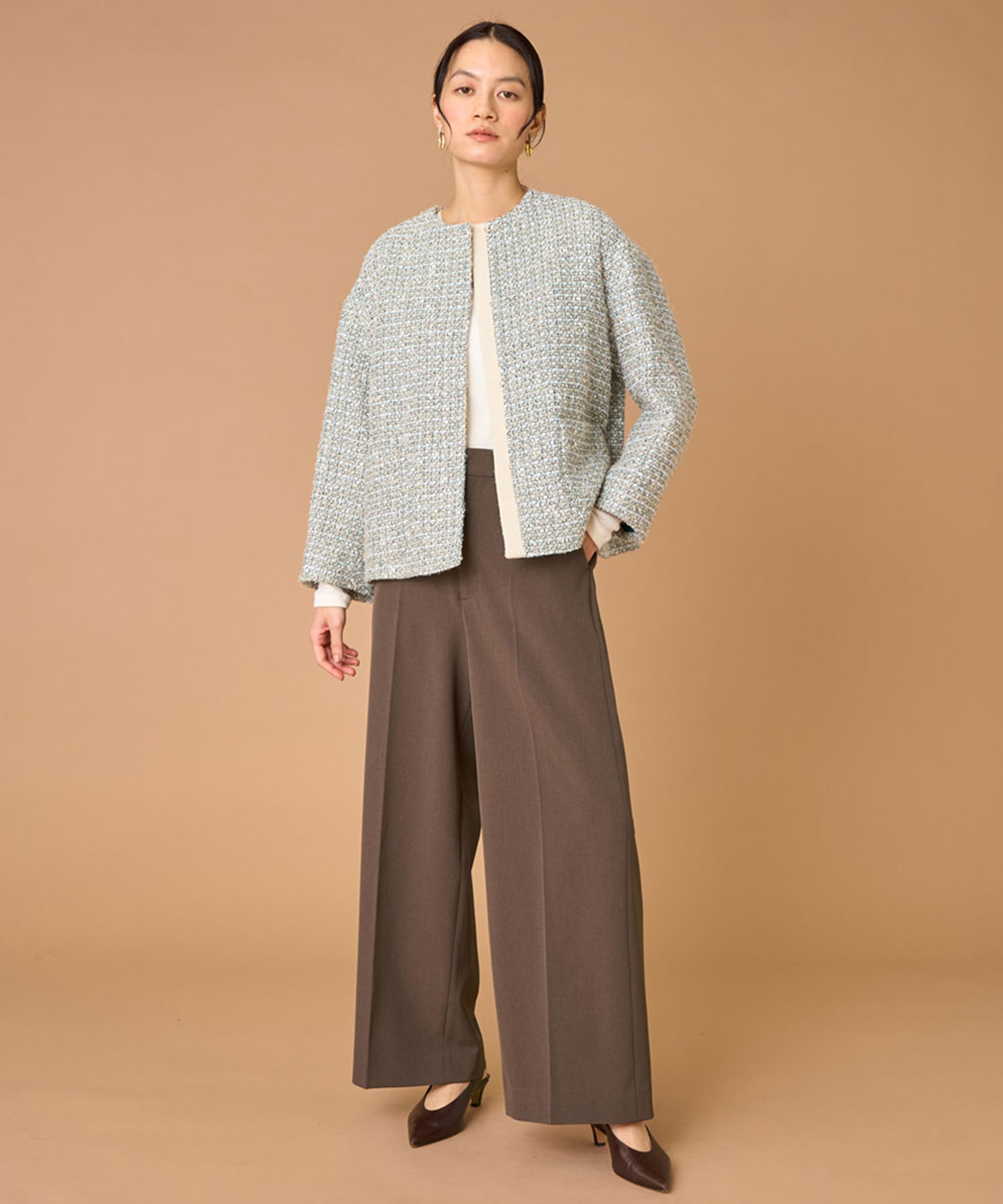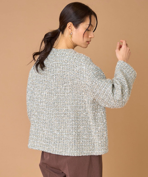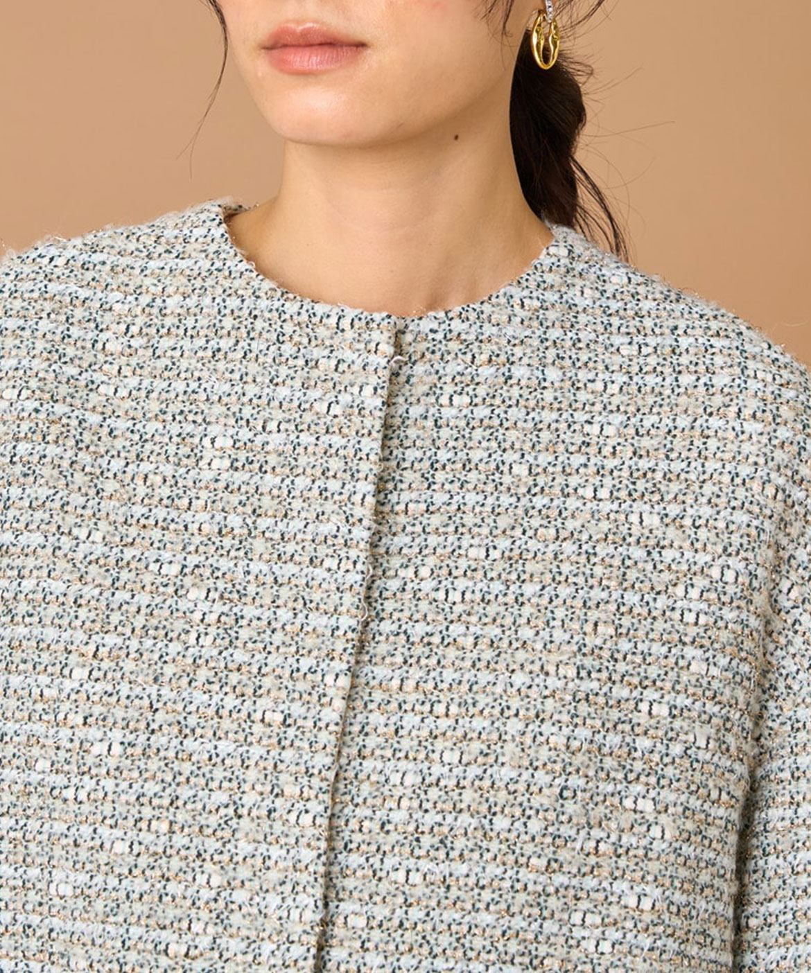 イギリスの老舗LINTON社の高品質なツイードでデザインされたジャケットです。様々な糸によって生み出される表情が上品かつクラス感のある雰囲気になっています。羽織るだけでコーディネートの主役になるアイテムです。オフィスやセレモニー、デイリーまで幅広いシーンで活躍出来るアイテムです。