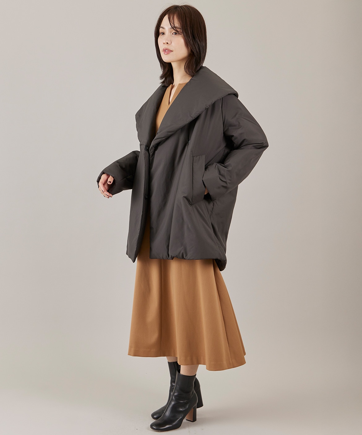 ショールカラーミドル丈中綿コート《LIMONTA EAST》