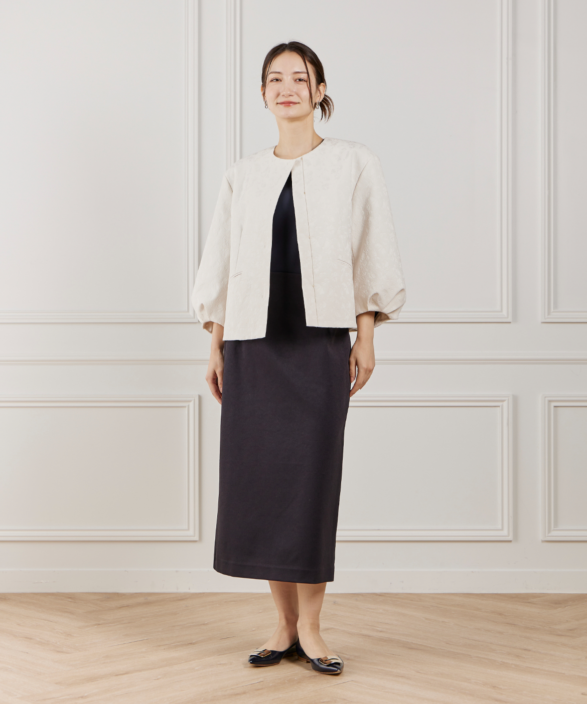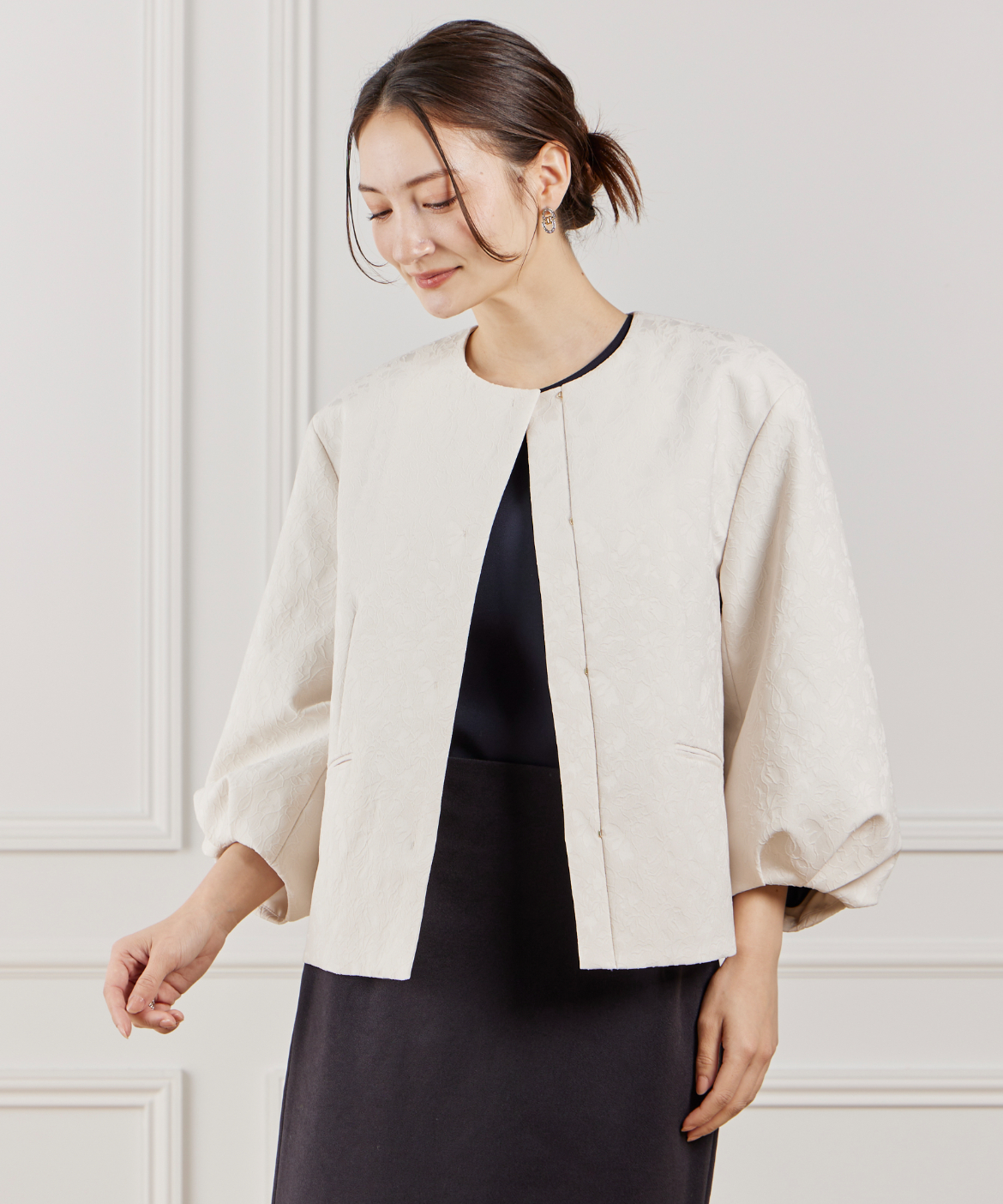 ジャガードノーカラージャケット