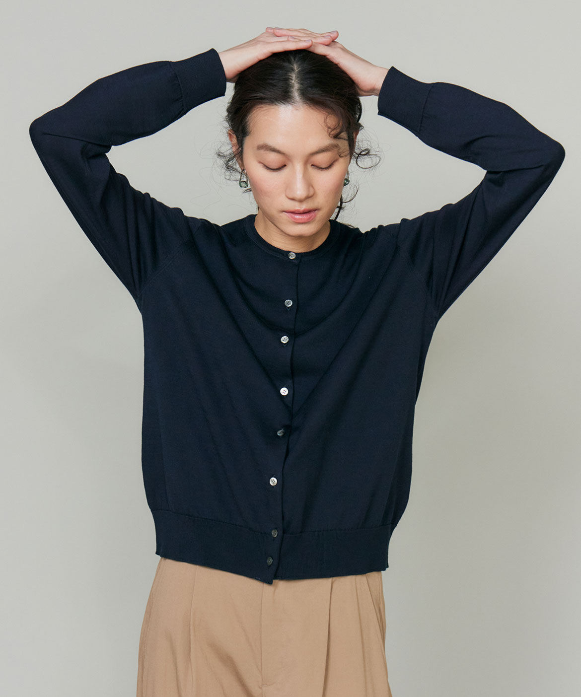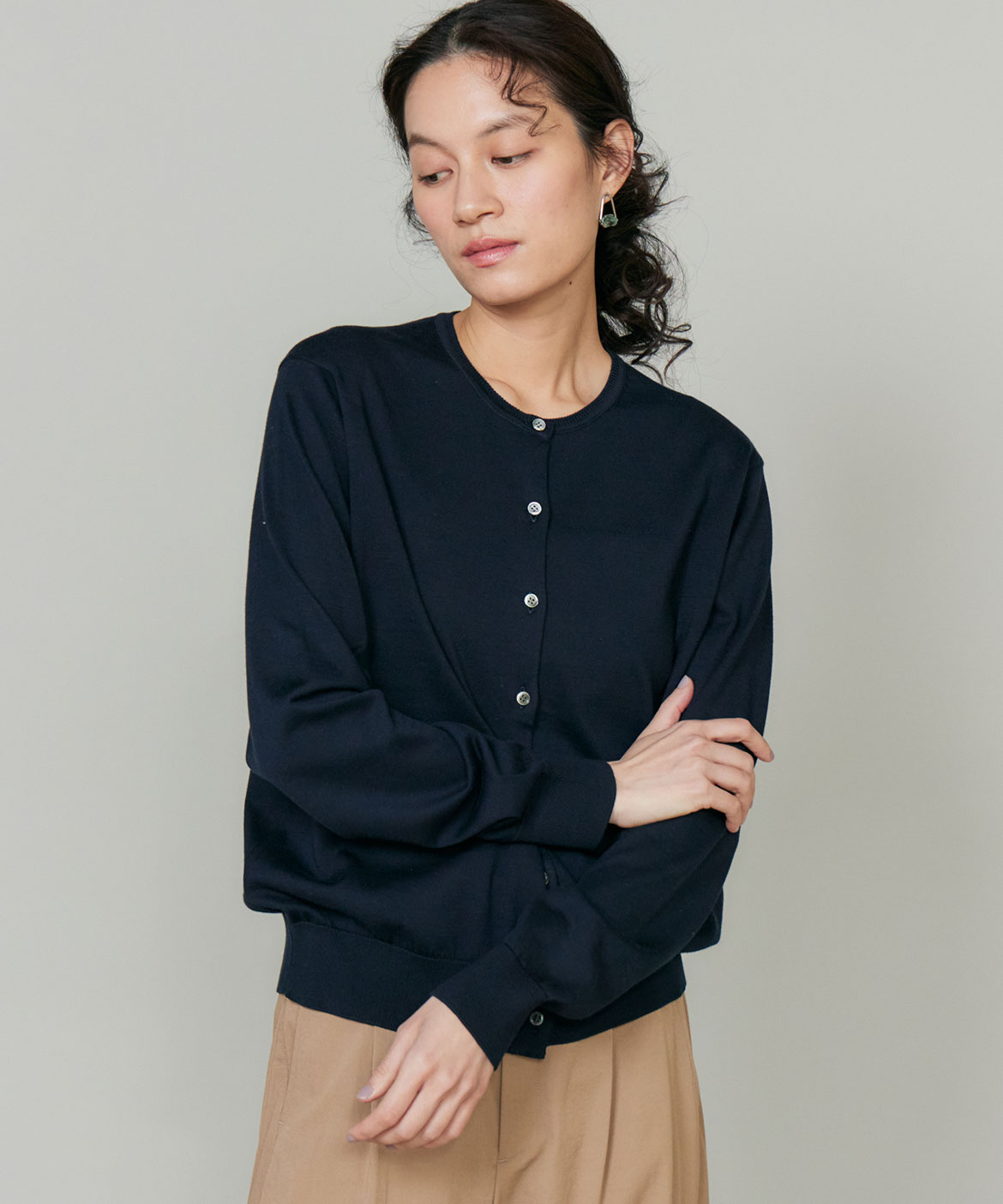 FF30ゲージクルーネックカーディガン