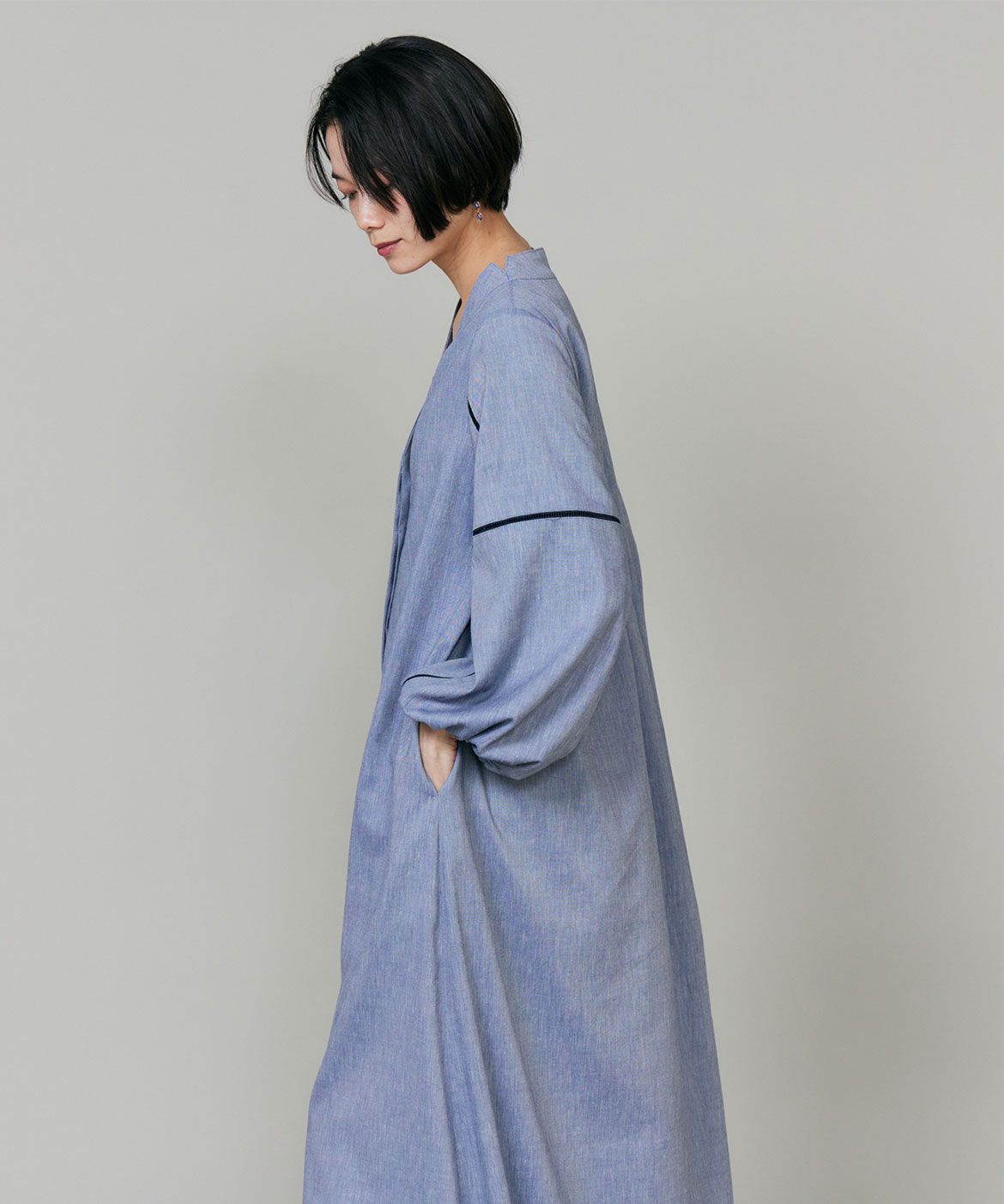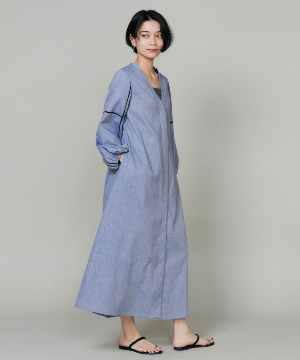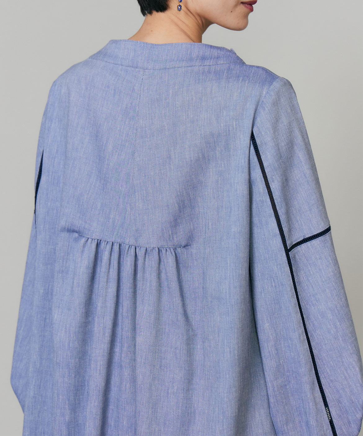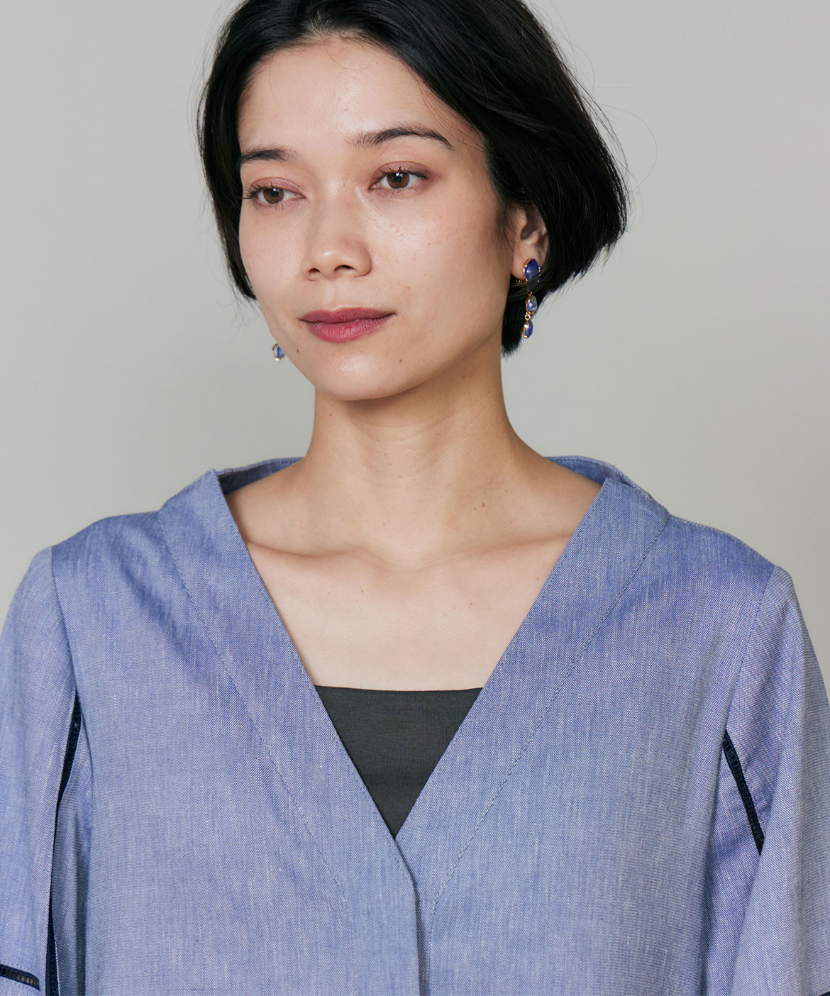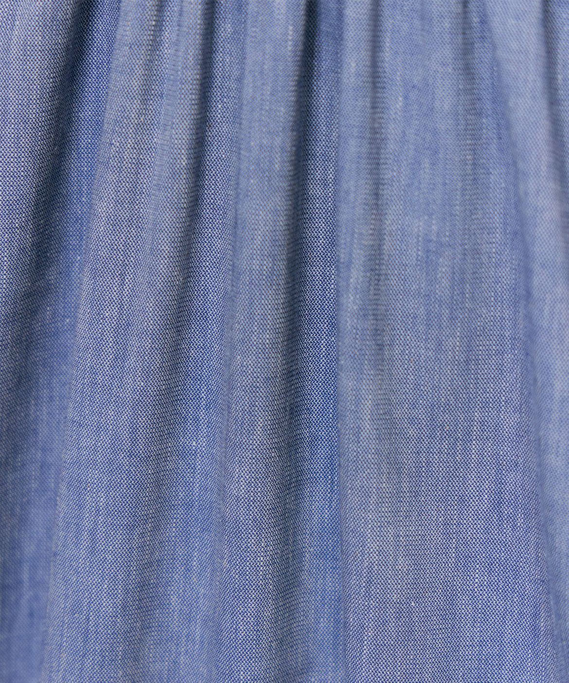 ナチュラルな表面感が涼やかなシャンブレー素材。麻のフシ感が表情をプラスし上質感を演出。デニムライクなカラーもポイント。柔らかさと落ち感、ドライなタッチで着心地の良い素材。