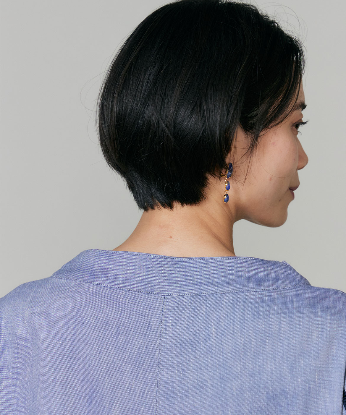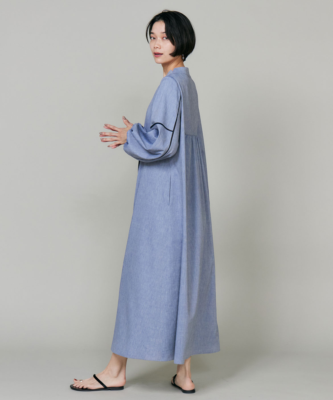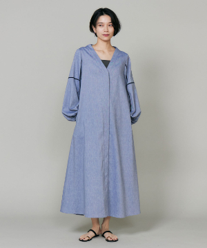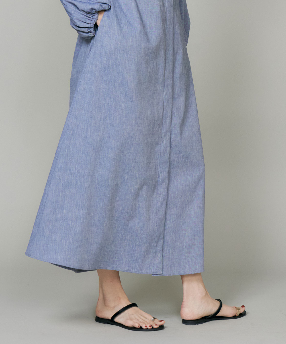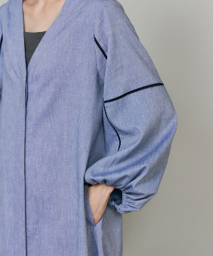 ナチュラルな表面感が涼やかなシャンブレー素材。麻のフシ感が表情をプラスし上質感を演出。デニムライクなカラーもポイント。柔らかさと落ち感、ドライなタッチで着心地の良い素材。