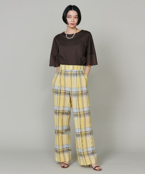 セミワイドシルエットの2タックパンツ。分量感がありつつ、ヒップ周りをコンパクトに仕上げた女性らしいメリハリのあるバランスです。センタープレスを施した縦長ラインでスタイルアップを叶えます。