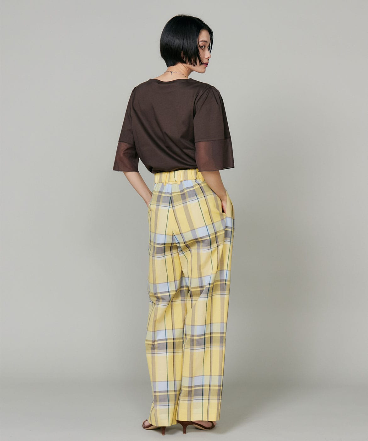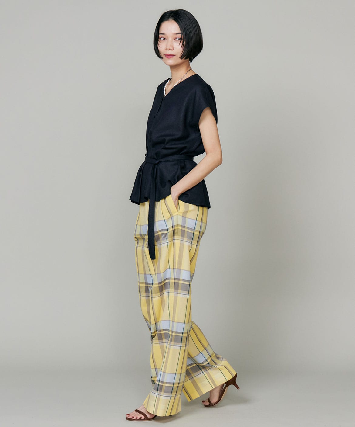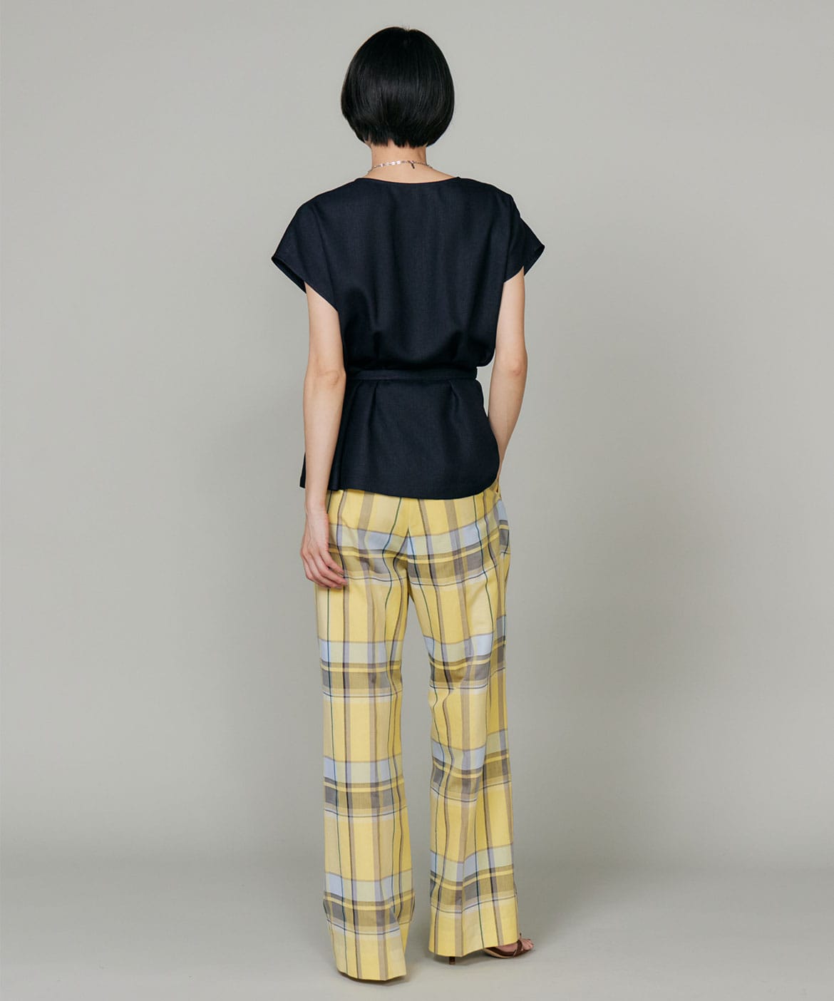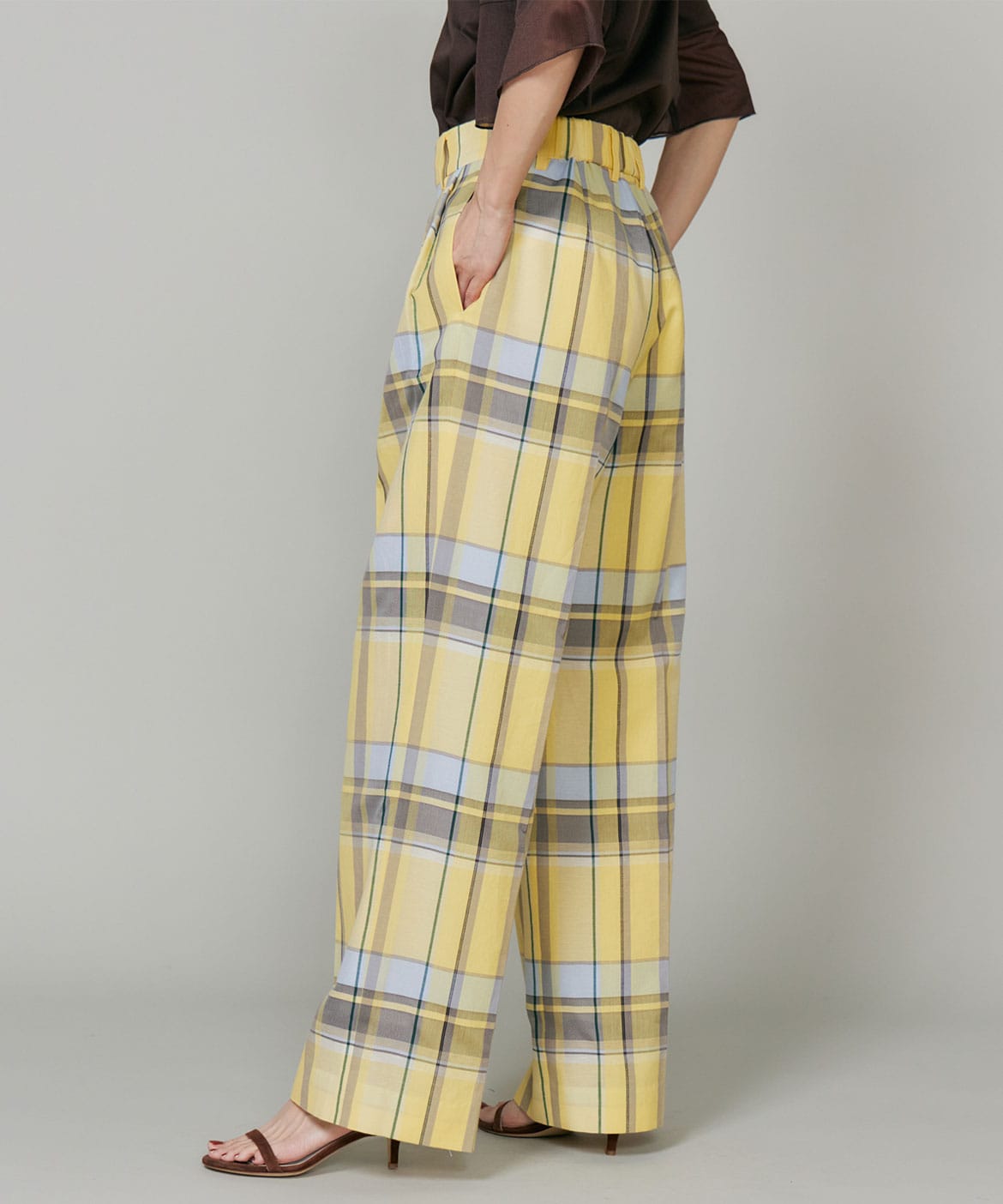 すっきりとしたきちんと感がありながら、バックゴム仕様で穿き心地の良さもプラス。スタイリングのアクセントとして活躍するアイテムです。