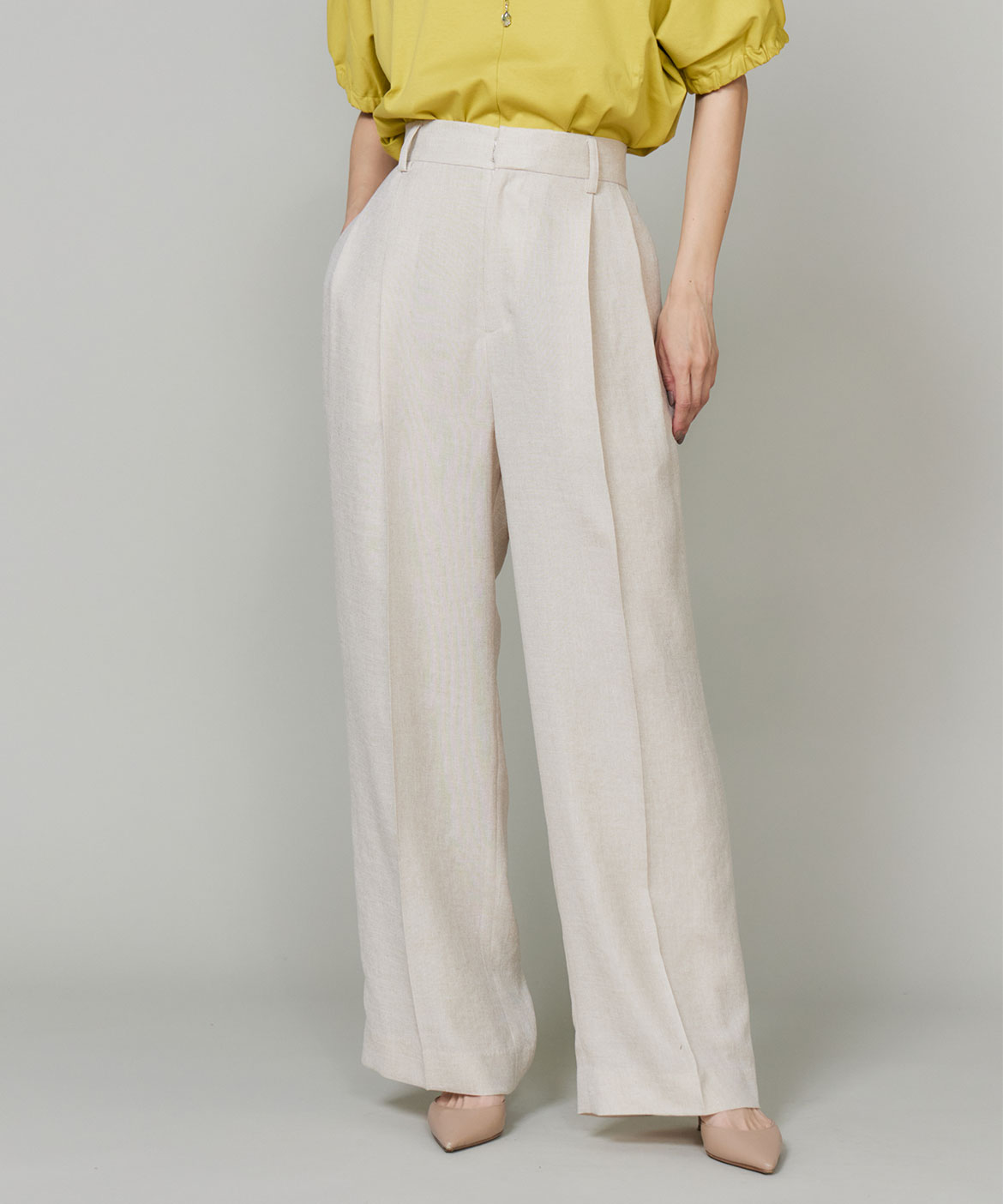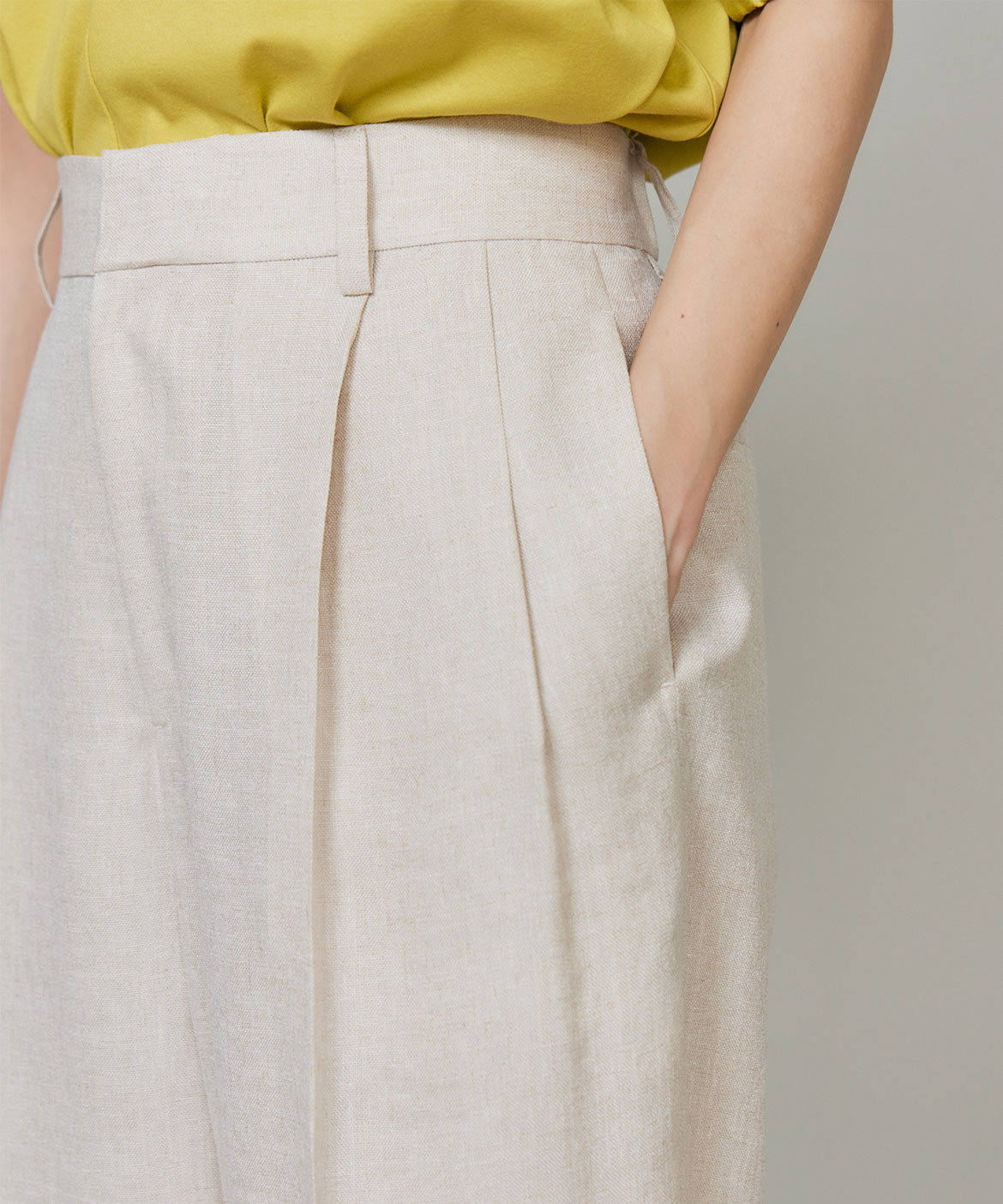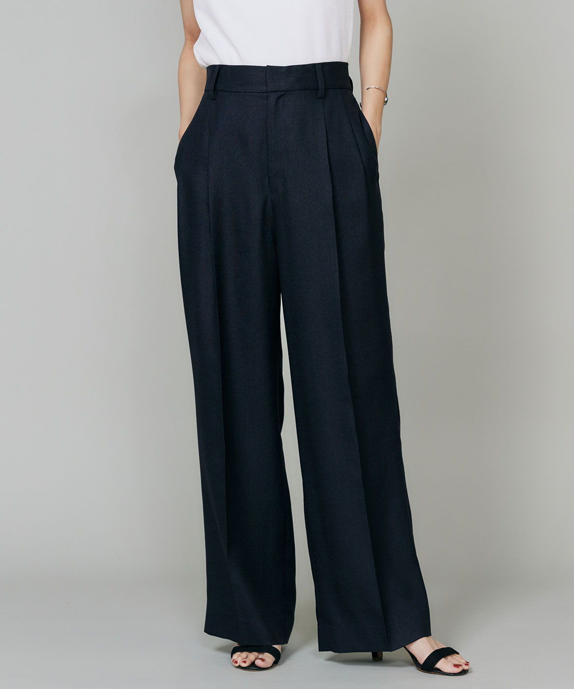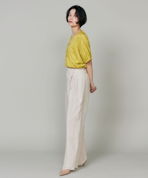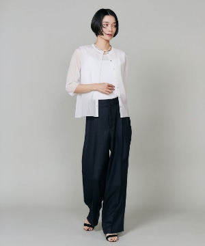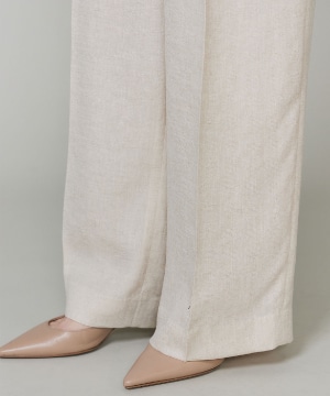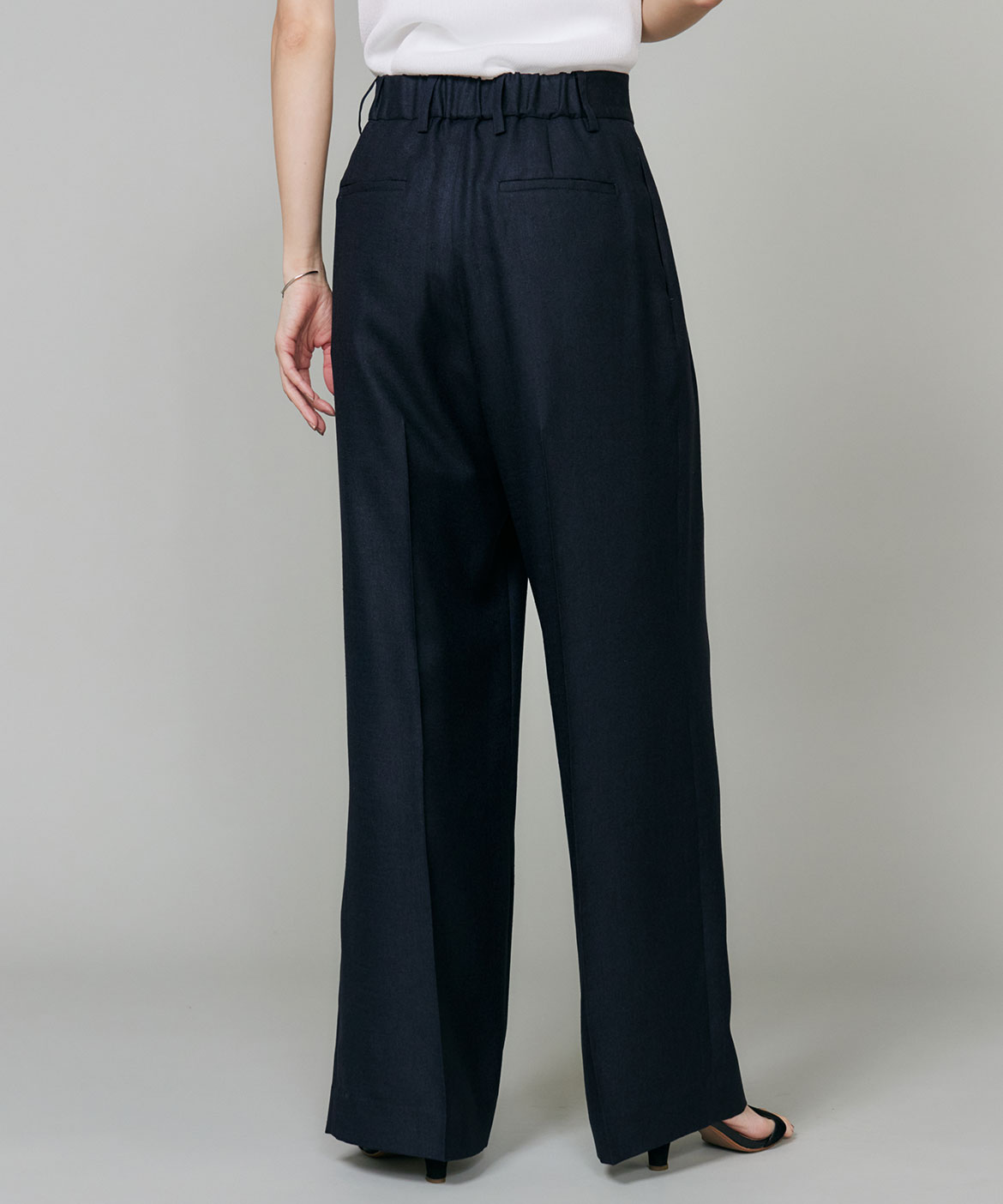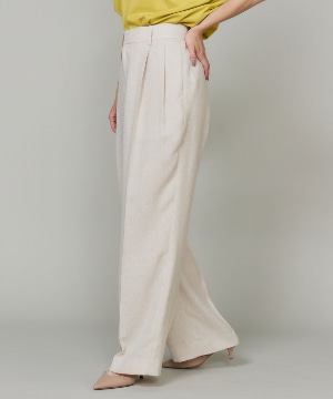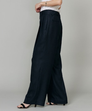 2タックデザインと自然に広がるセミワイドシルエットで分量感がありつつも、ヒップ周りをコンパクトにすることで女性らしいメリハリのあるバランスに。ミニマルな印象でどんなスタイリングにも馴染み、幅広いシーンで活躍してくれる万能なアイテム。小柄な方も高身長な方も綺麗に穿いていただけます。フラットシューズやスニーカーでも美脚になれるパンツです。