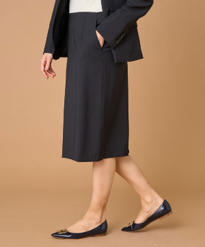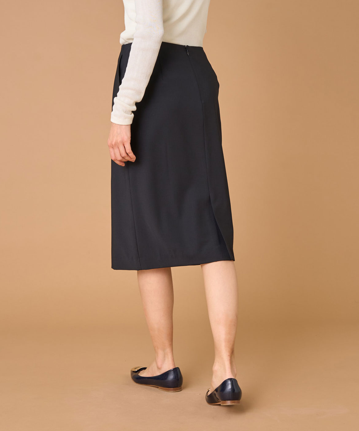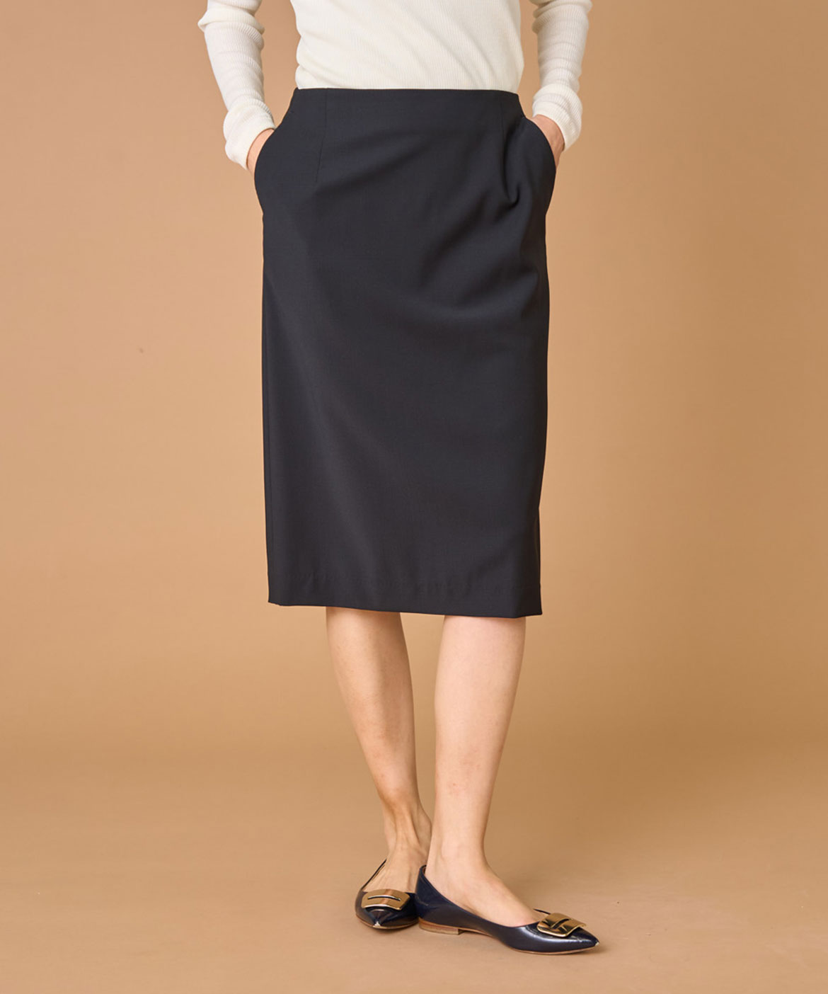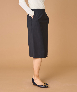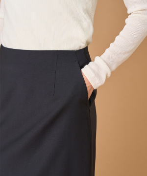 ウエスト位置をジャストに設定し、ウエストでしっかりフィット。ダーツを入れて身体の形に沿う様にし、お腹回りに少し余裕を持たせたパターンにしヒップでの生地の引っ掛かりを少なくし美しいシルエットを保ちます。ウエストは見返し始末。ウエスト・腰回りがスッキリとしたデザインです。ほどよくストレッチが効いているので、動きやすさもあり、快適です。