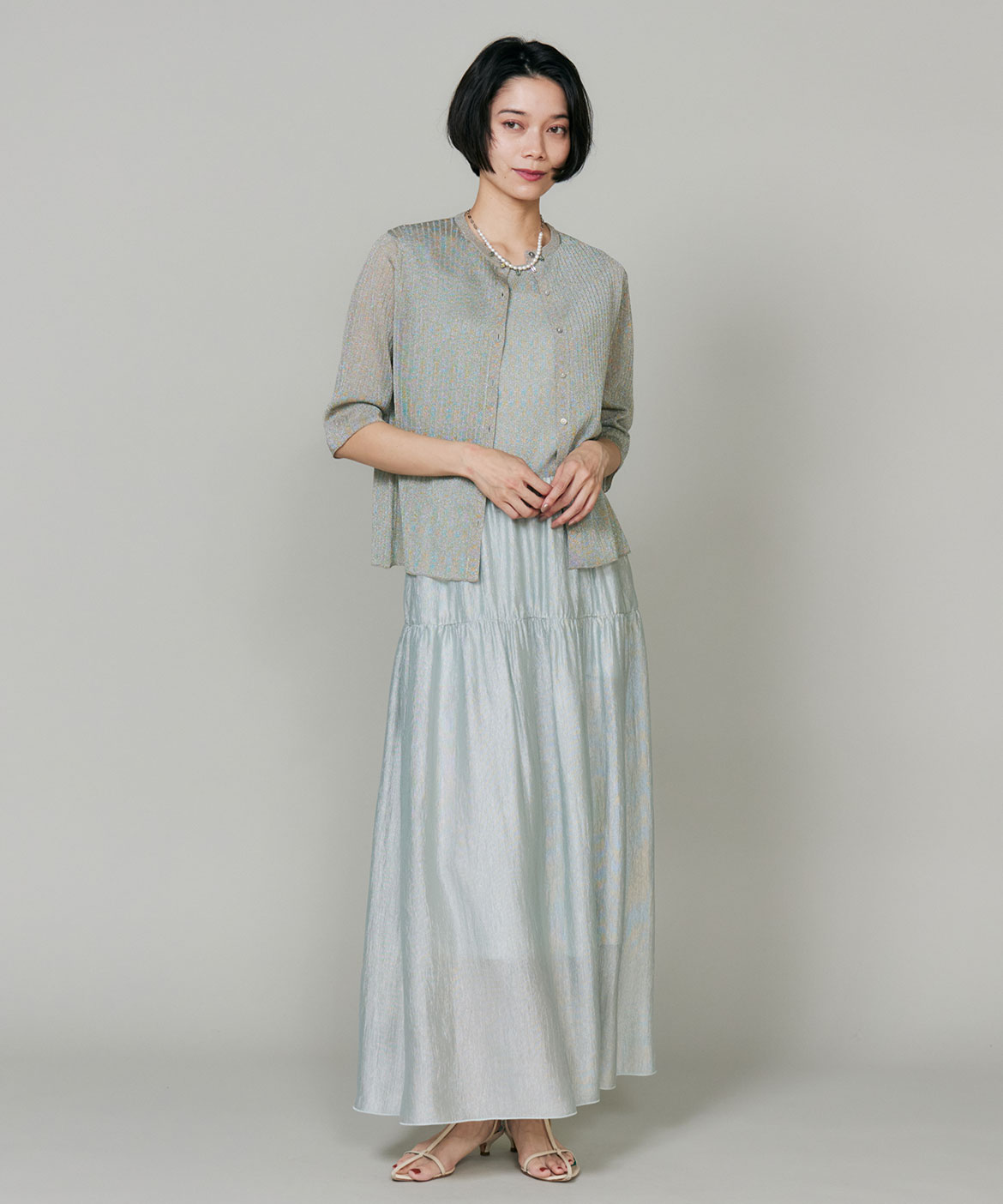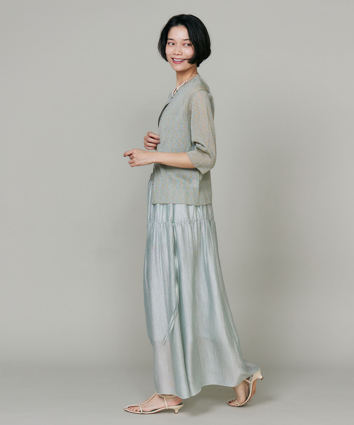 ランダムな表面感が特徴の素材。軽量且つ清涼感のある透け感もポイント。アセテートの上品な光沢とドレープ性を持った高級感のある素材です。