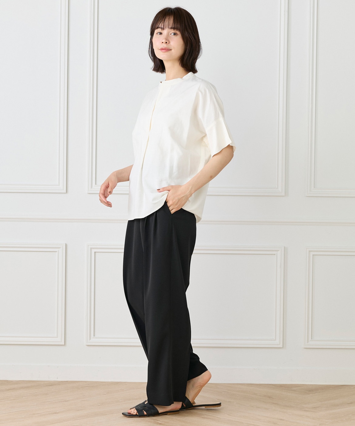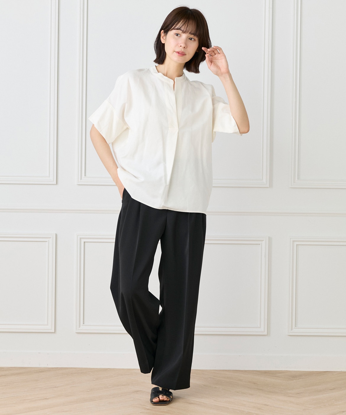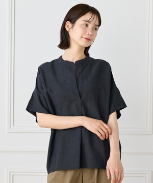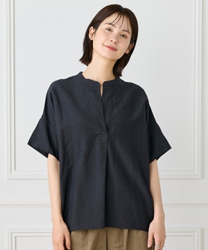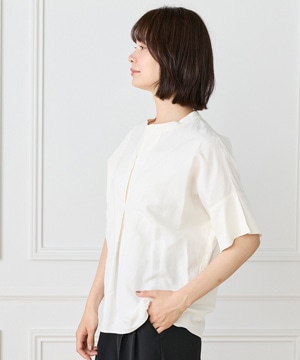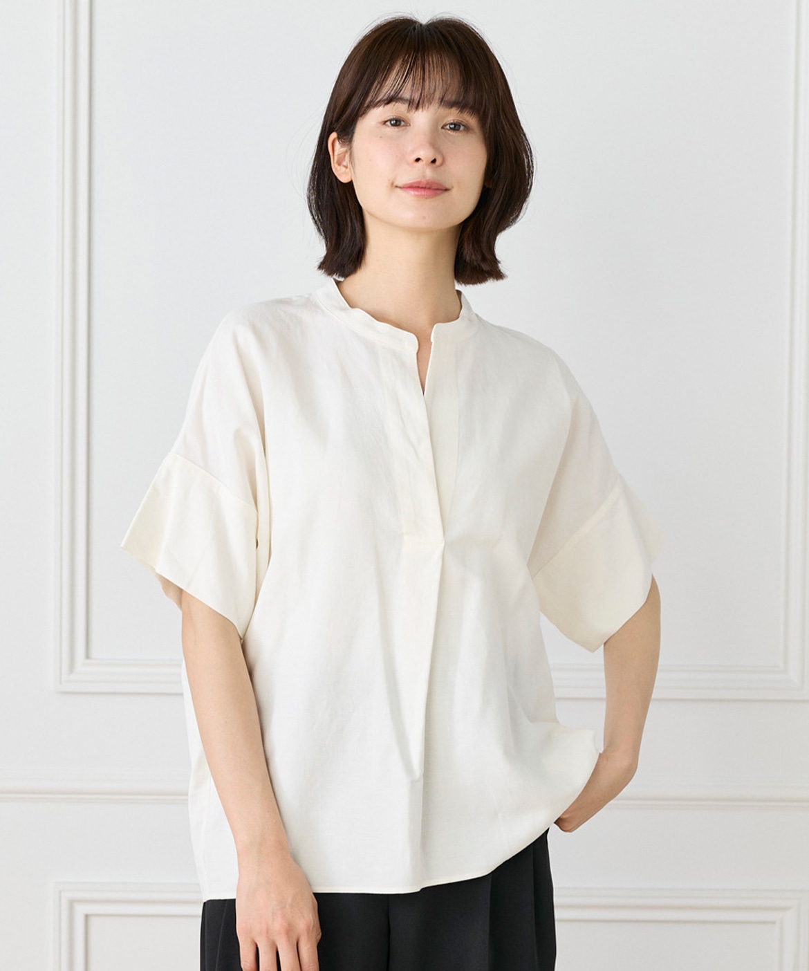 ニュアンスのあるオーバーサイズのプルオーバーシャツ。抜け感のある襟デザインや身体が泳ぐシルエットは、スタイルをより華奢に見せてくれます。袖口を折り返したり、襟を抜かせたりと、着こなしをお楽しみいただけるデザインです。