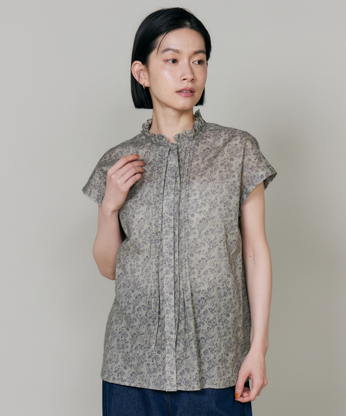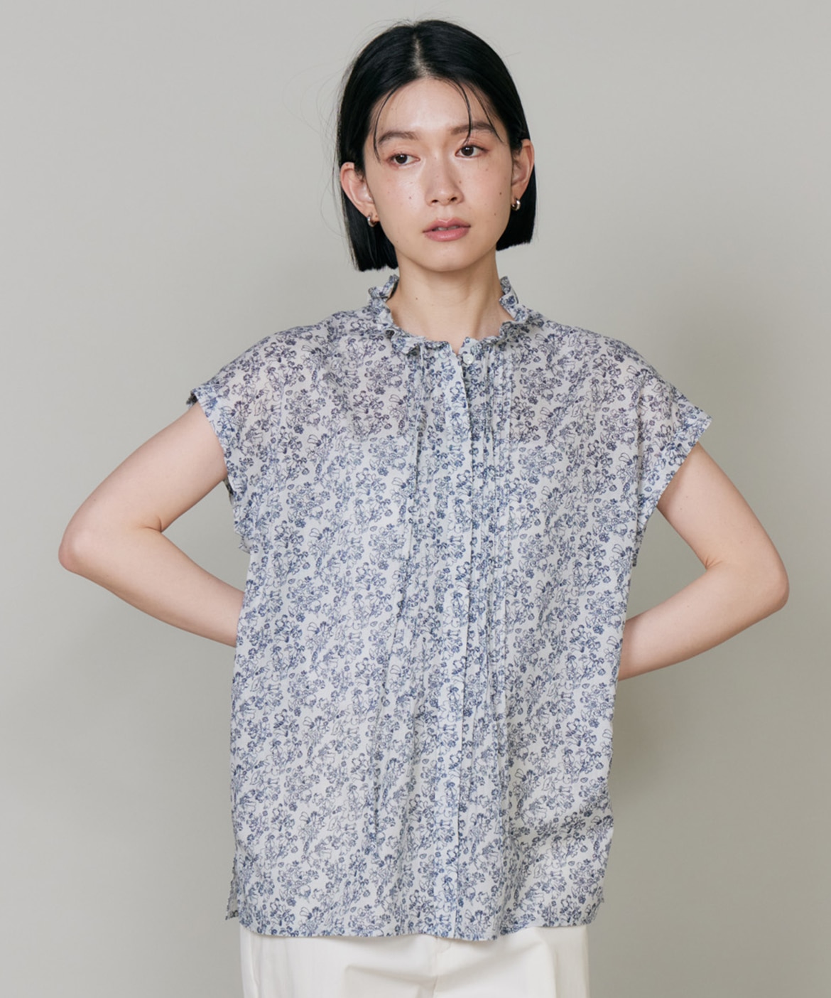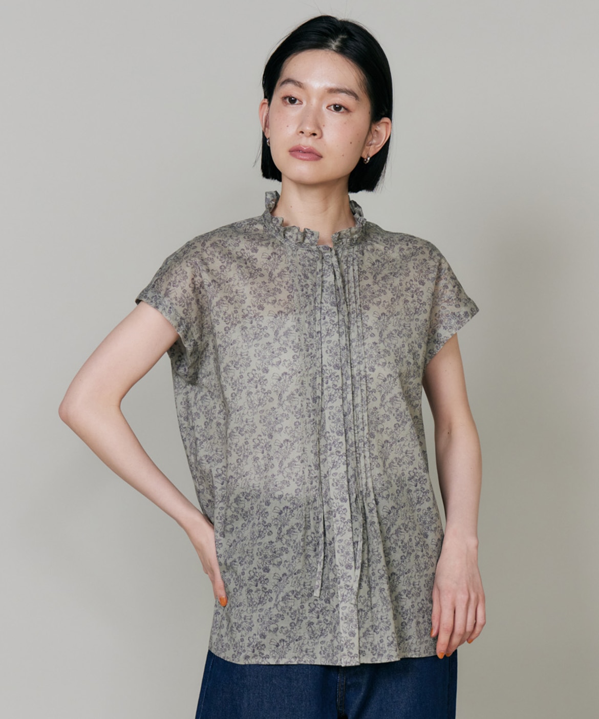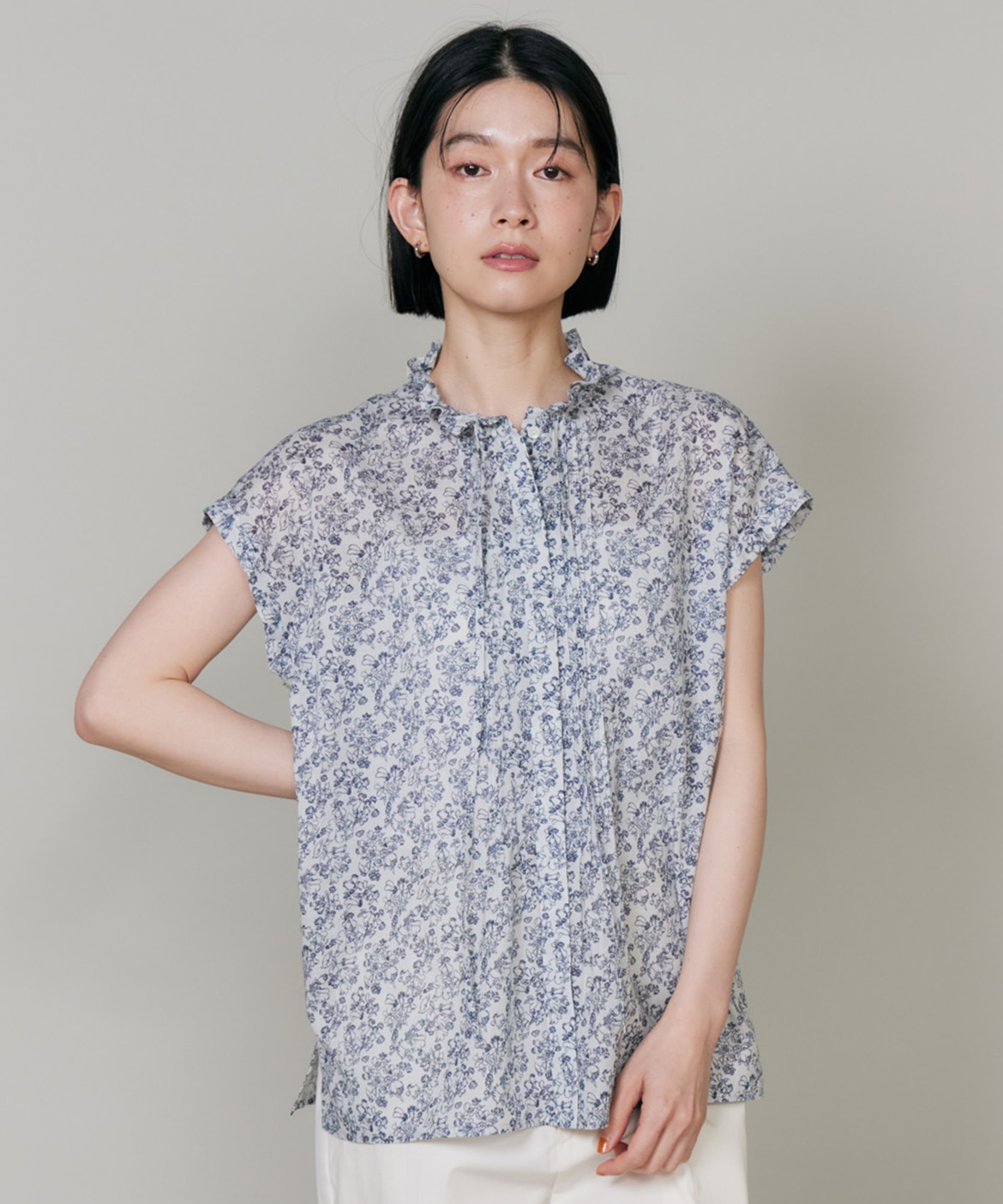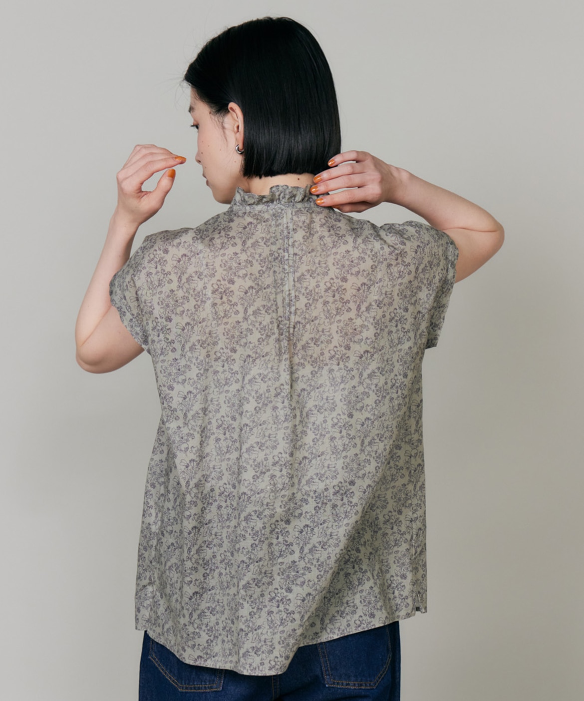 【先行予約】ビンテージ風フラワープリントボウタイブラウス