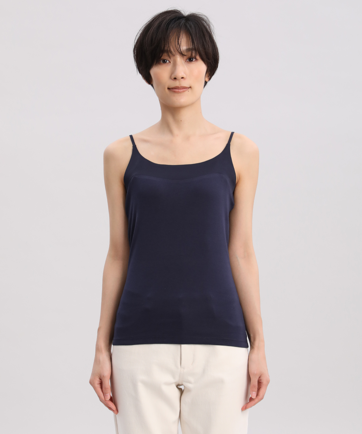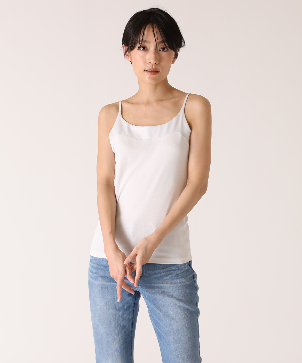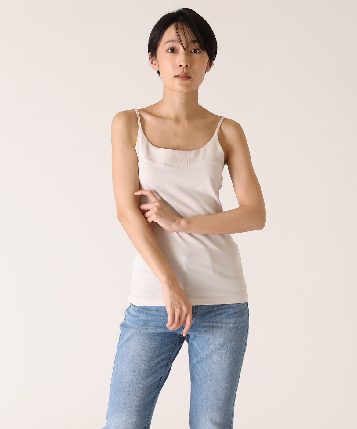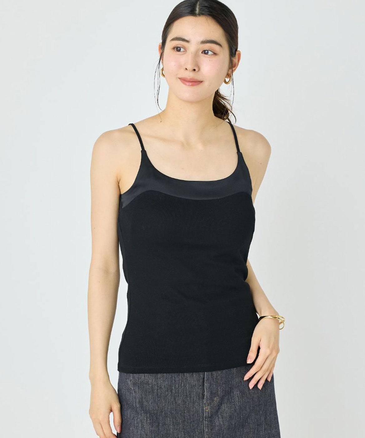 サテン切り替えキャミソール《スビン綿MIXフライス》