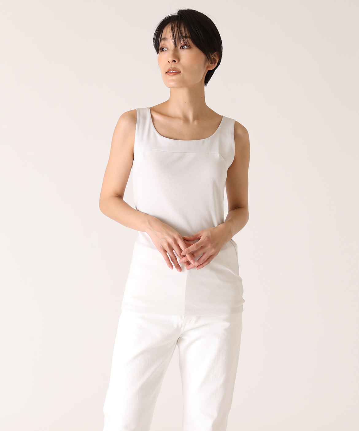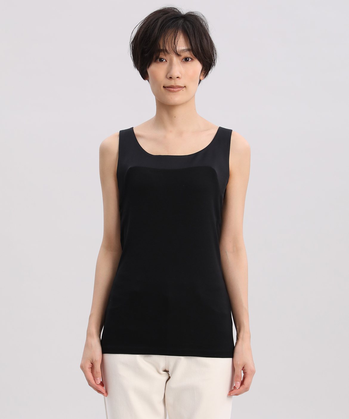 サテン切り替えタンクトップ《スビン綿MIXフライス》