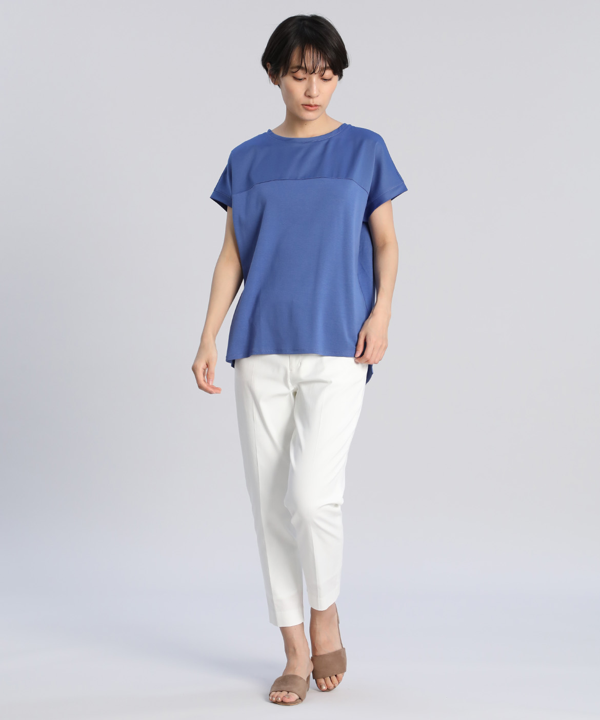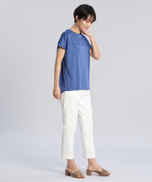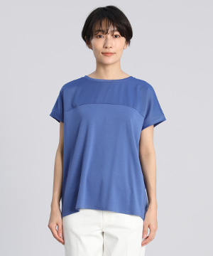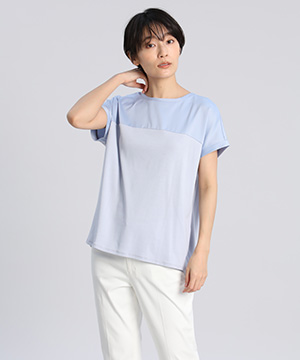 サテン切り替えワイドカットソー《スビン綿MIXフライス》