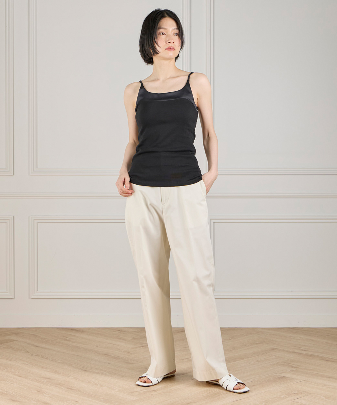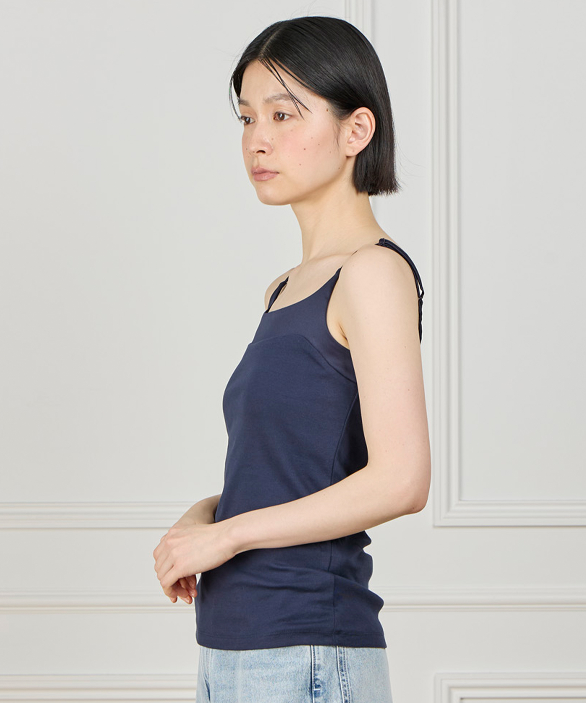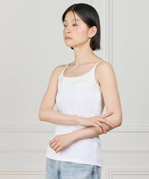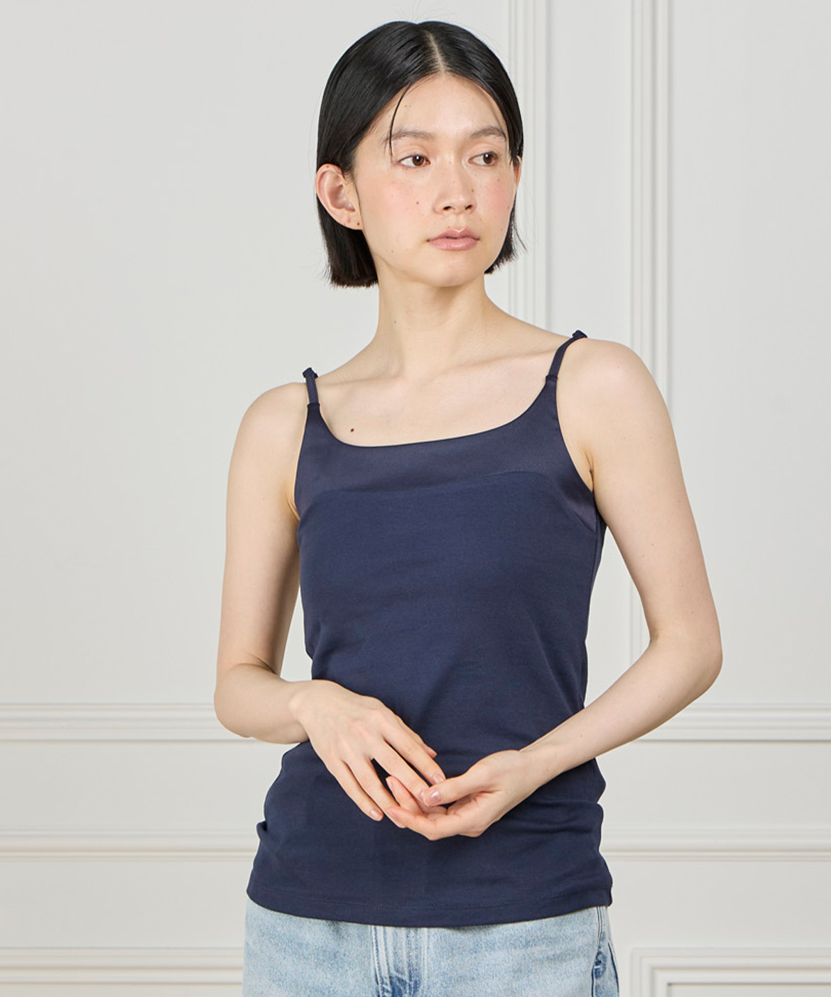 サテン切り替えキャミソール《スビン綿MIXフライス》