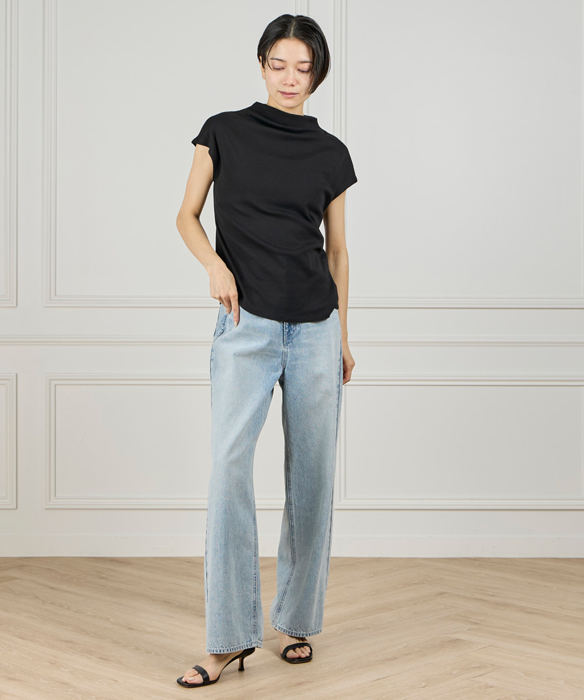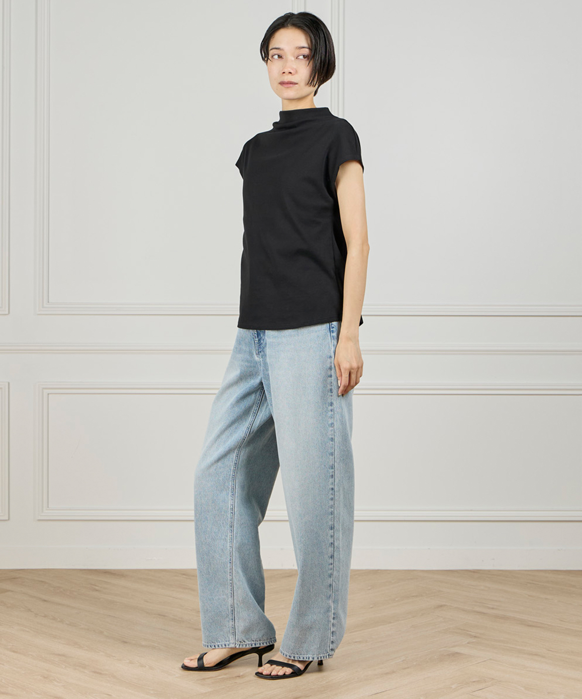 人気のスビン綿を使用したボトルネックプルオーバー。程よい身頃感と裾のカッティングが絶妙です。従来の型より肩幅を大きくしました。シンプルだからこそシルエットが引き立ち、柔らかな生地感とフレンチスリーブのデザインがさりげなく気になりがちなラインをカバーしてくれます。
