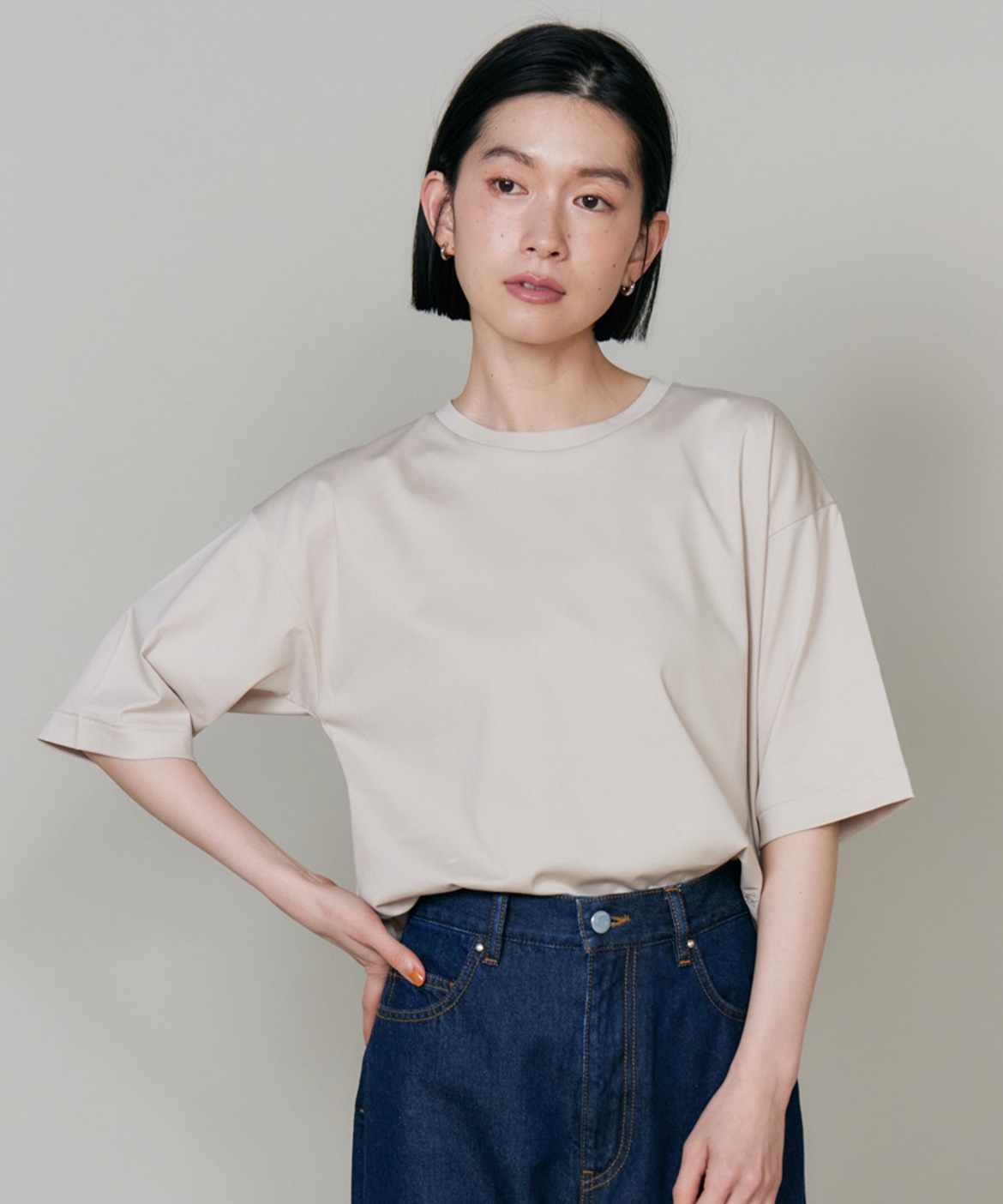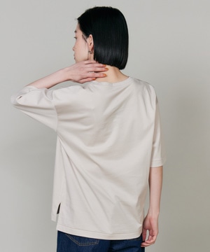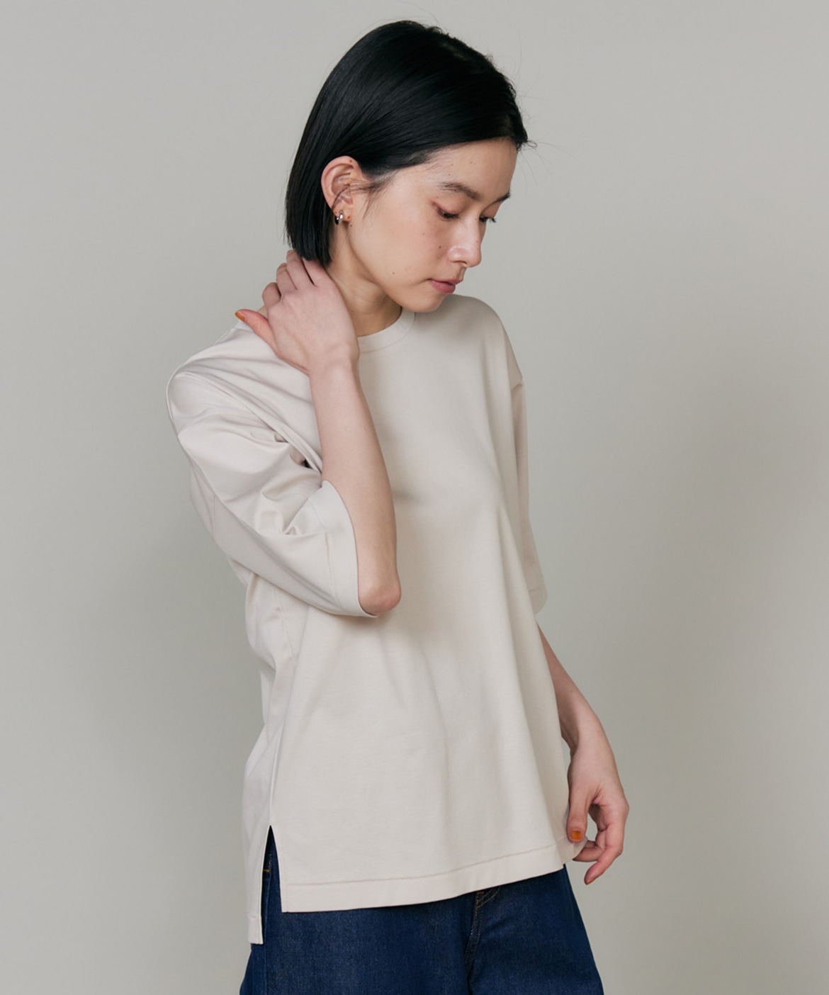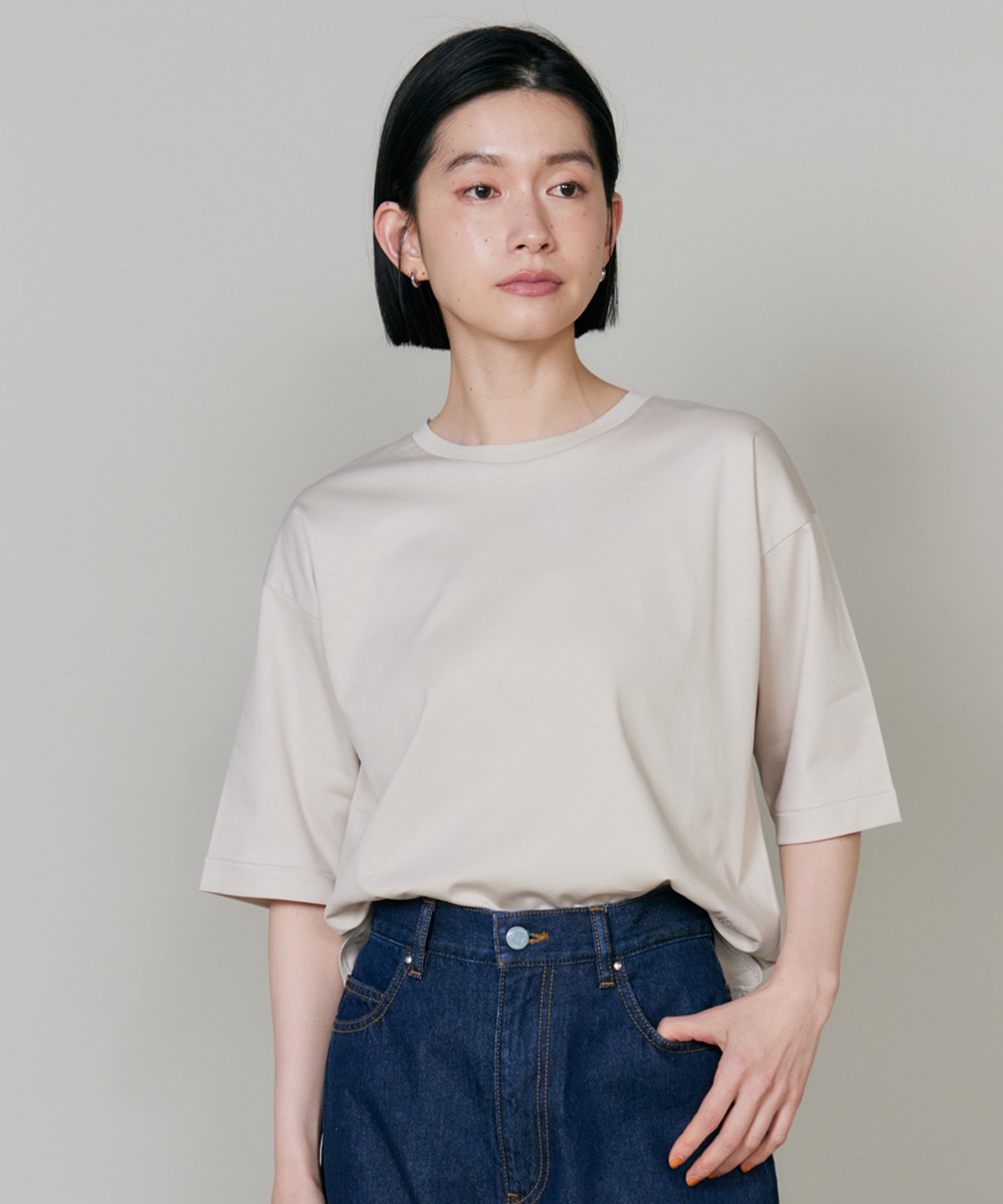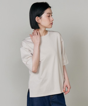 GIZAコットンはエジプトで栽培されている超長綿です。最大の特徴は、超長綿由来の美しい光沢と、繊維が非常に細いことによる柔らかくしなやかな風合いにあります。生産量が少なく、希少性が高い点も特徴です。希少性と特殊なコットン原料を使用したジャージィー素材により、高級感のあるカットソー素材です。