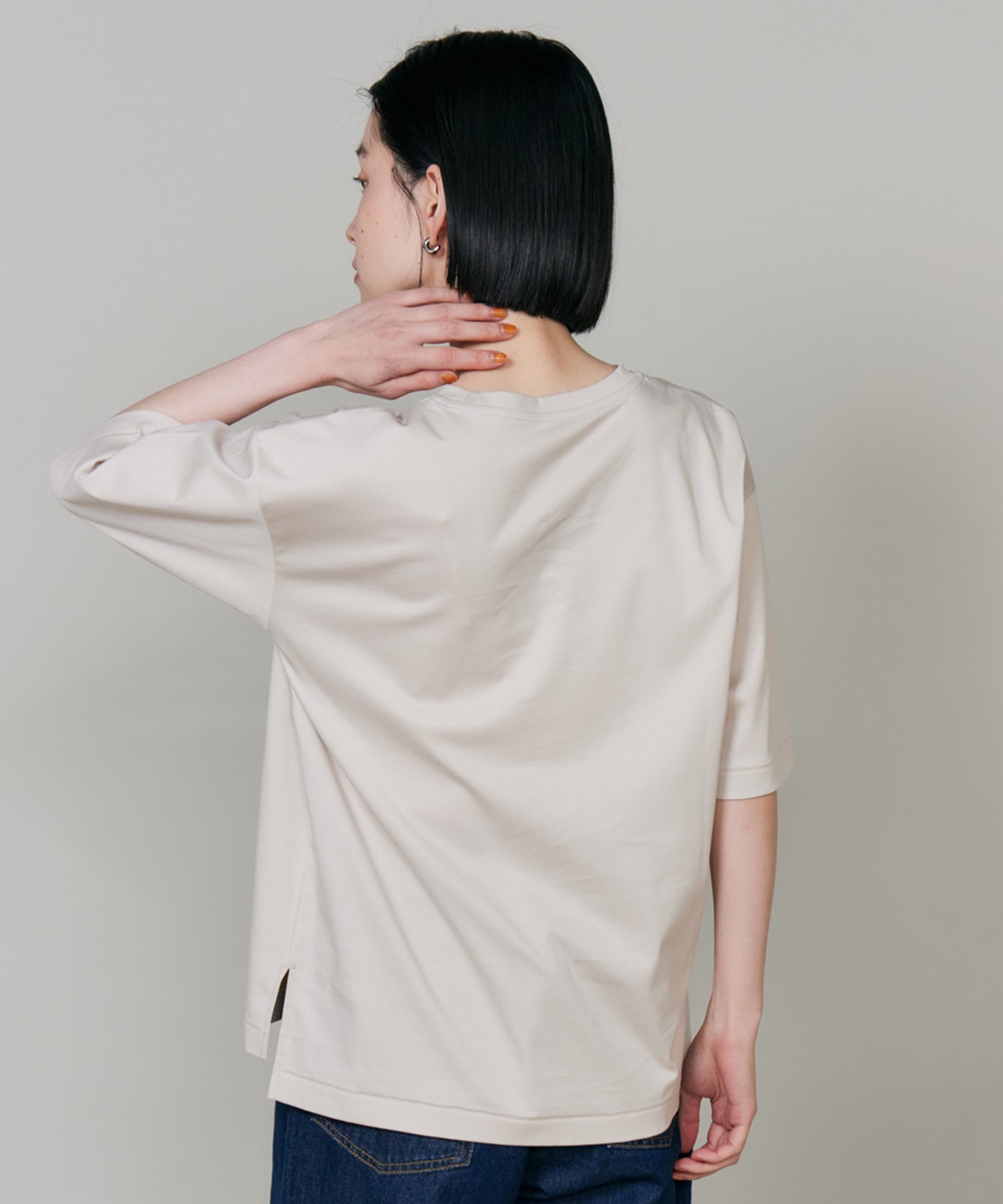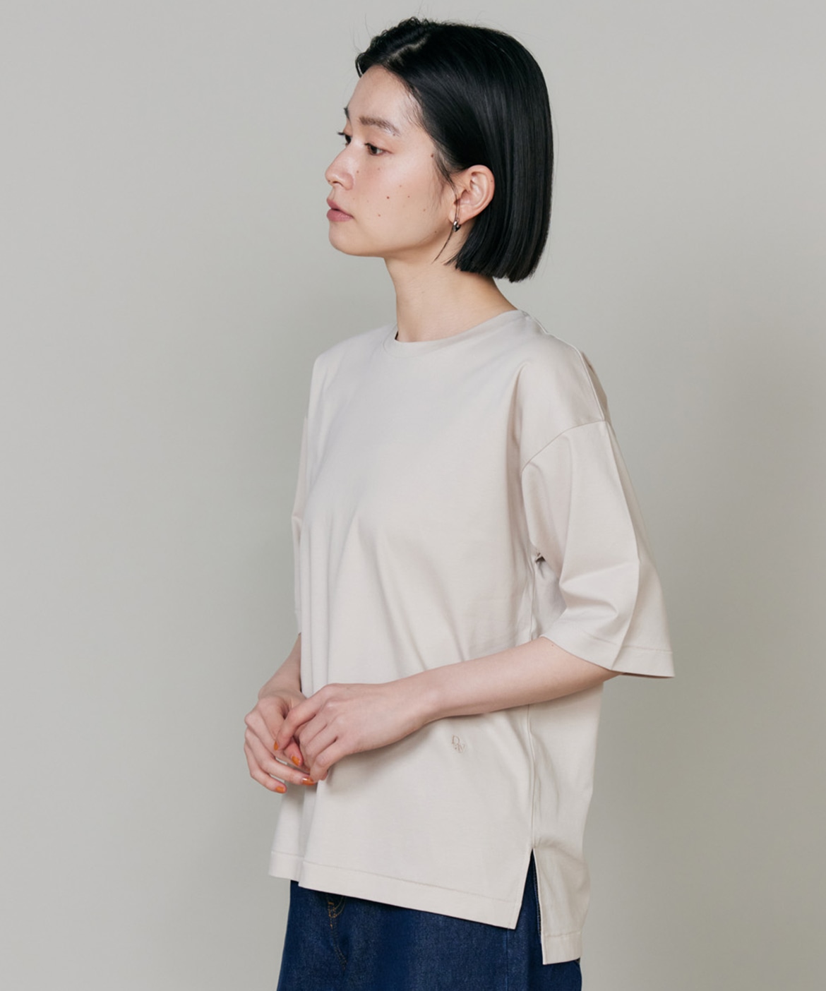 GIZA綿を使用したツヤのあるエレガントな表情と、少しドロップした長めの袖感で、カジュアルダウンしない、キレイ目大人Tシャツが完成しました。左裾にはブランドのアイコン、DAY刺繍のアクセントも。着心地の良いサイズ感とキレイ見えする表情で、OFFスタイル、ONスタイル、どちらにも活躍するアイテムです。