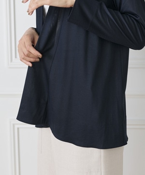 テンセル特有のやわらかさとふくらみ、ポリエステルのドライ感と耐久性を兼ね備えたジャージ素材。ハイゲージの滑らかな表面感が特徴です。シルキーな光沢感が美しく、ソフトなタッチとリッチなドレープ性もポイントです。さらりとした心地よい肌触りで着心地が良く、長時間着用しても肩の凝らない素材感も魅力です。吸湿性、放出性が高く快適に着ていただける素材です。