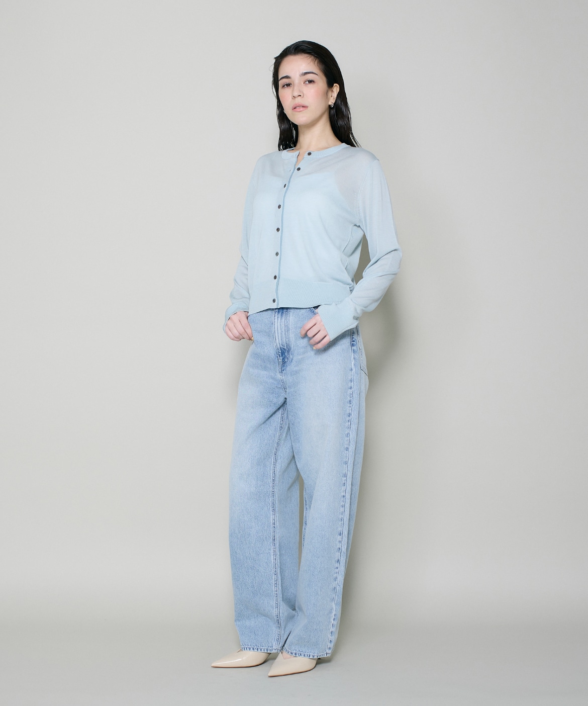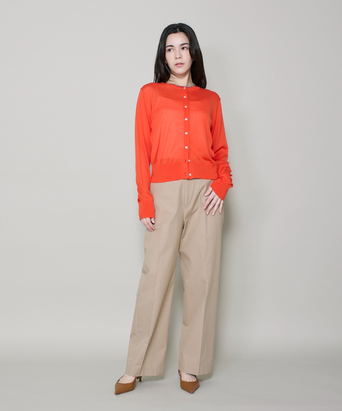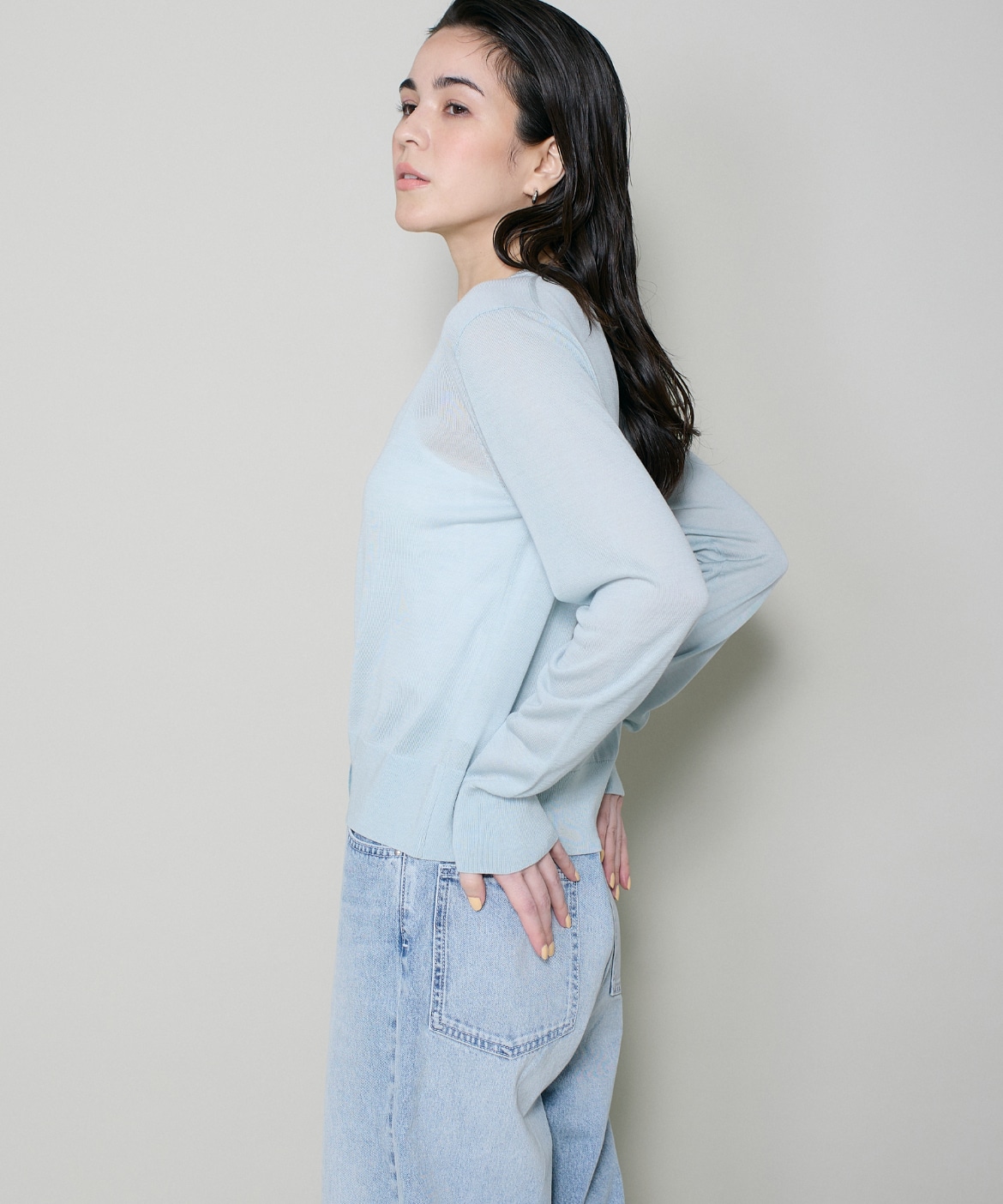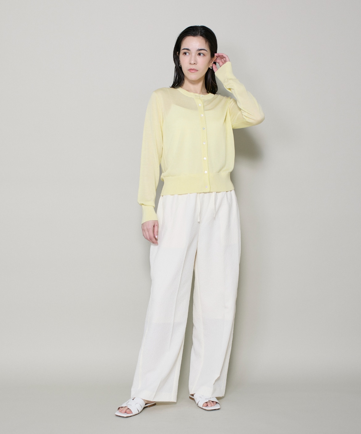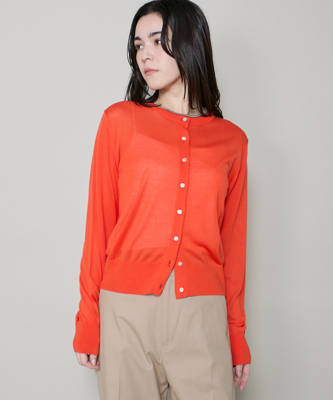 シルクブレンドクルーネックカーディガン