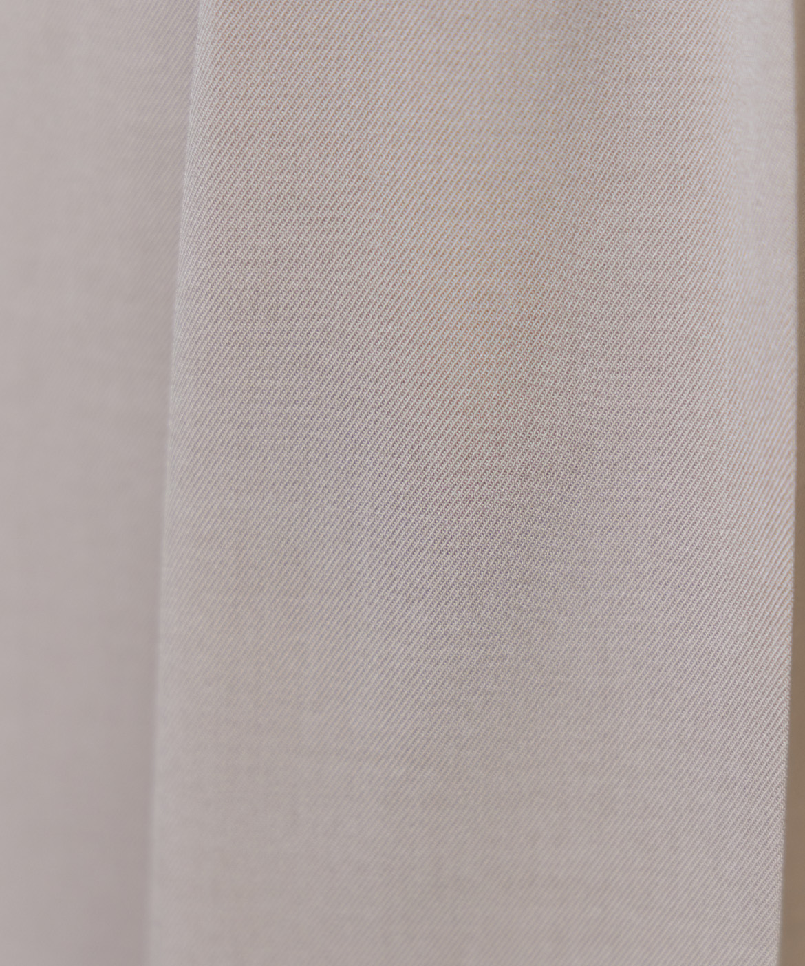 梳毛見えする表情とさらっとしたドライタッチが特徴のポリエステルツイル素材。ポリエステルなのでシワになりずらく、適度なハリ感で肌離れの良い素材です。