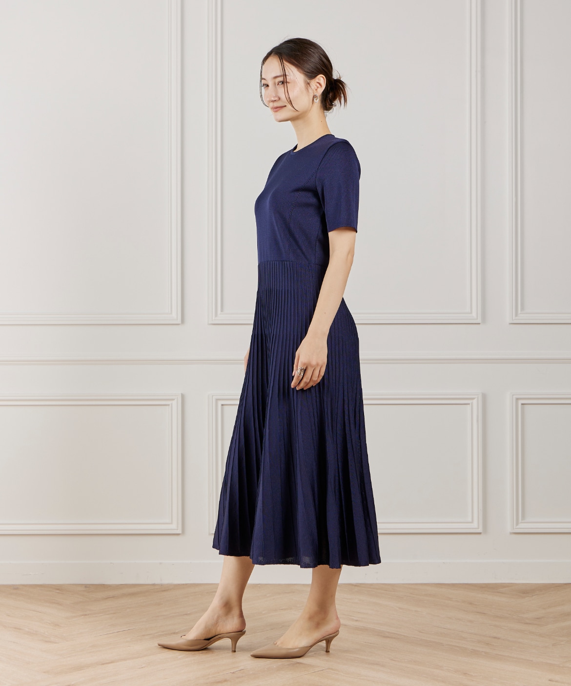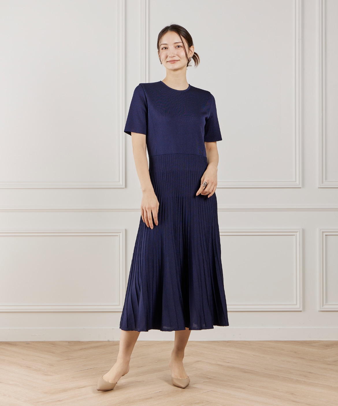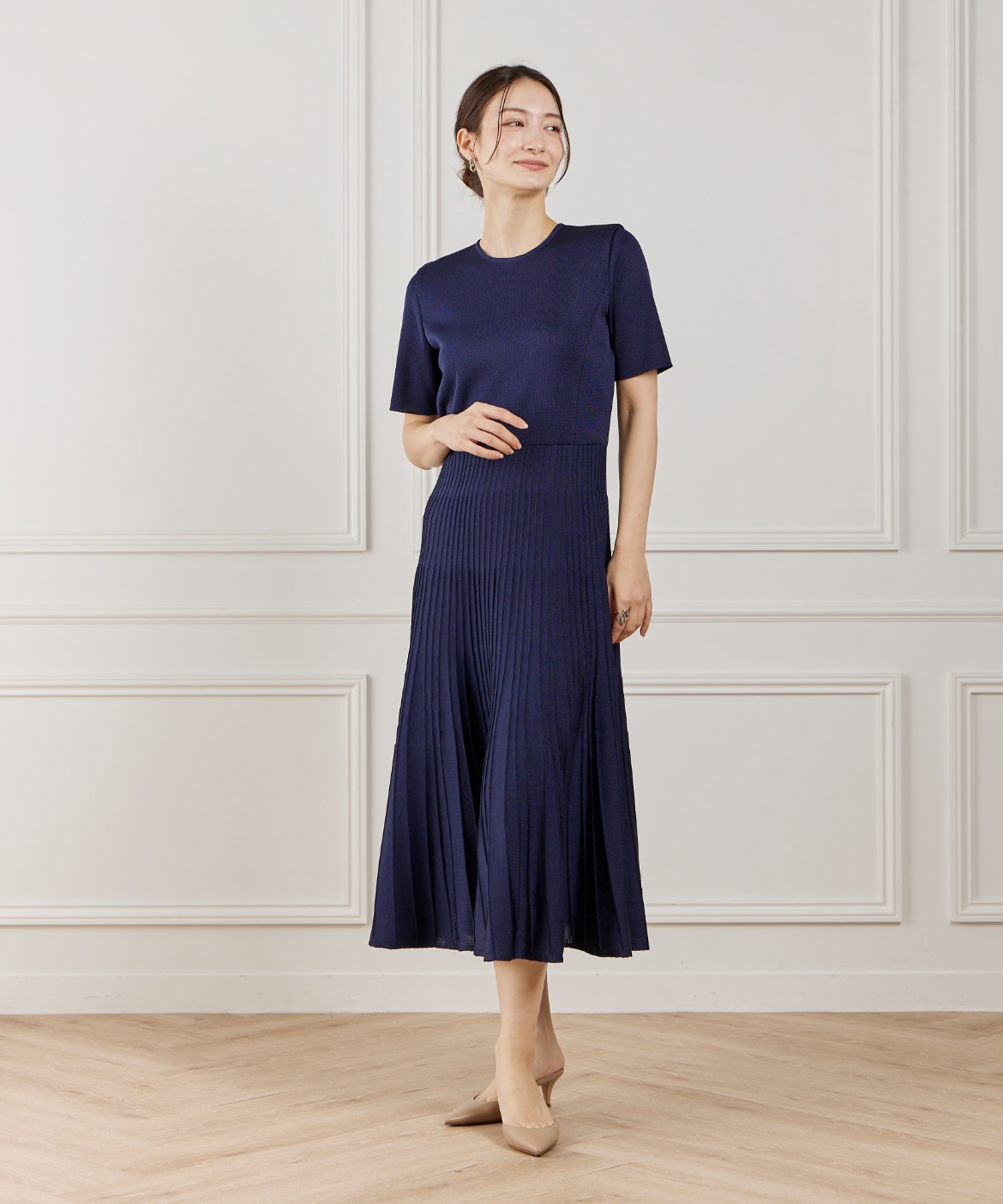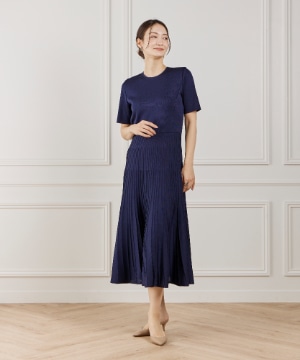 プリーツニットワンピース