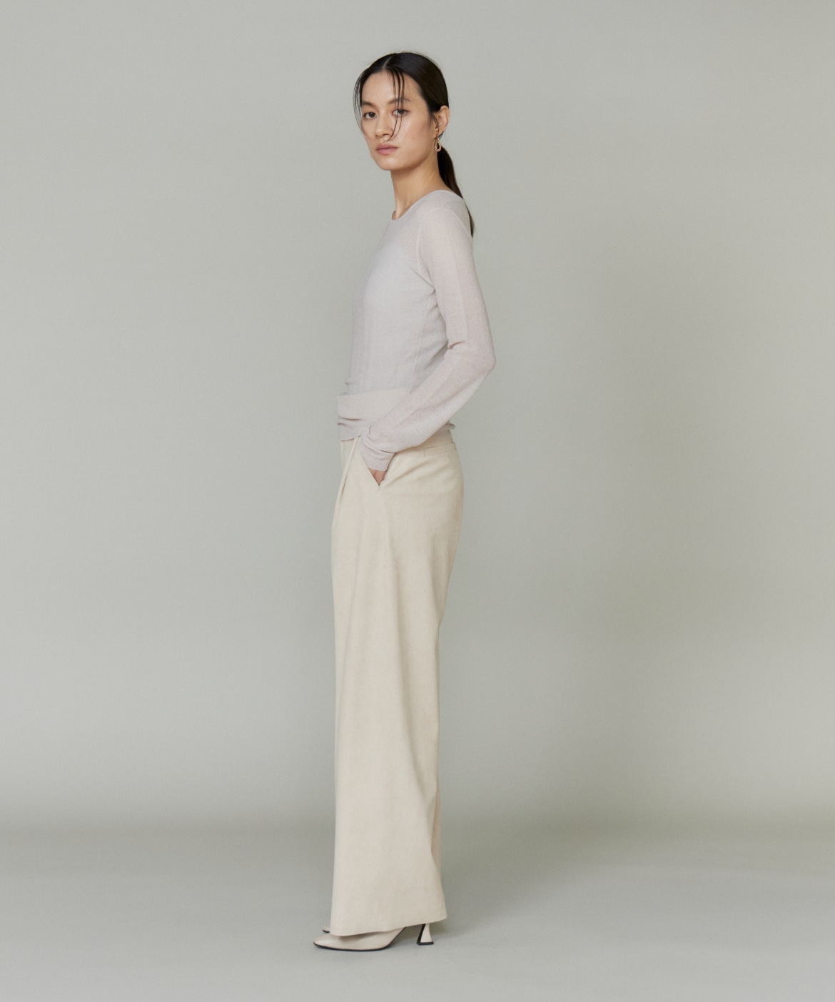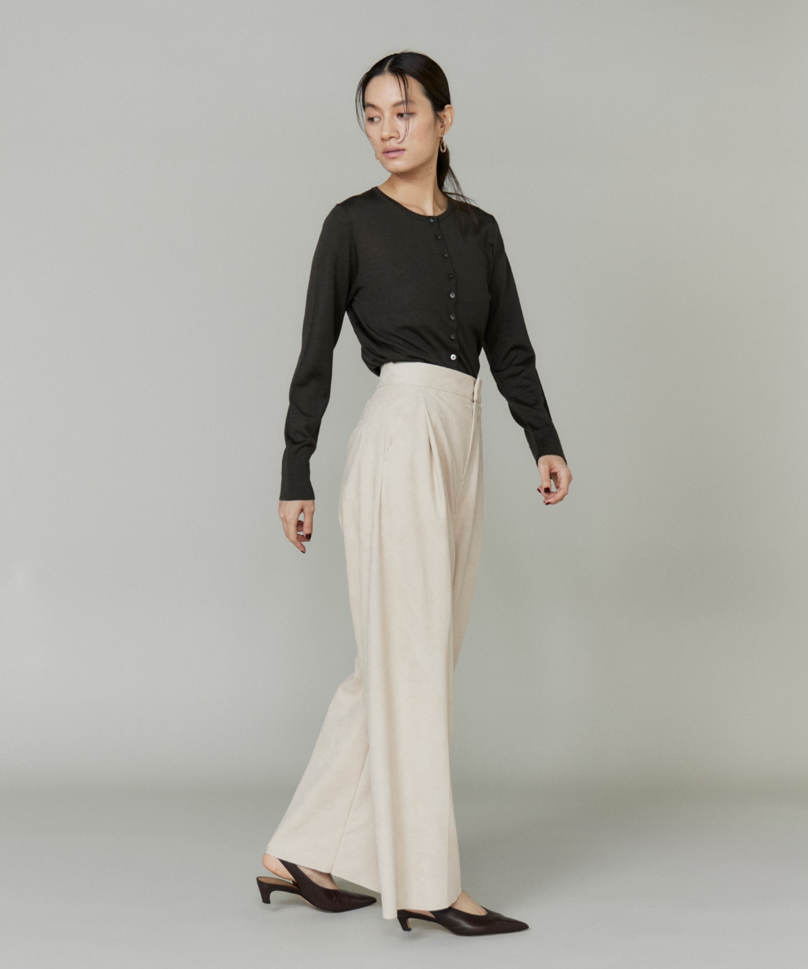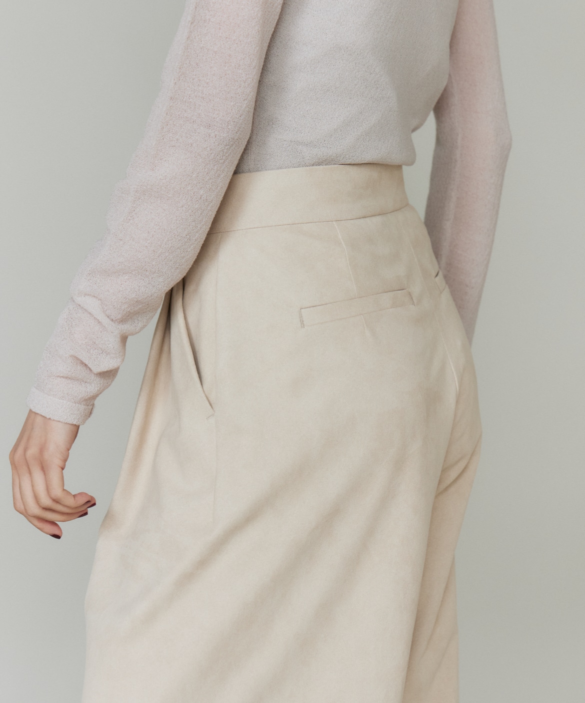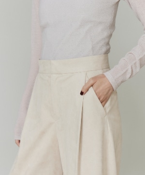 《大きいサイズ》フェイクスエードタックワイドパンツ