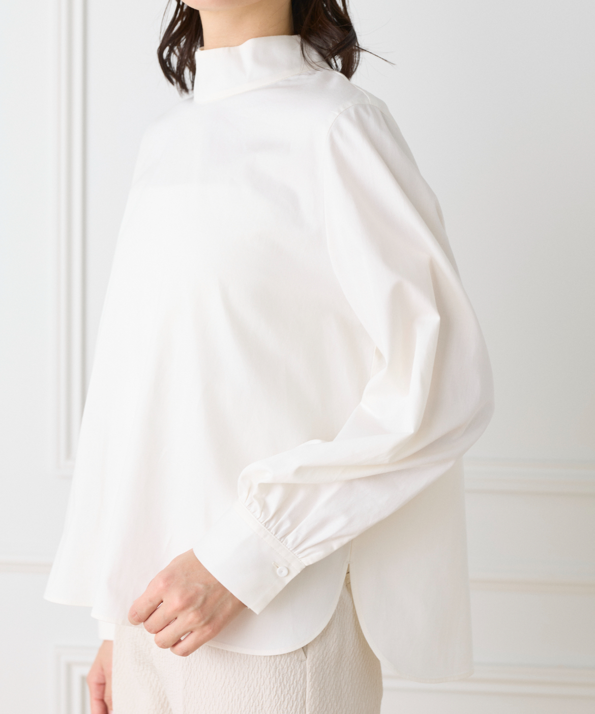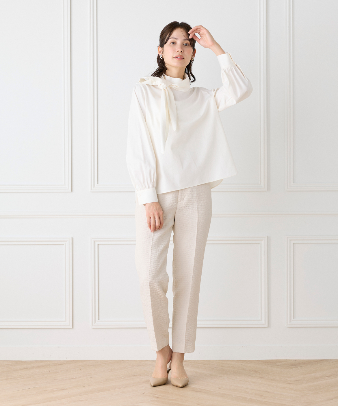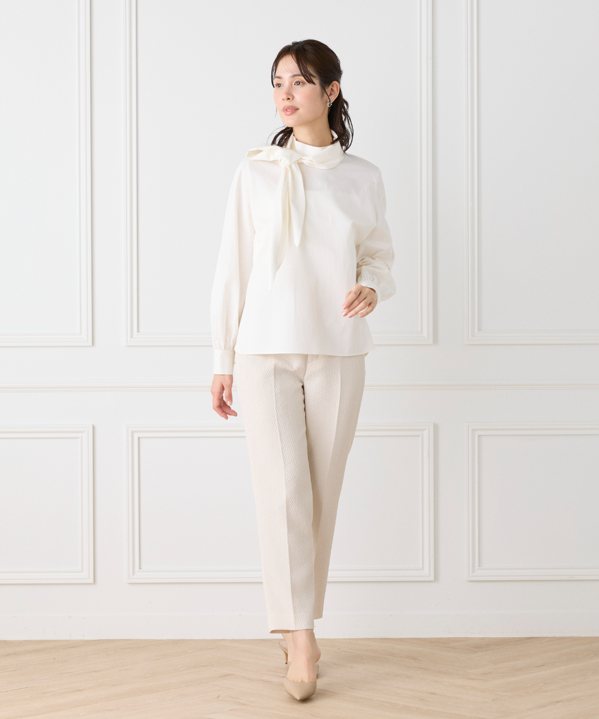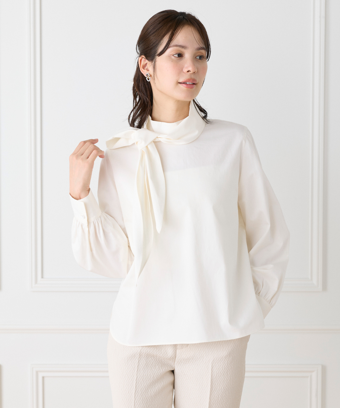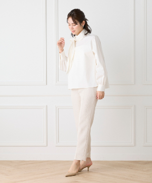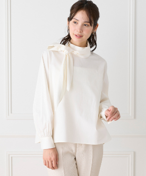 ハイネックボウタイ付きブラウス