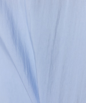 テンセルとナイロンを使用した薄手の平織素材。独特のパウダータッチと贅沢でなめらかな手触り、上品な光沢が魅力。ナチュラルで表情のあるシワ感が奥行きを生み、優れたドレープ性によって流れるような美しいシルエットを演出。手間と時間がかかるニドムワッシャー加工による高級感のある風合いもプラスされた素材です。