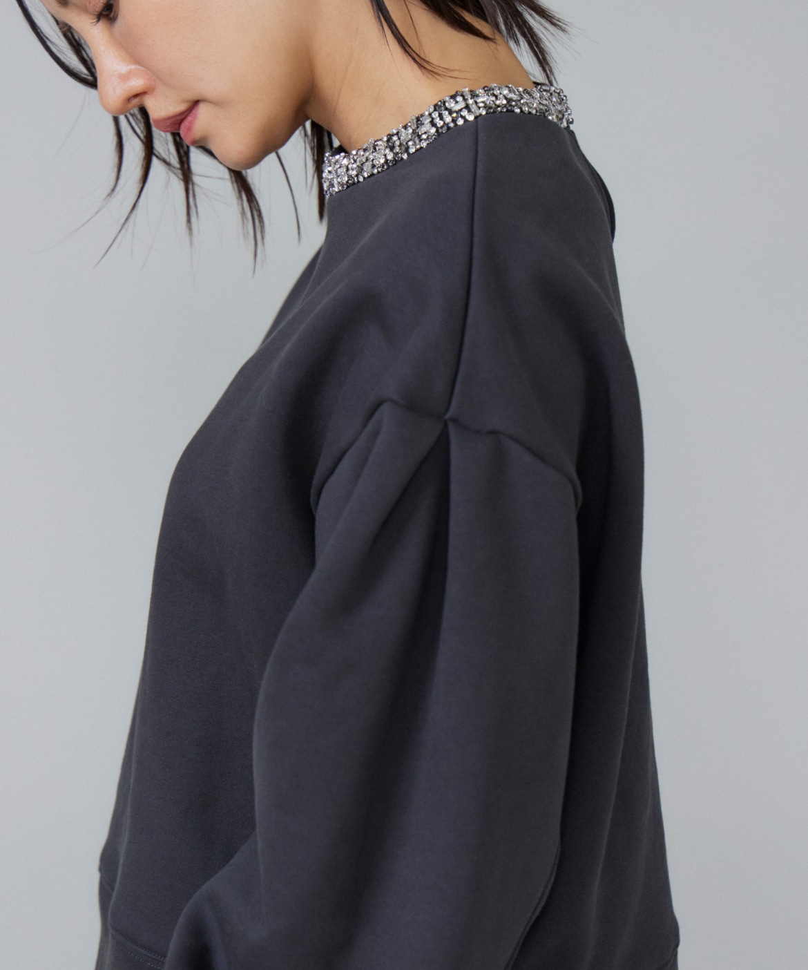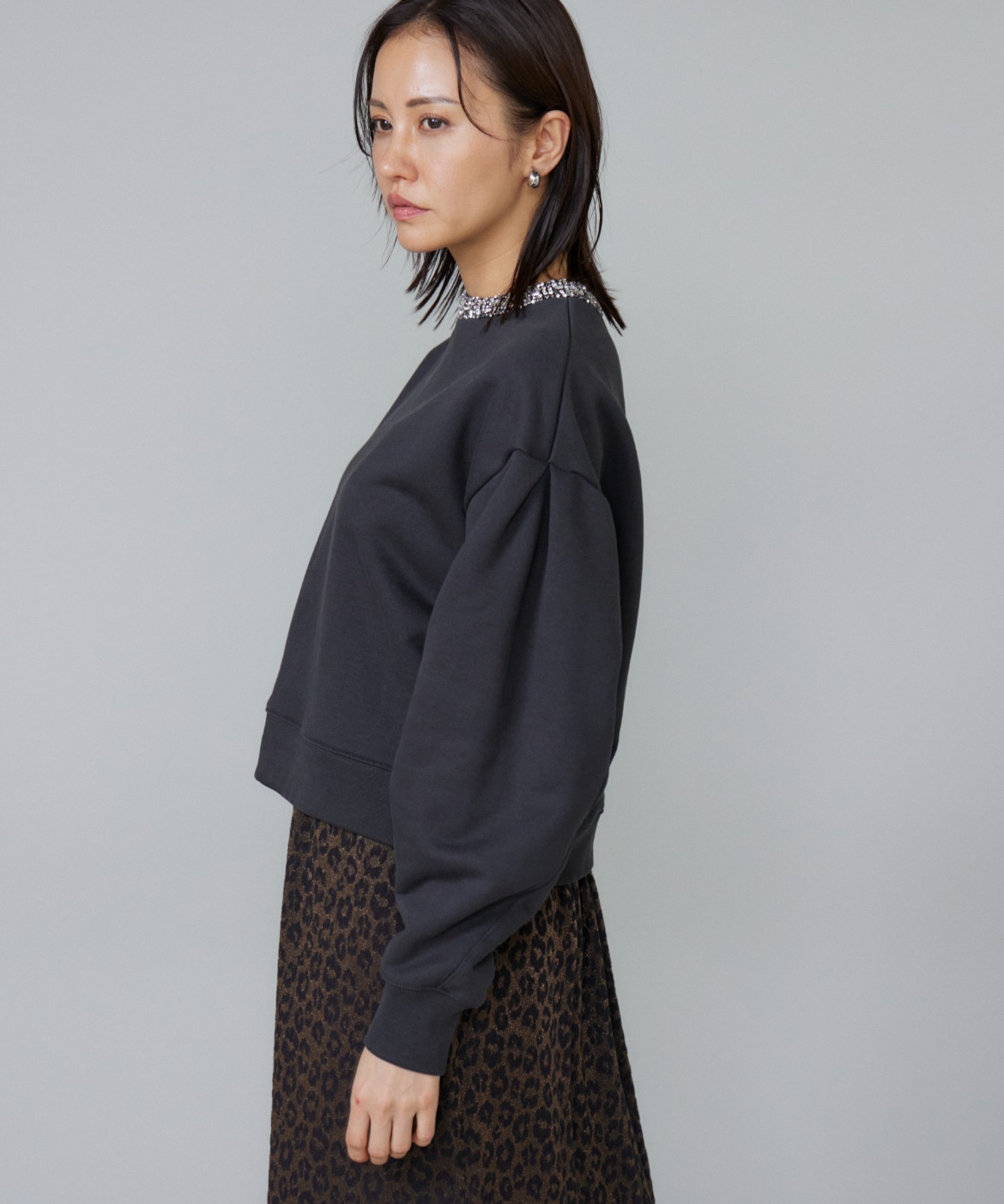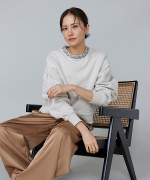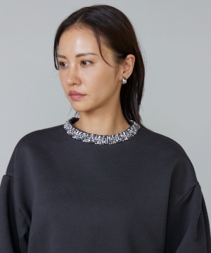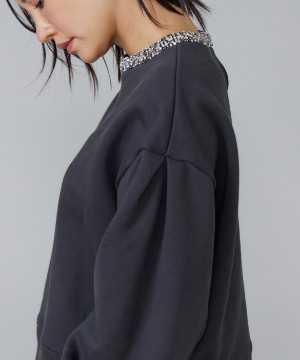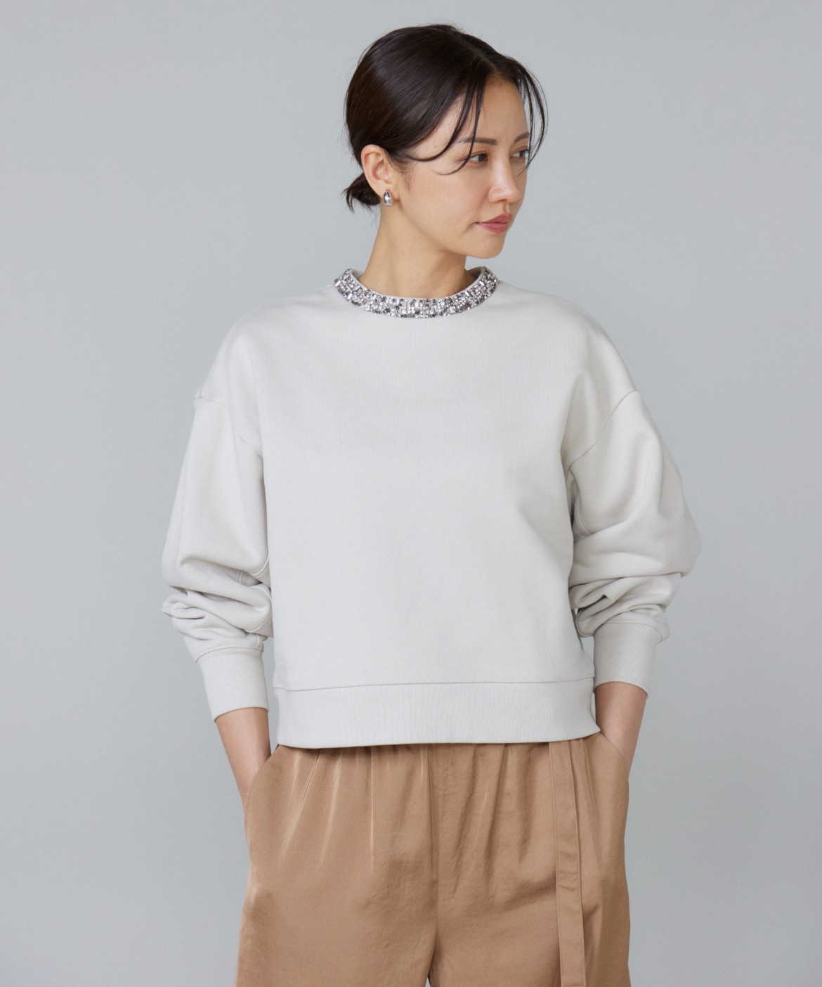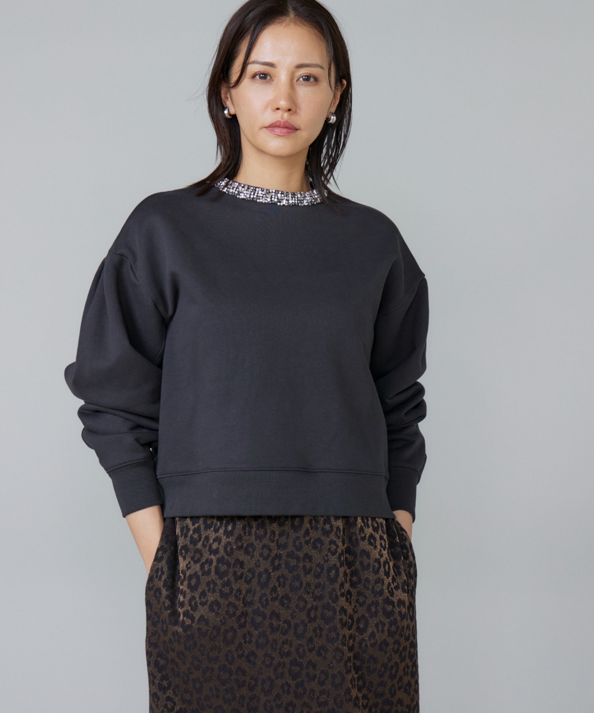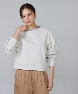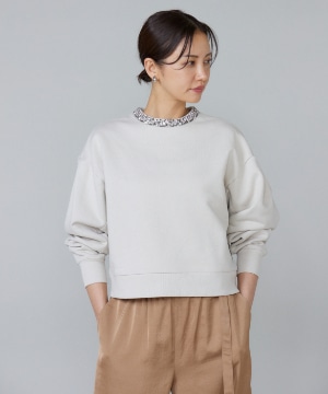 《大きいサイズ》ビジュー衿裏毛プルオーバー