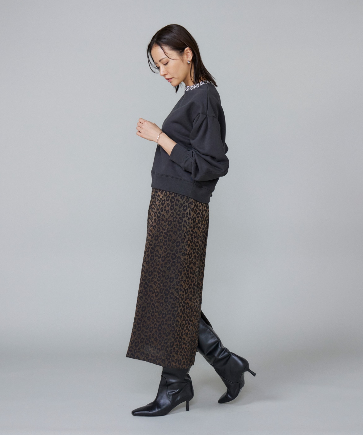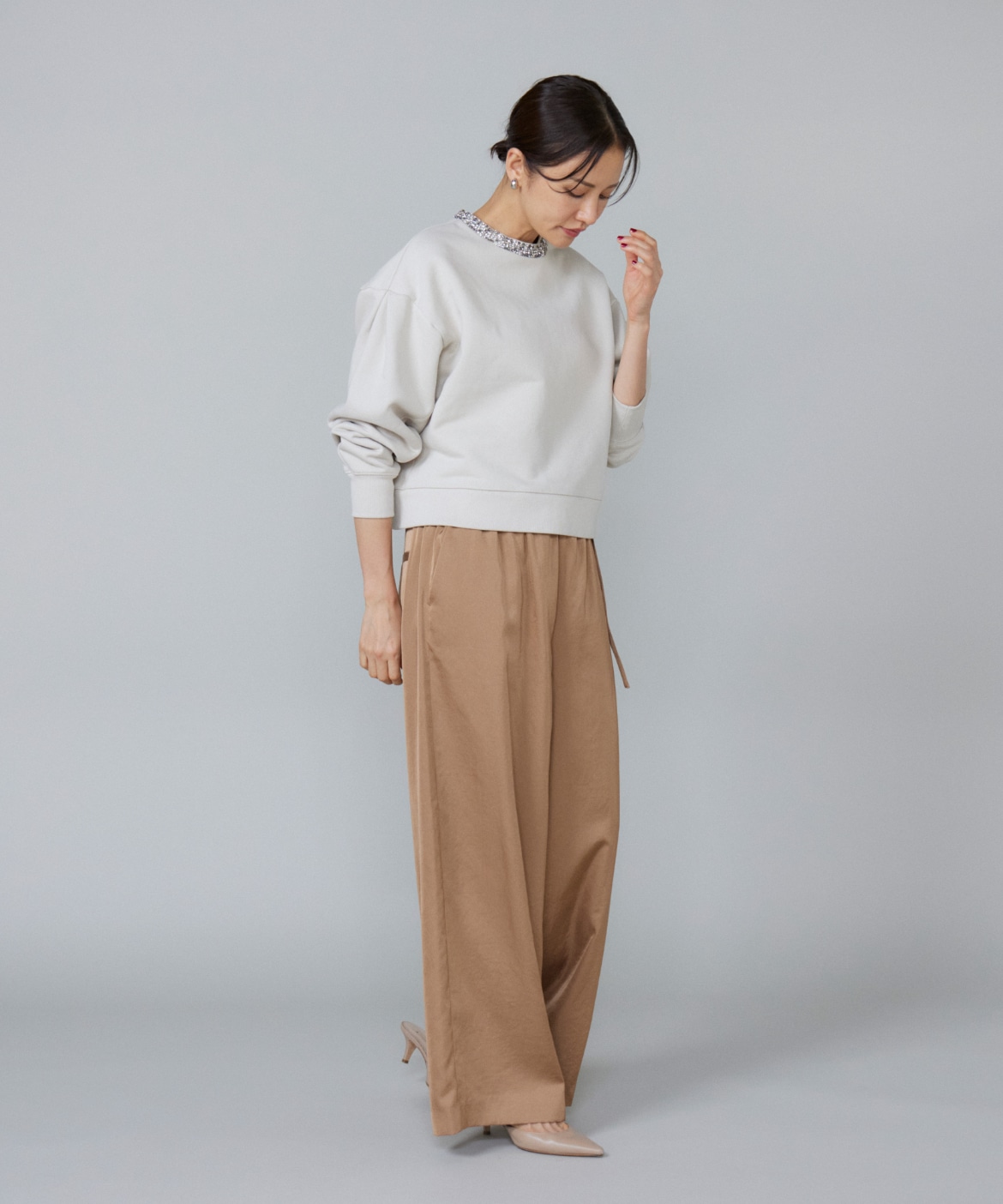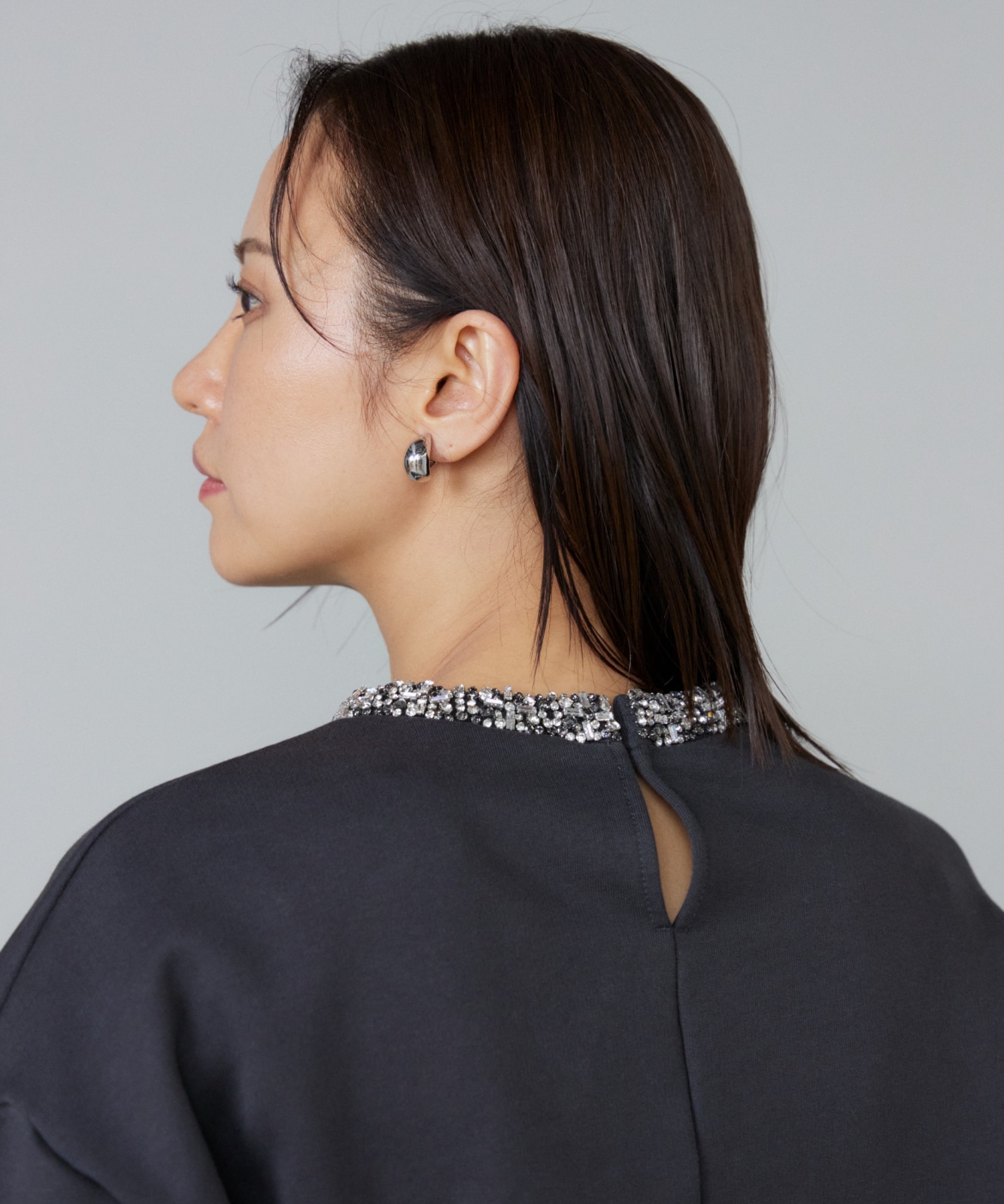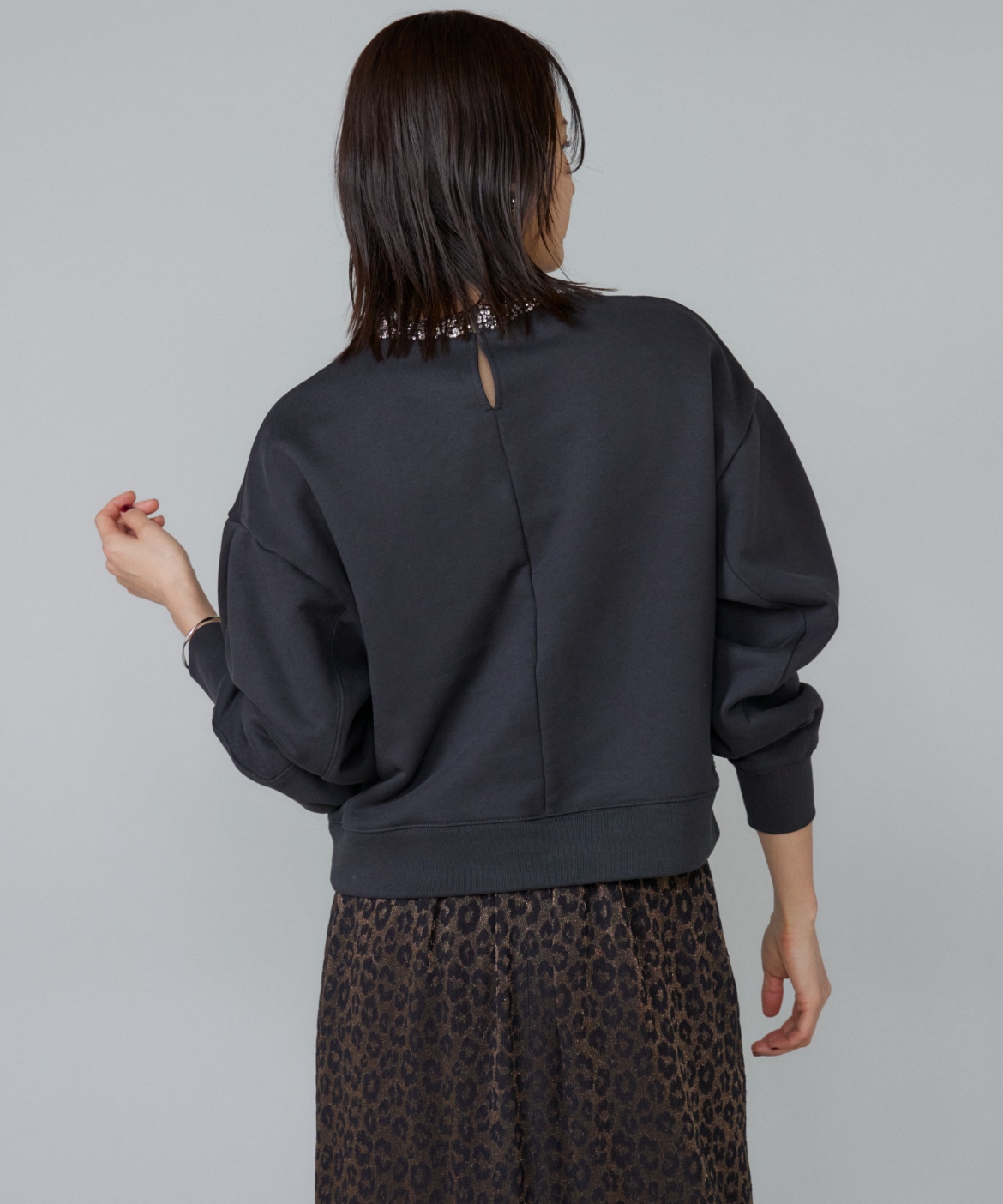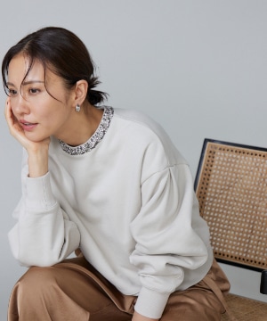 《大きいサイズ》ビジュー衿裏毛プルオーバー