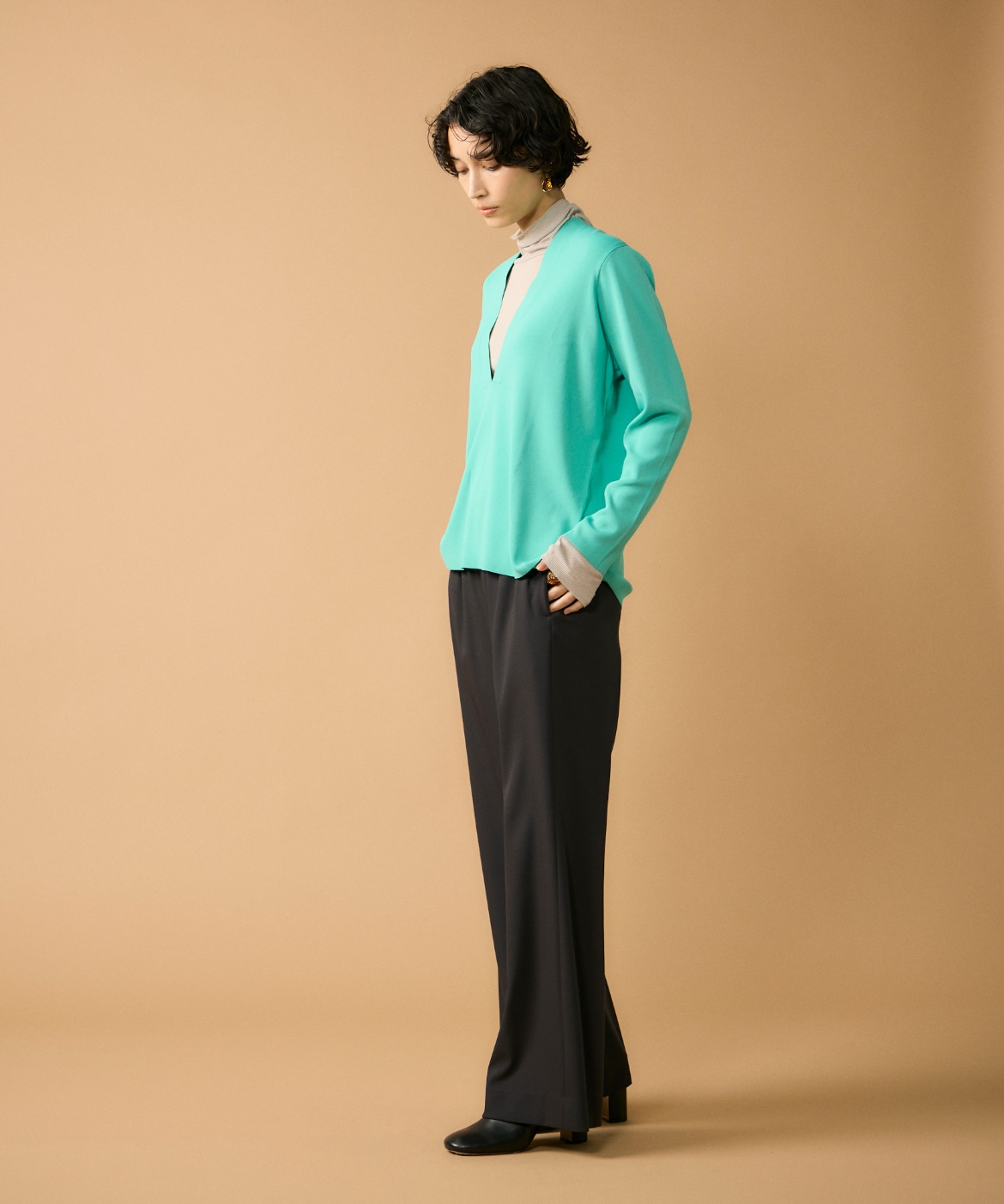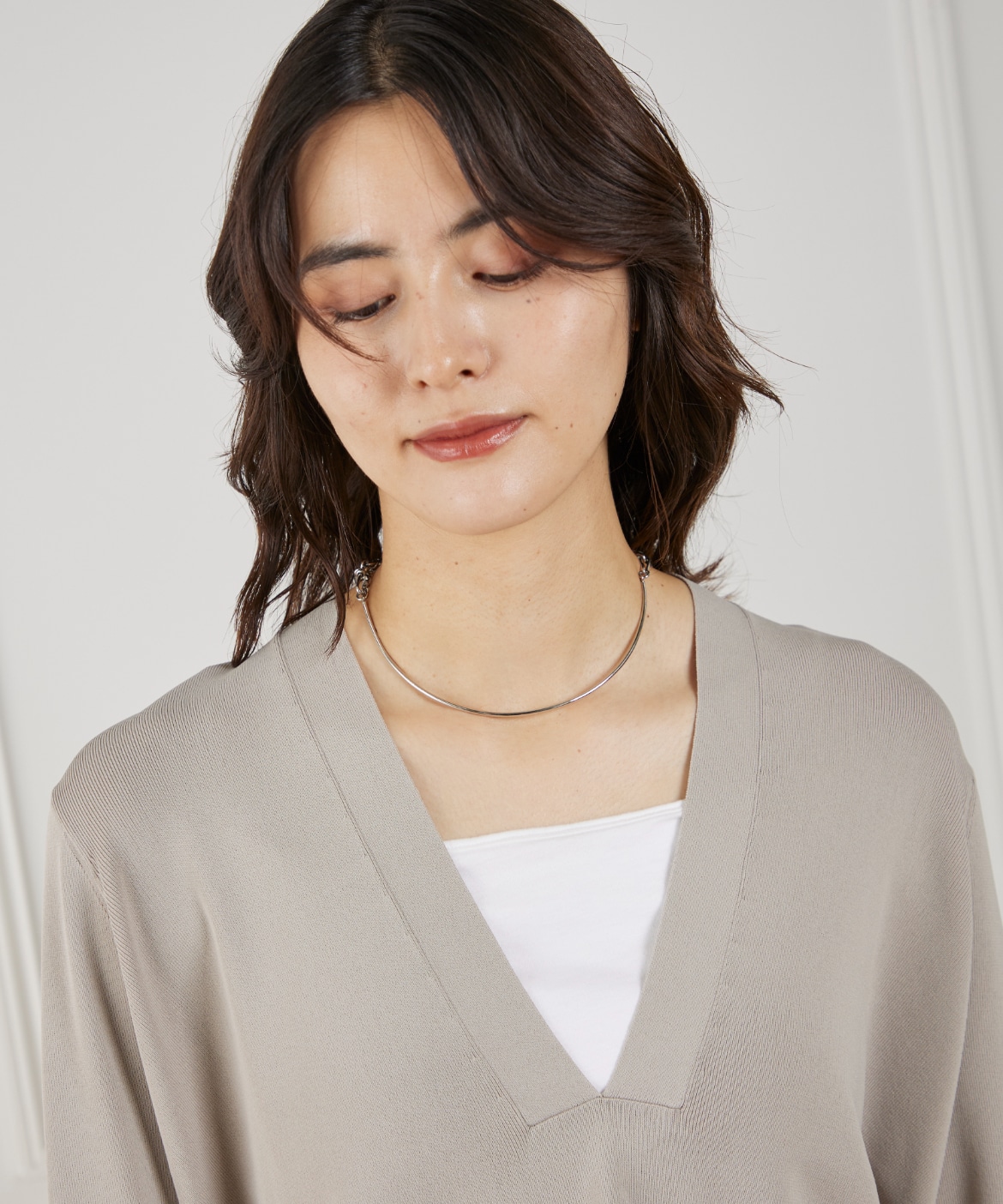 Vネックニットプルオーバー