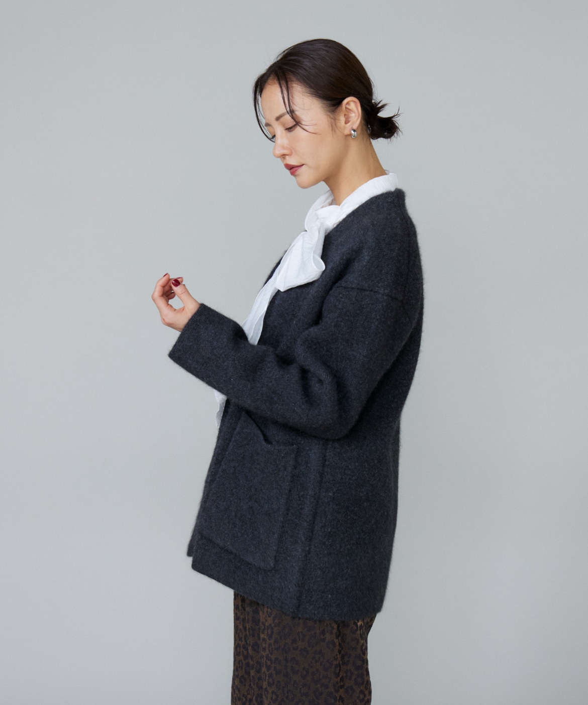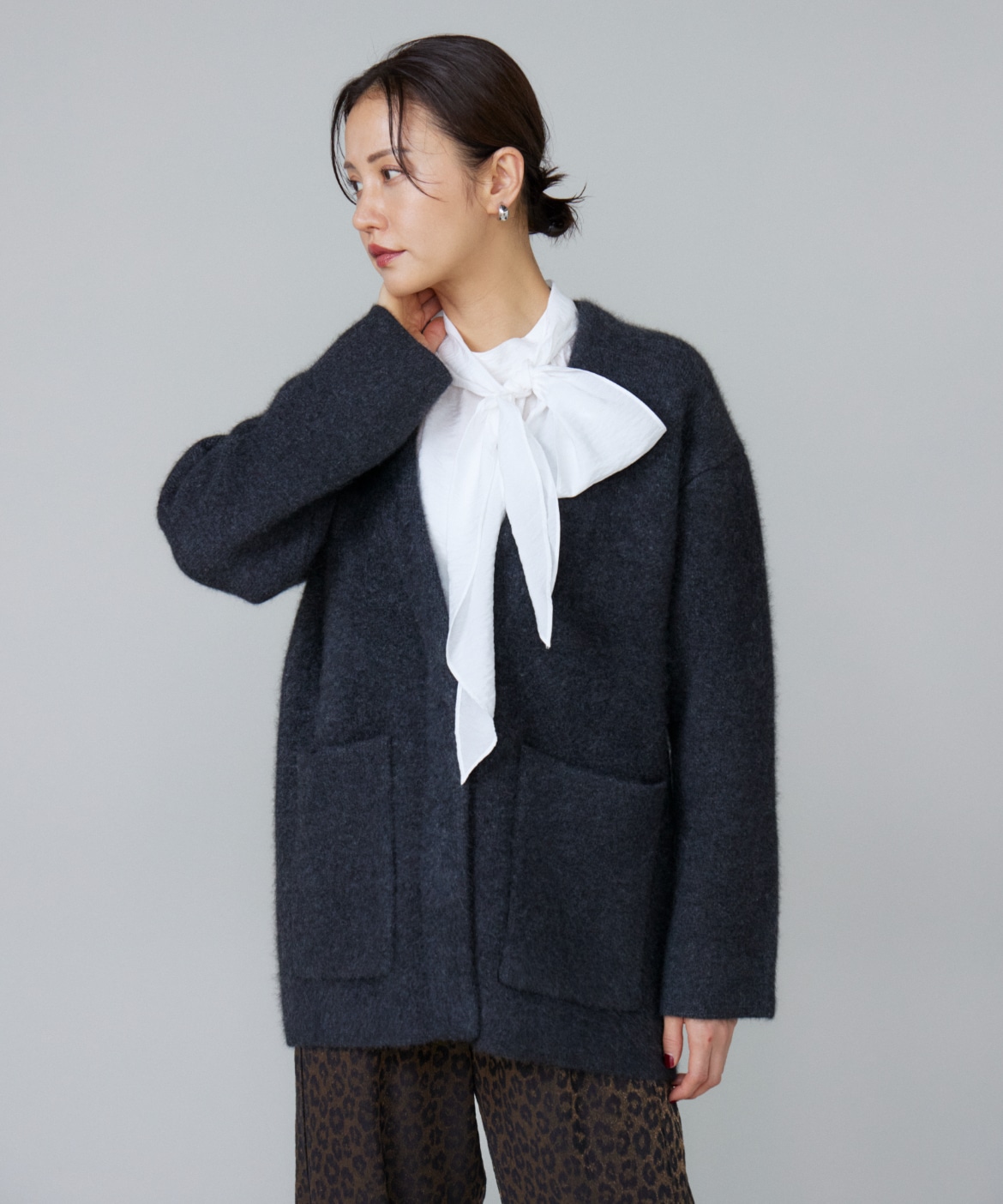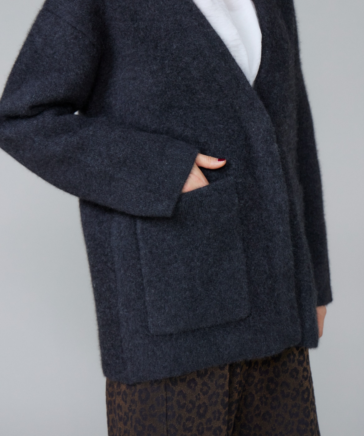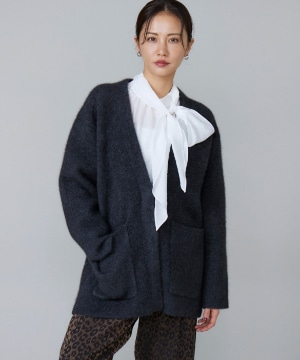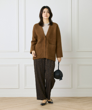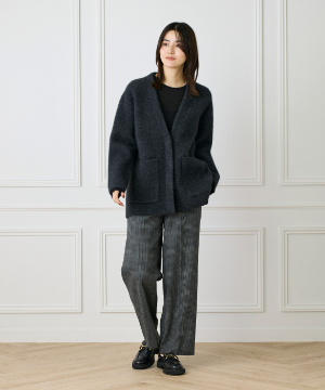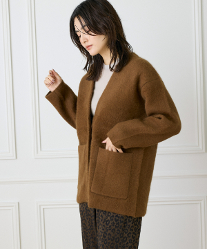 《大きいサイズ》ラクーン接結編みニットジャケット