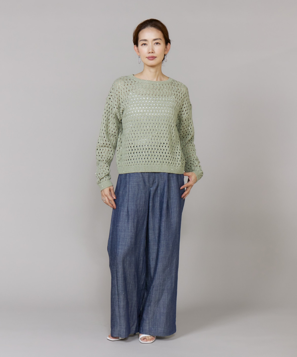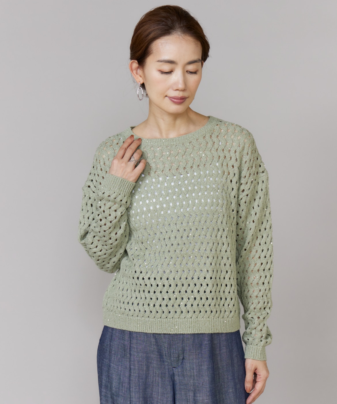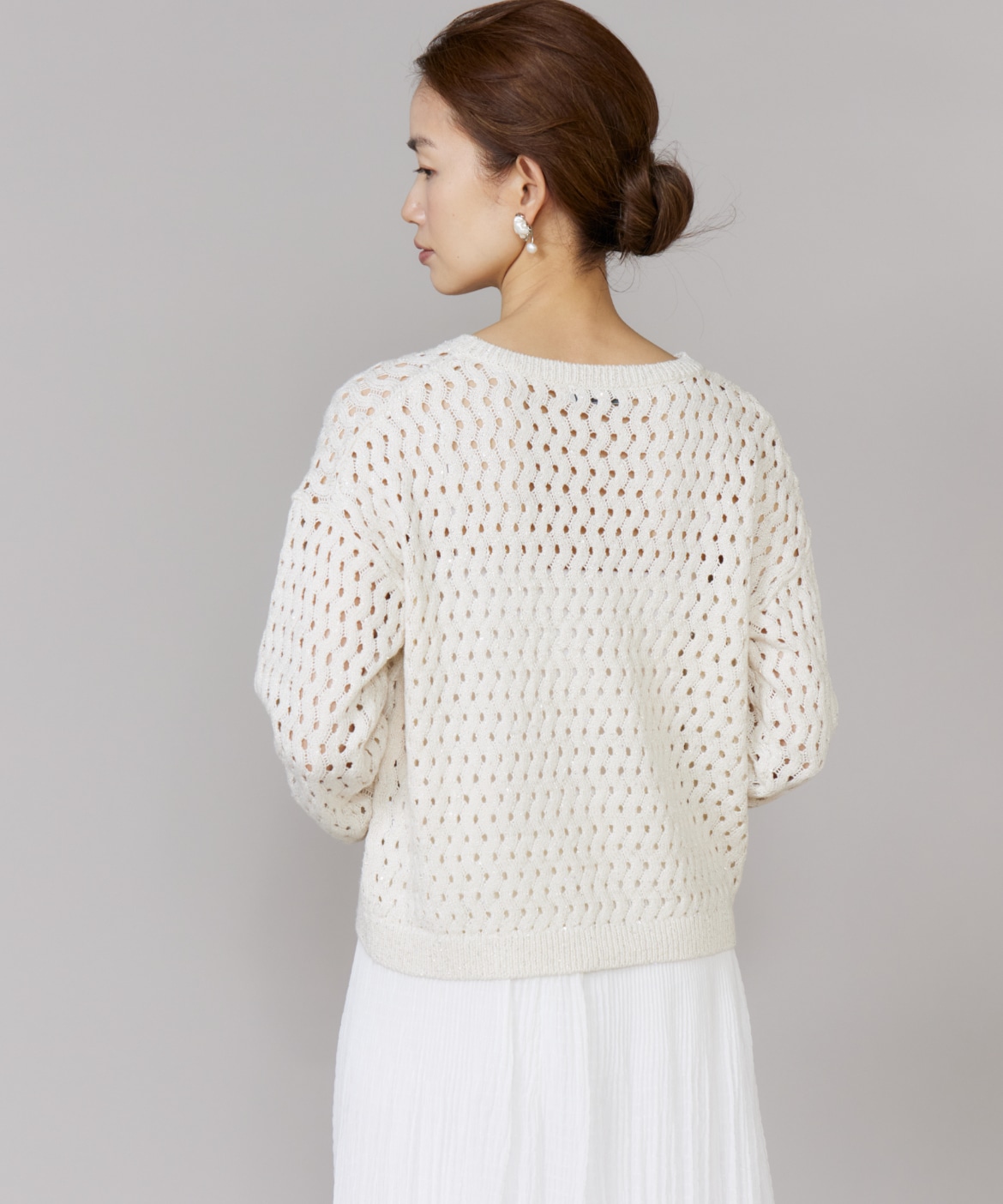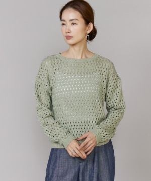 透かし柄ボートネックプルオーバー
