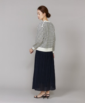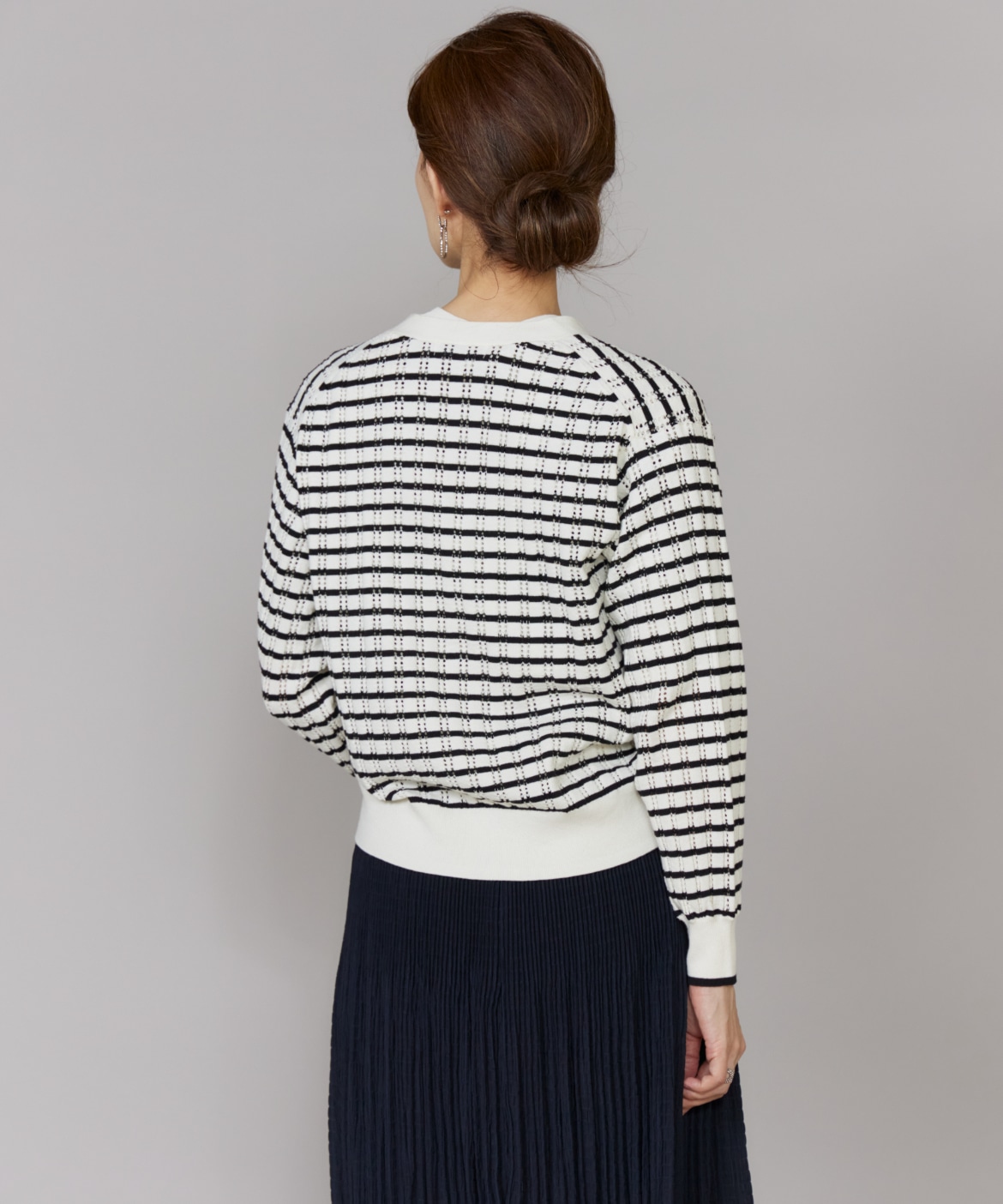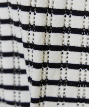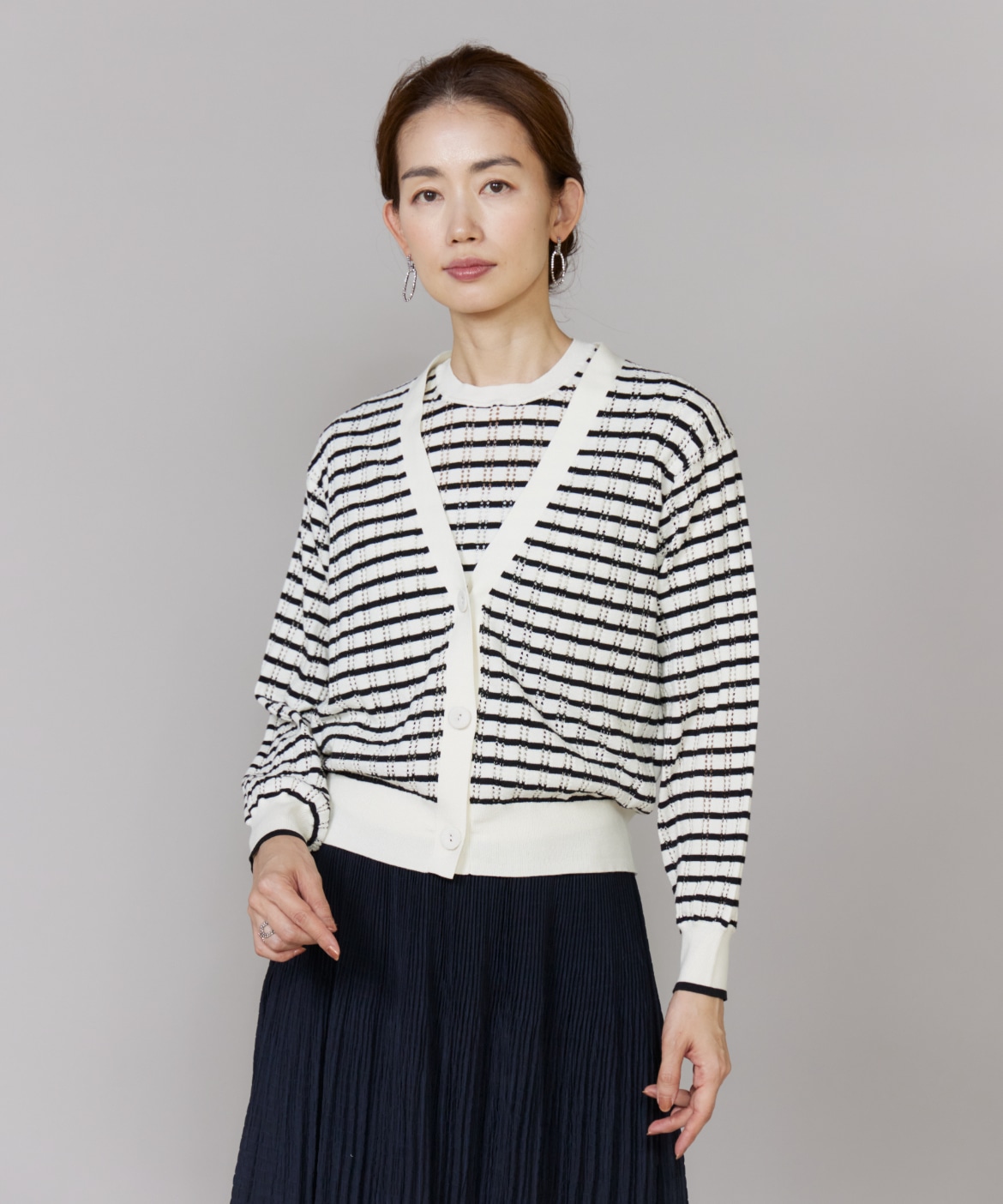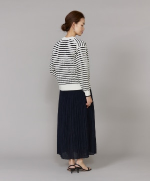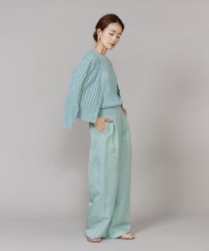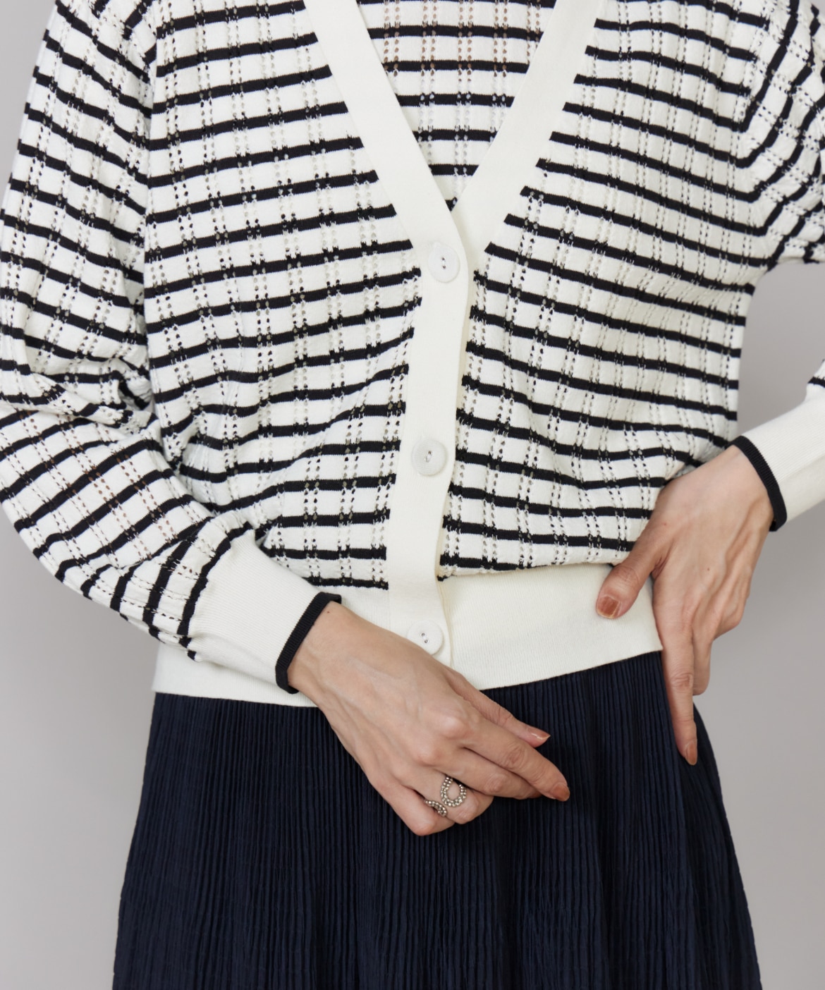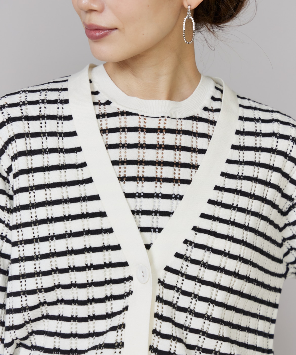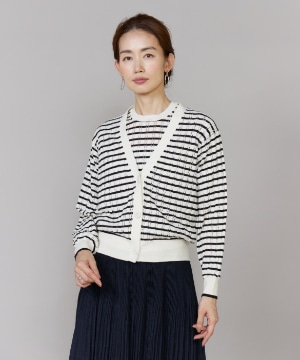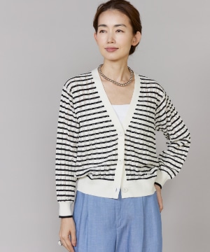 透かし柄リブクルーVネックカーディガン