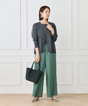 マニラ麻由来の紙から生まれたペーパーヤーンを使用。吸汗性に優れ、汗ばむ季節でもベタつきにくく快適な着心地を叶えます。麻のようなナチュラルな風合いと、軽やかでドライなタッチが魅力です。