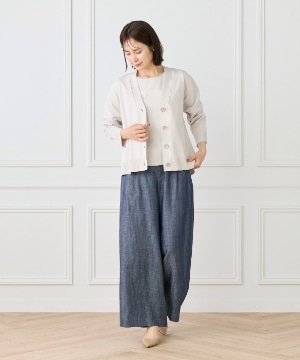 マニラ麻由来の紙から生まれたペーパーヤーンを使用。吸汗性に優れ、汗ばむ季節でもベタつきにくく快適な着心地を叶えます。麻のようなナチュラルな風合いと、軽やかでドライなタッチが魅力です。