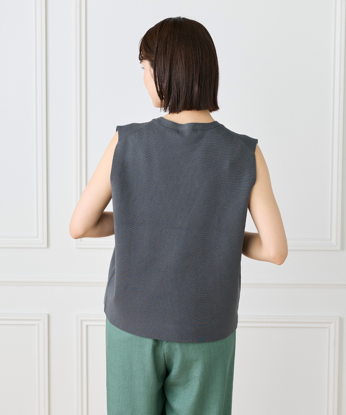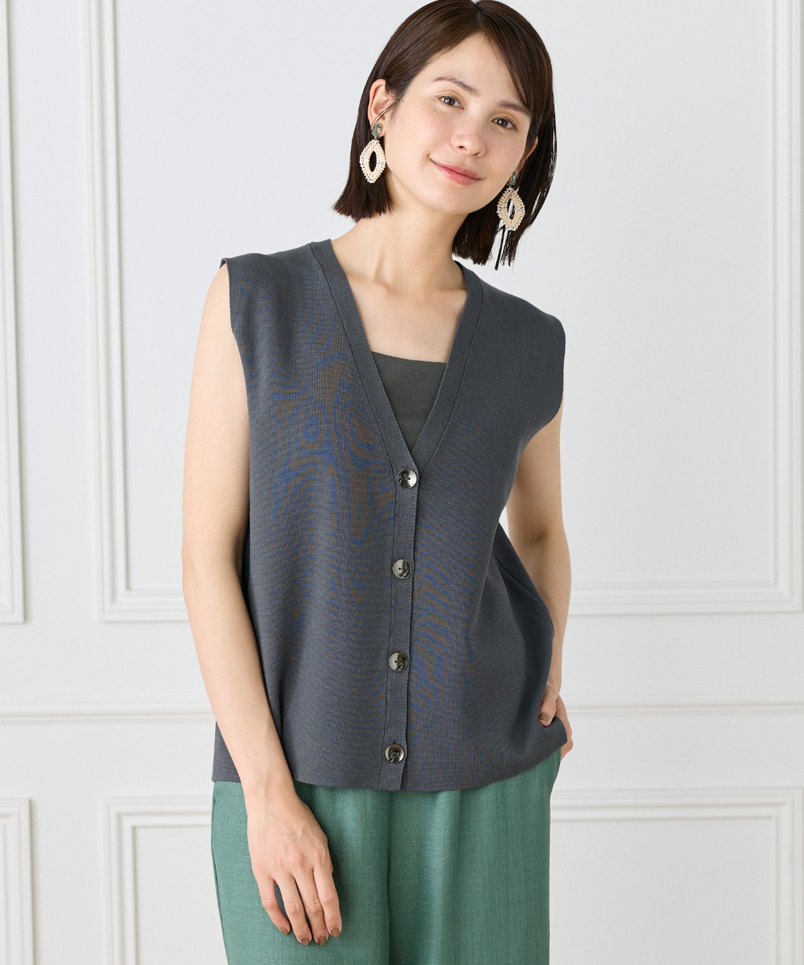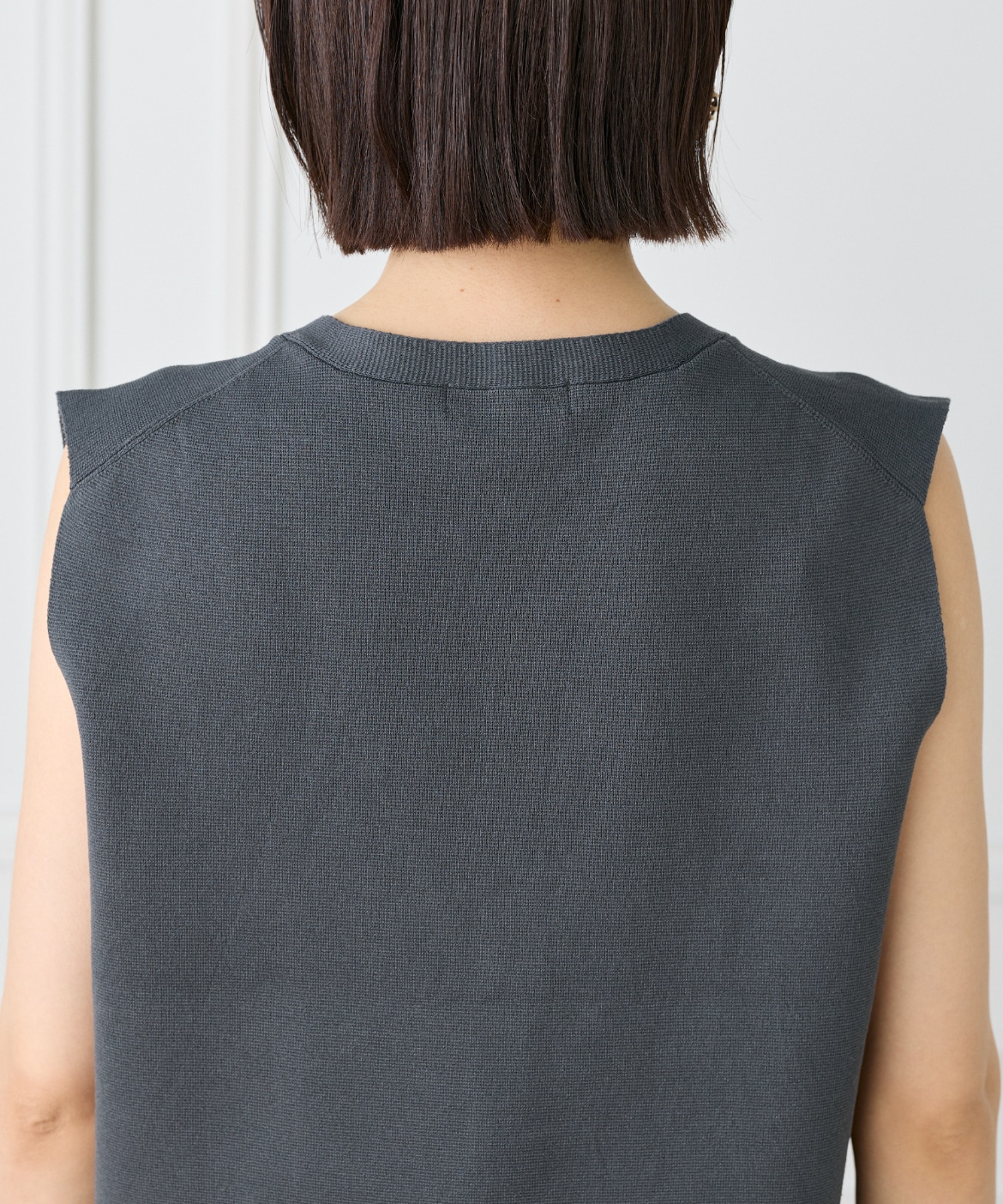 丁寧に編み立てたミラリブの編地が上品なジレ。身体のラインを拾いにくい、程よくコンパクトなサイジングでバランスよく着こなせます。目を立てたすっきりとした清涼感のあるアームホールラインもポイント。メタルボタンをあしらうことで、ナチュラルになりすぎない洗練された印象に仕上げました。レイヤードはもちろん、プルオーバーとして一枚での着用もおすすめです。