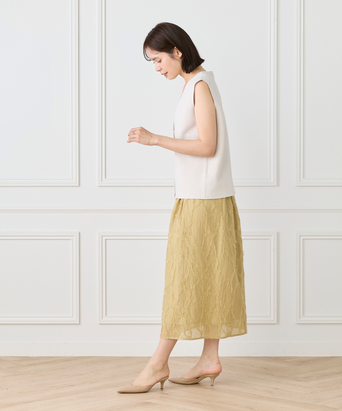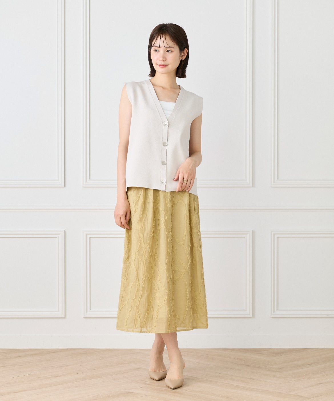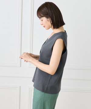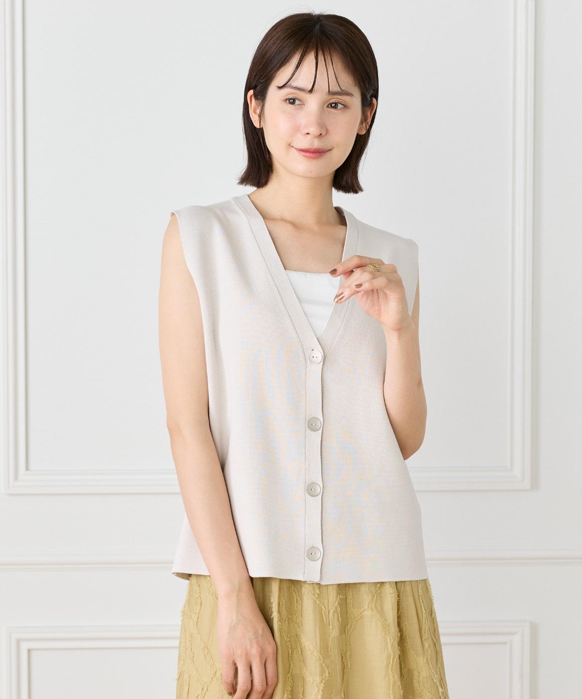 丁寧に編み立てたミラリブの編地が上品なジレ。身体のラインを拾いにくい、程よくコンパクトなサイジングでバランスよく着こなせます。目を立てたすっきりとした清涼感のあるアームホールラインもポイント。メタルボタンをあしらうことで、ナチュラルになりすぎない洗練された印象に仕上げました。レイヤードはもちろん、プルオーバーとして一枚での着用もおすすめです。
