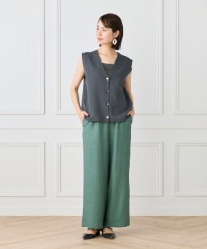 マニラ麻由来の紙から生まれたペーパーヤーンを使用。吸汗性に優れ、汗ばむ季節でもベタつきにくく快適な着心地を叶えます。麻のようなナチュラルな風合いと、軽やかでドライなタッチが魅力です。