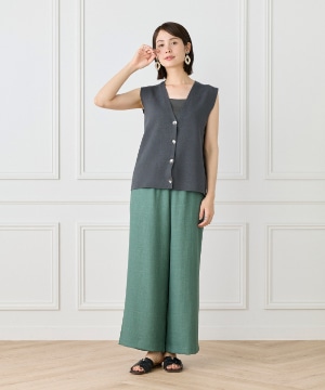 マニラ麻由来の紙から生まれたペーパーヤーンを使用。吸汗性に優れ、汗ばむ季節でもベタつきにくく快適な着心地を叶えます。麻のようなナチュラルな風合いと、軽やかでドライなタッチが魅力です。