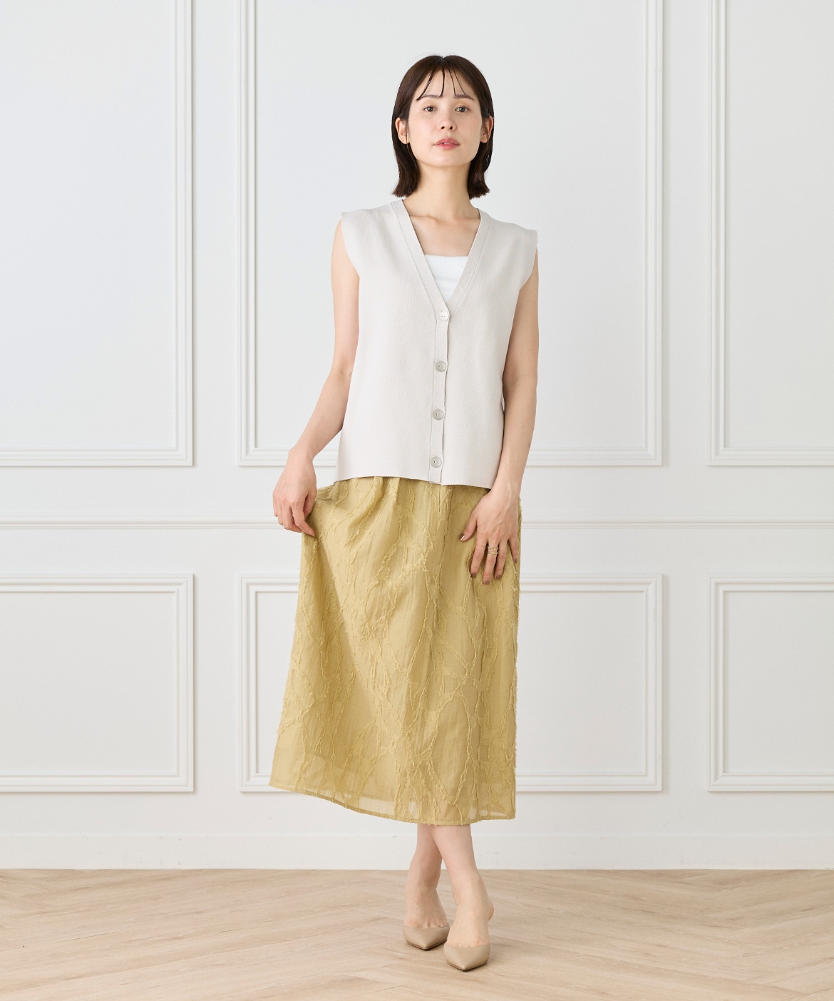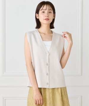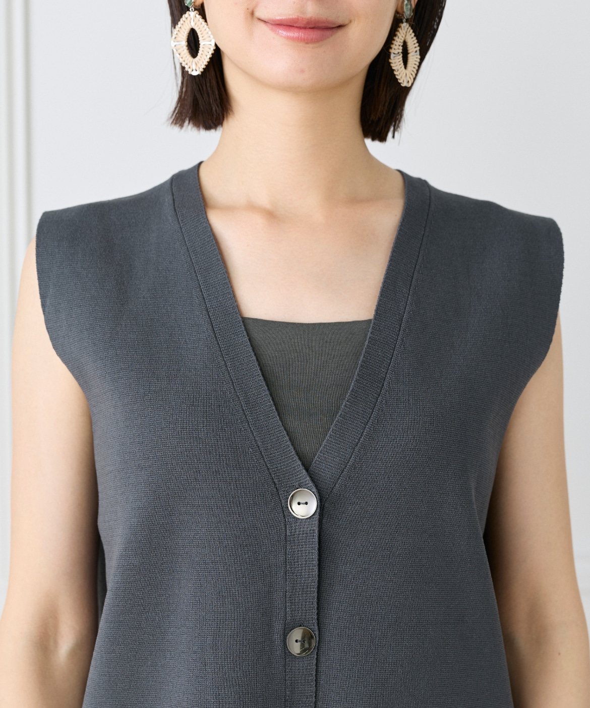 丁寧に編み立てたミラリブの編地が上品なジレ。身体のラインを拾いにくい、程よくコンパクトなサイジングでバランスよく着こなせます。目を立てたすっきりとした清涼感のあるアームホールラインもポイント。メタルボタンをあしらうことで、ナチュラルになりすぎない洗練された印象に仕上げました。レイヤードはもちろん、プルオーバーとして一枚での着用もおすすめです。