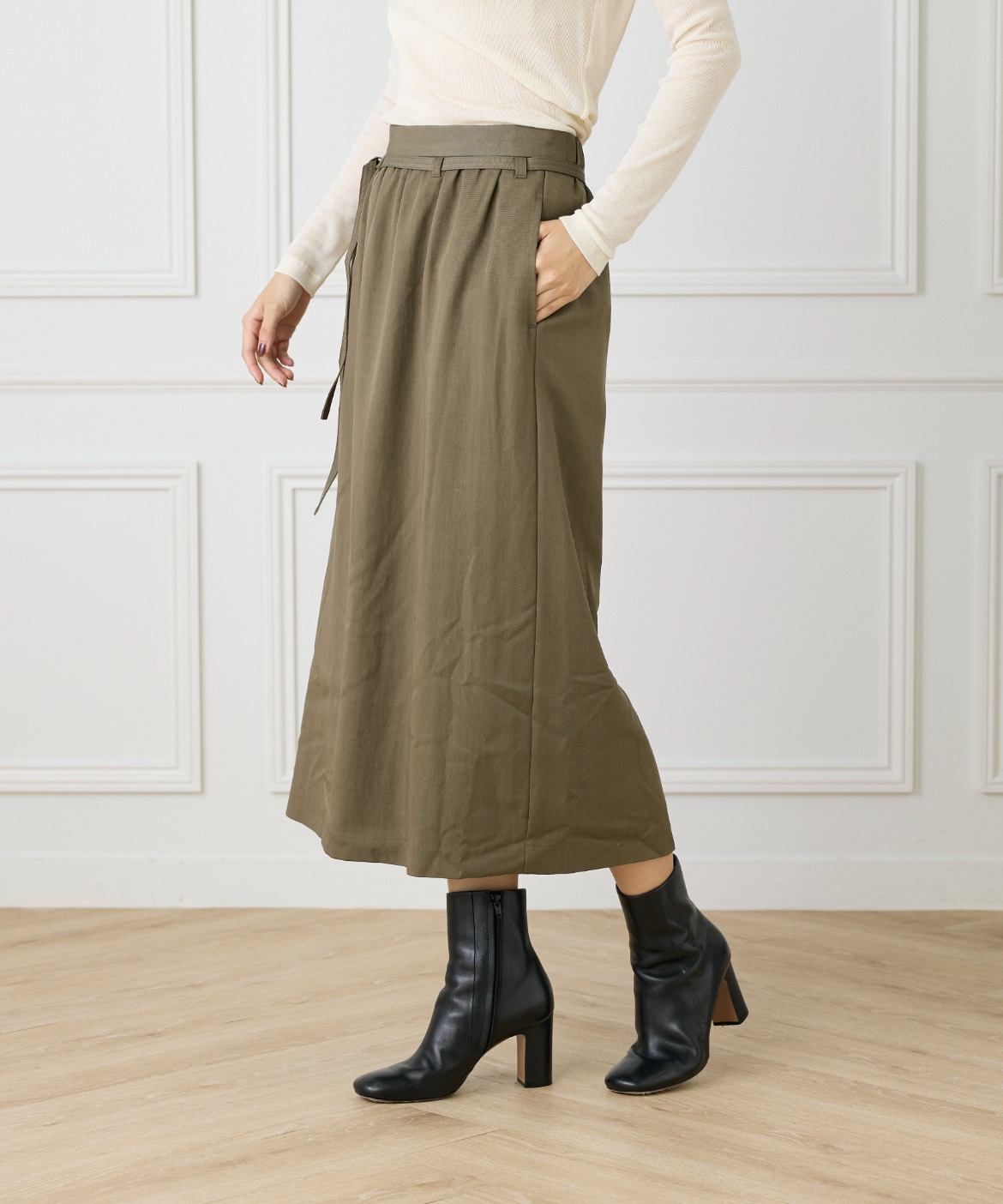 細タイベルト付きAラインスカート