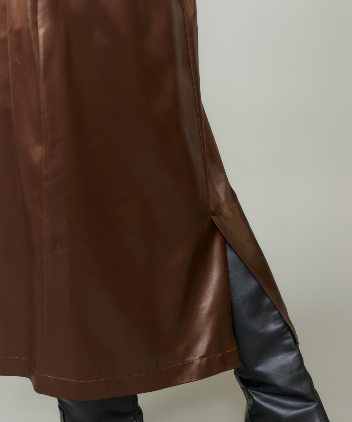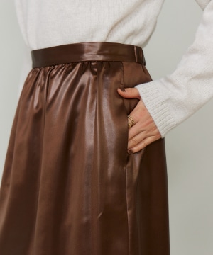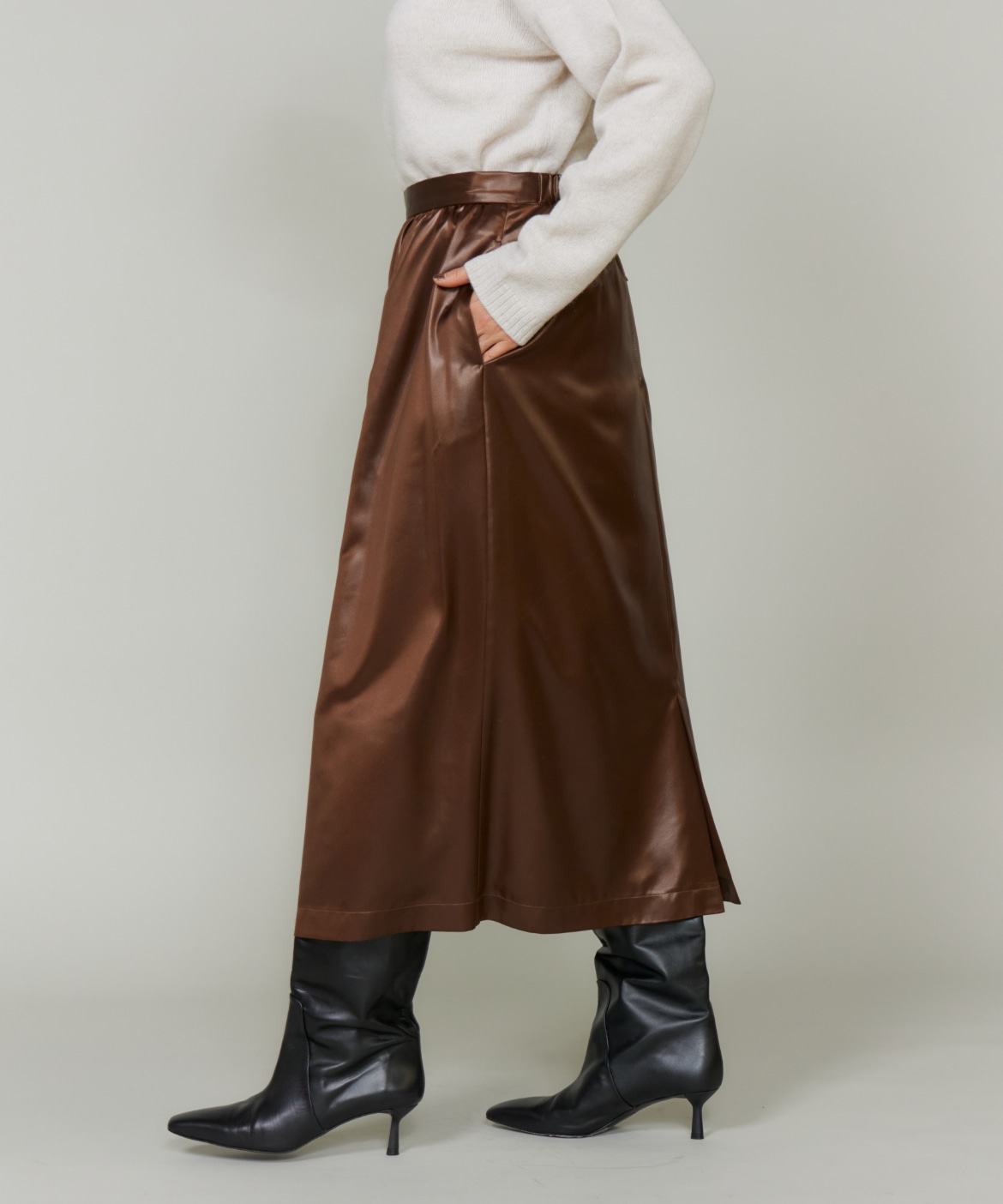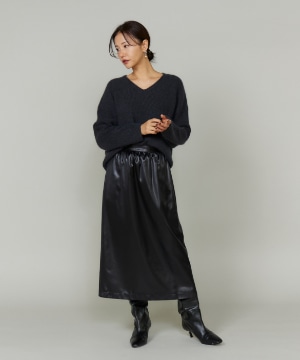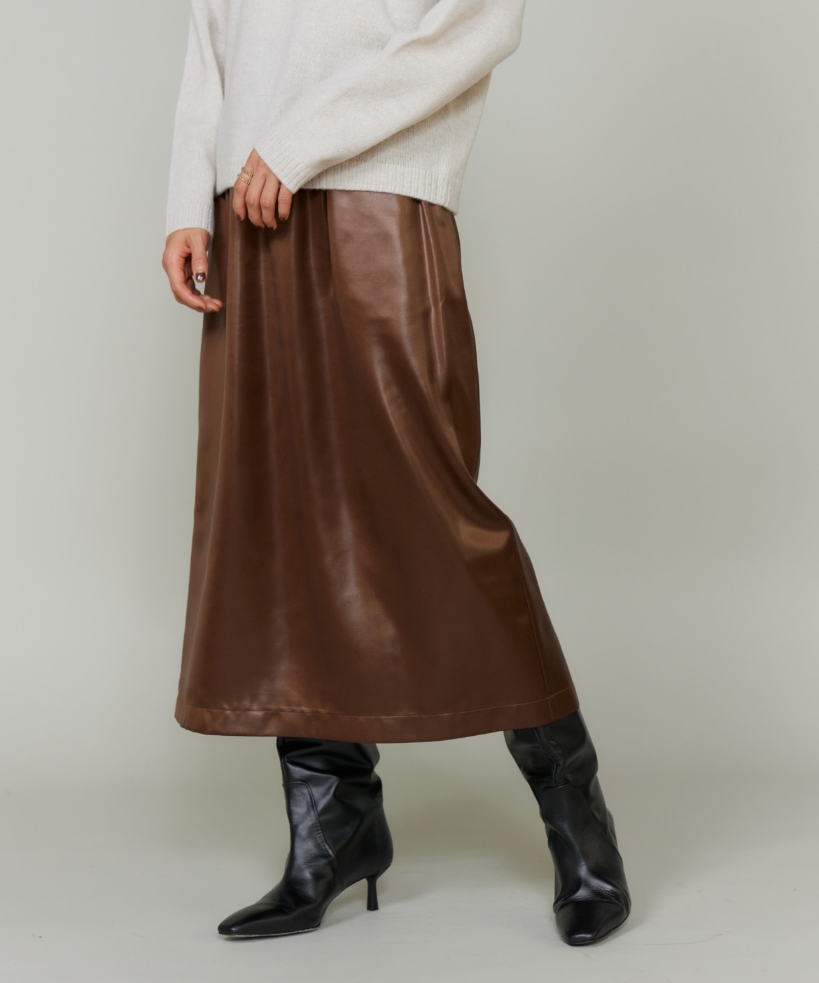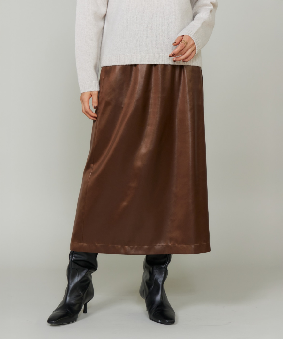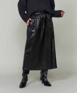 《大きいサイズ》レザーライクギャザーストレートスカート