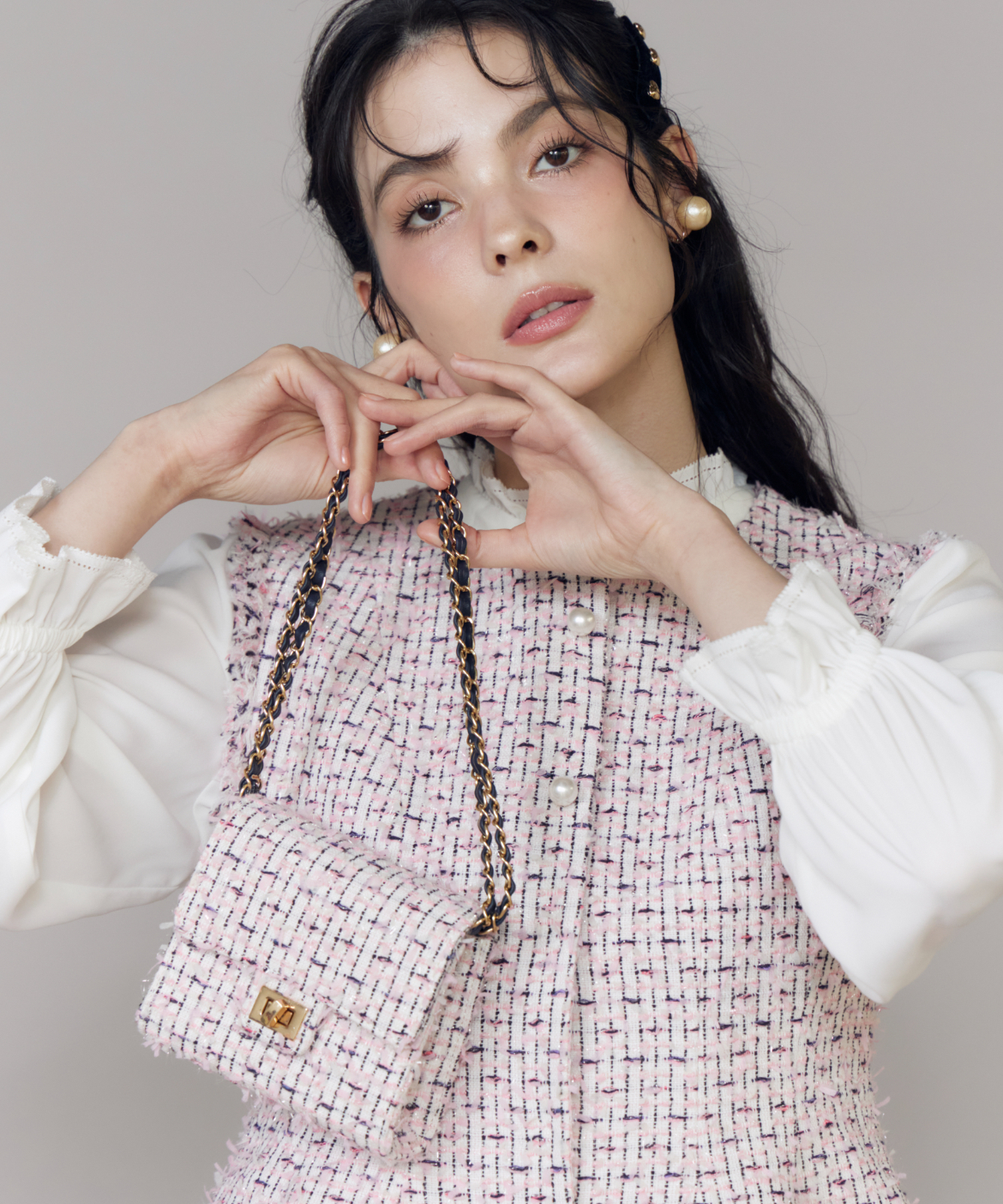 《M Maglie le cassetto》フリンジツイードショルダーバッグ