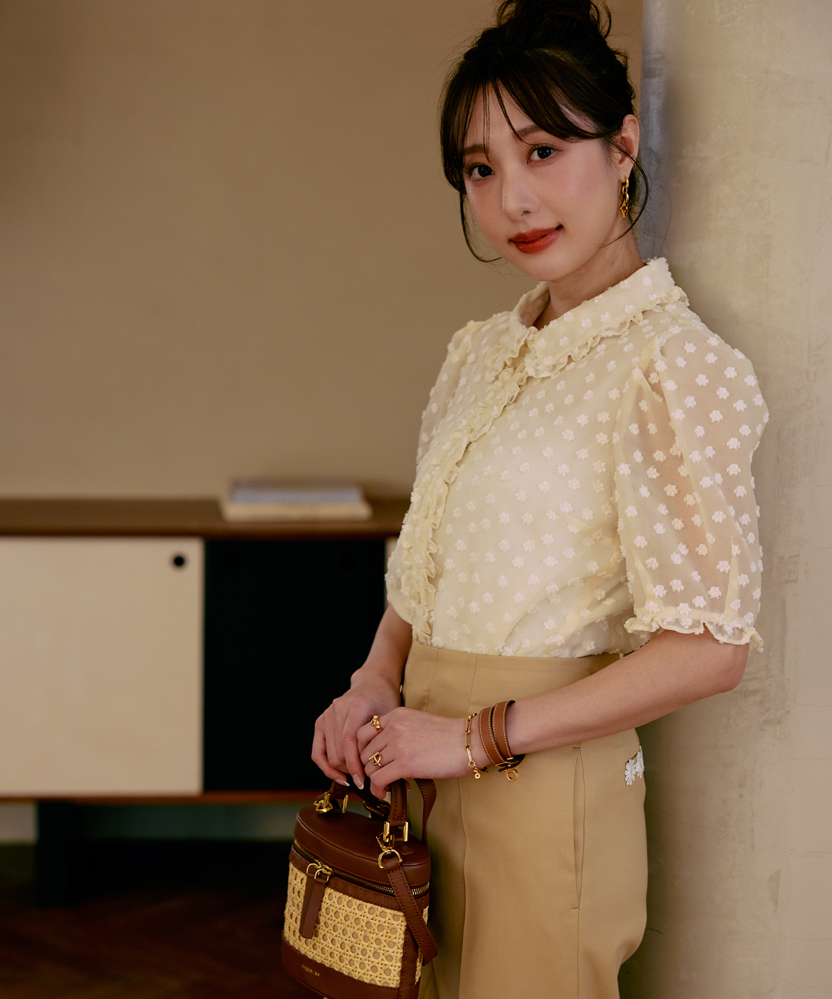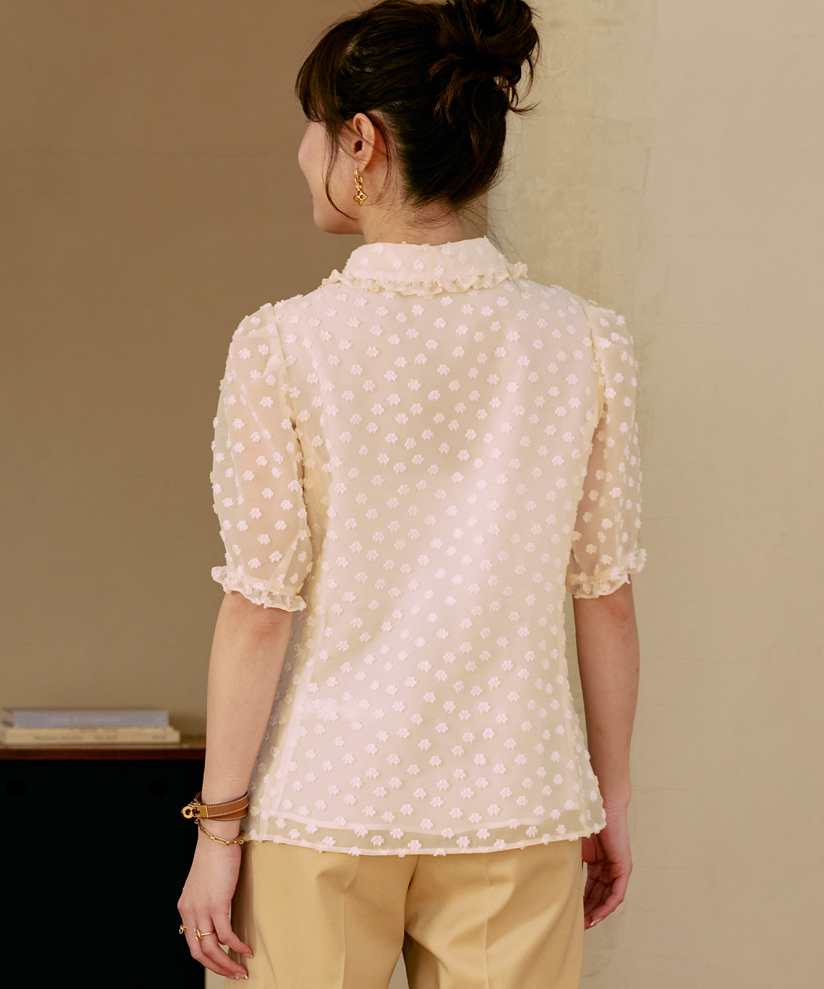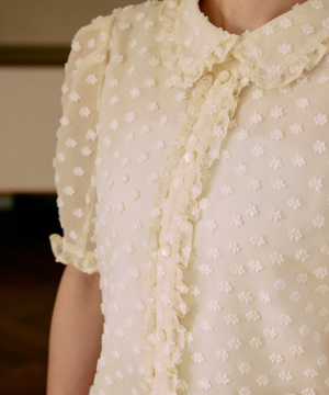 《M Maglie le cassetto×冨張愛》華やぎフリルカラードットジャガードブラウス