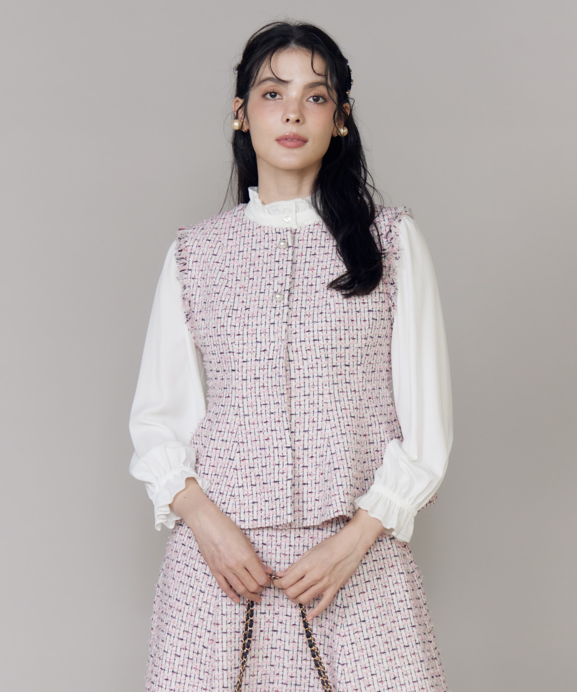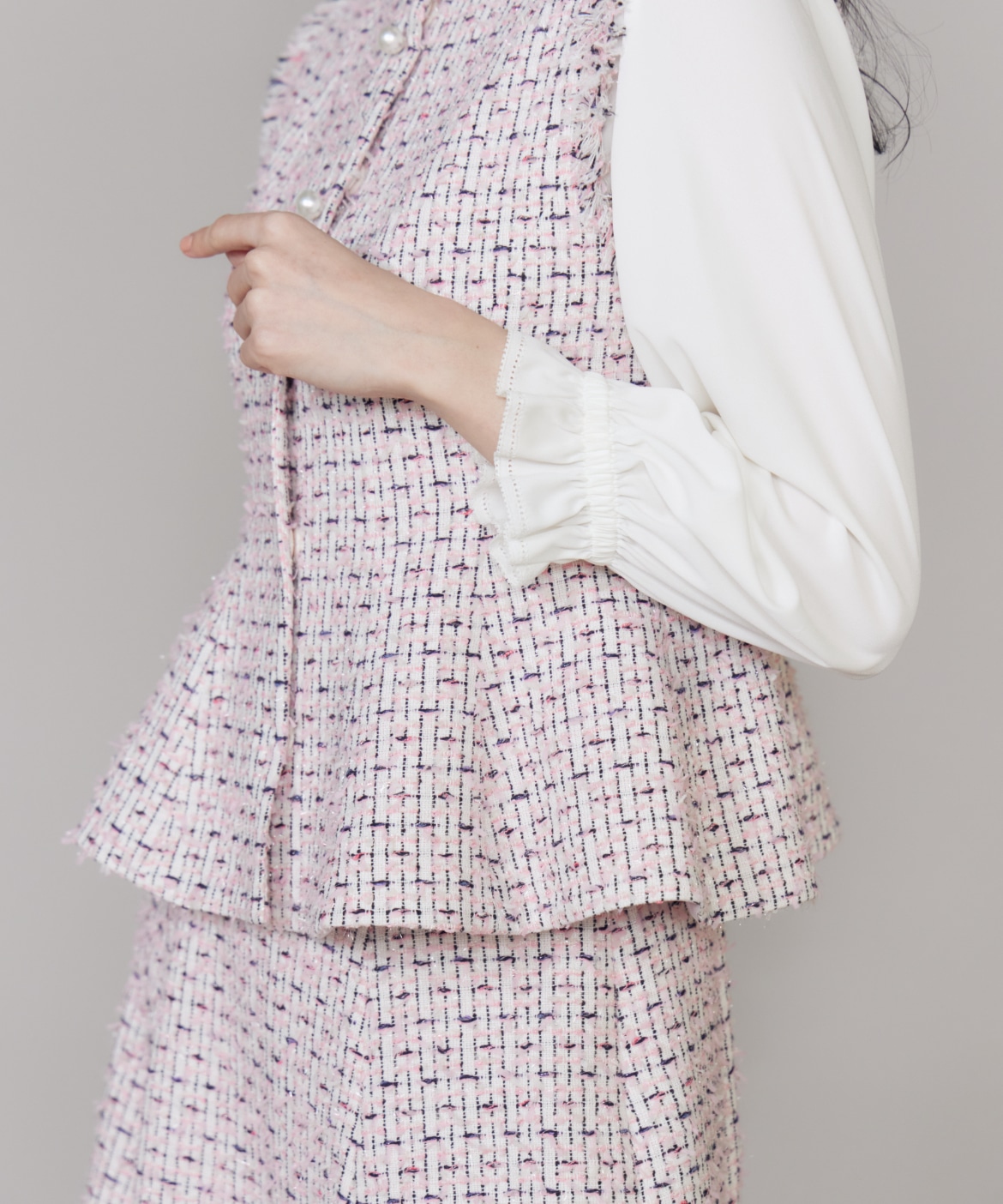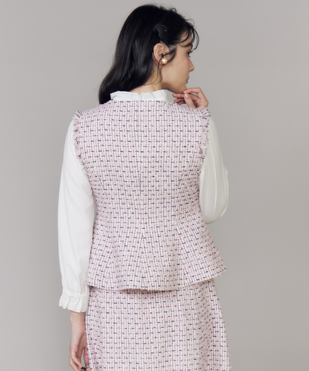 《M Maglie le cassetto》フリンジツイードジレ