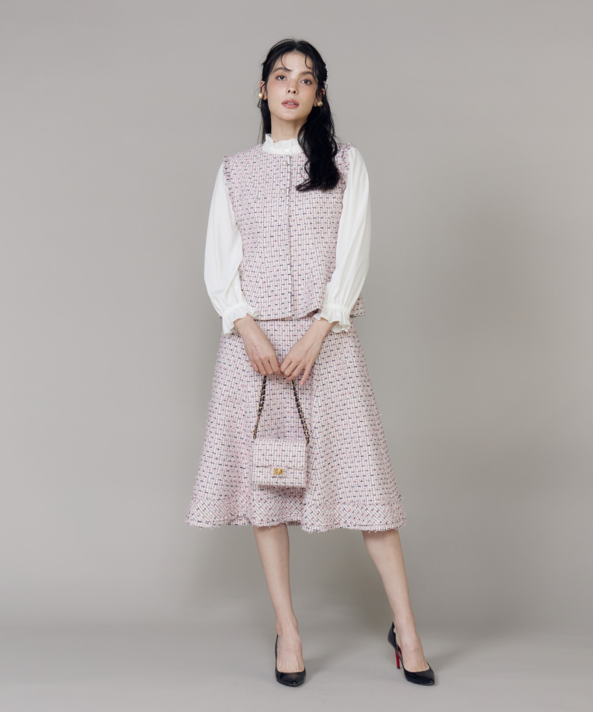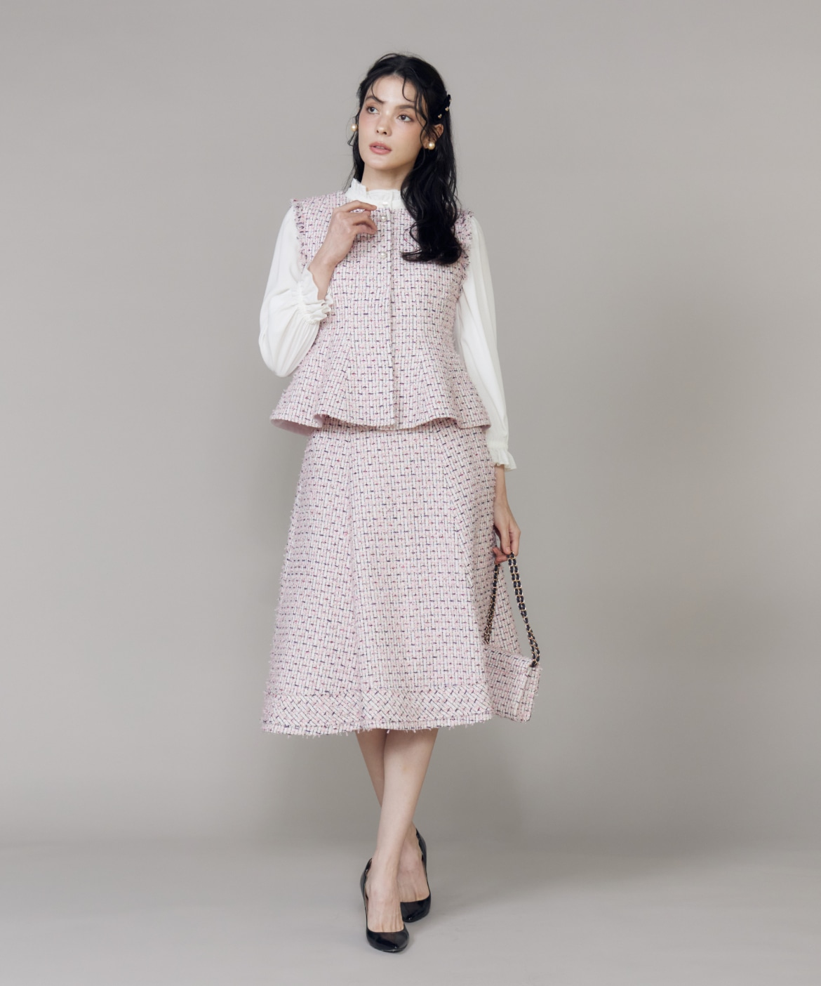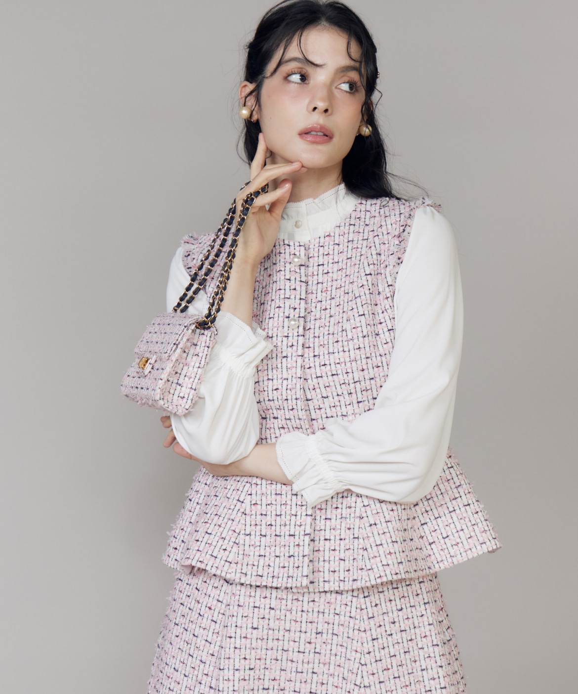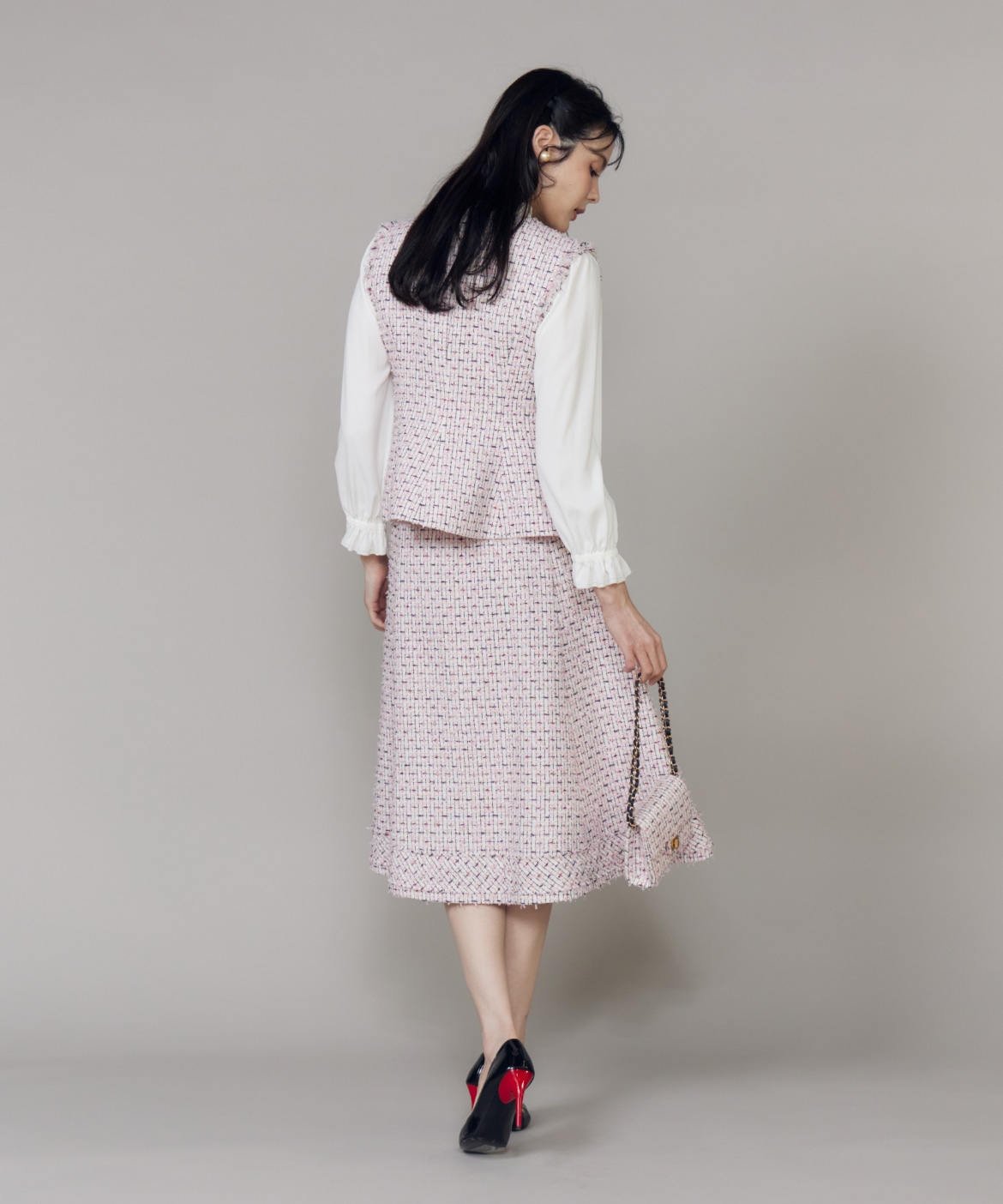《M Maglie le cassetto》フリンジツイードジレ