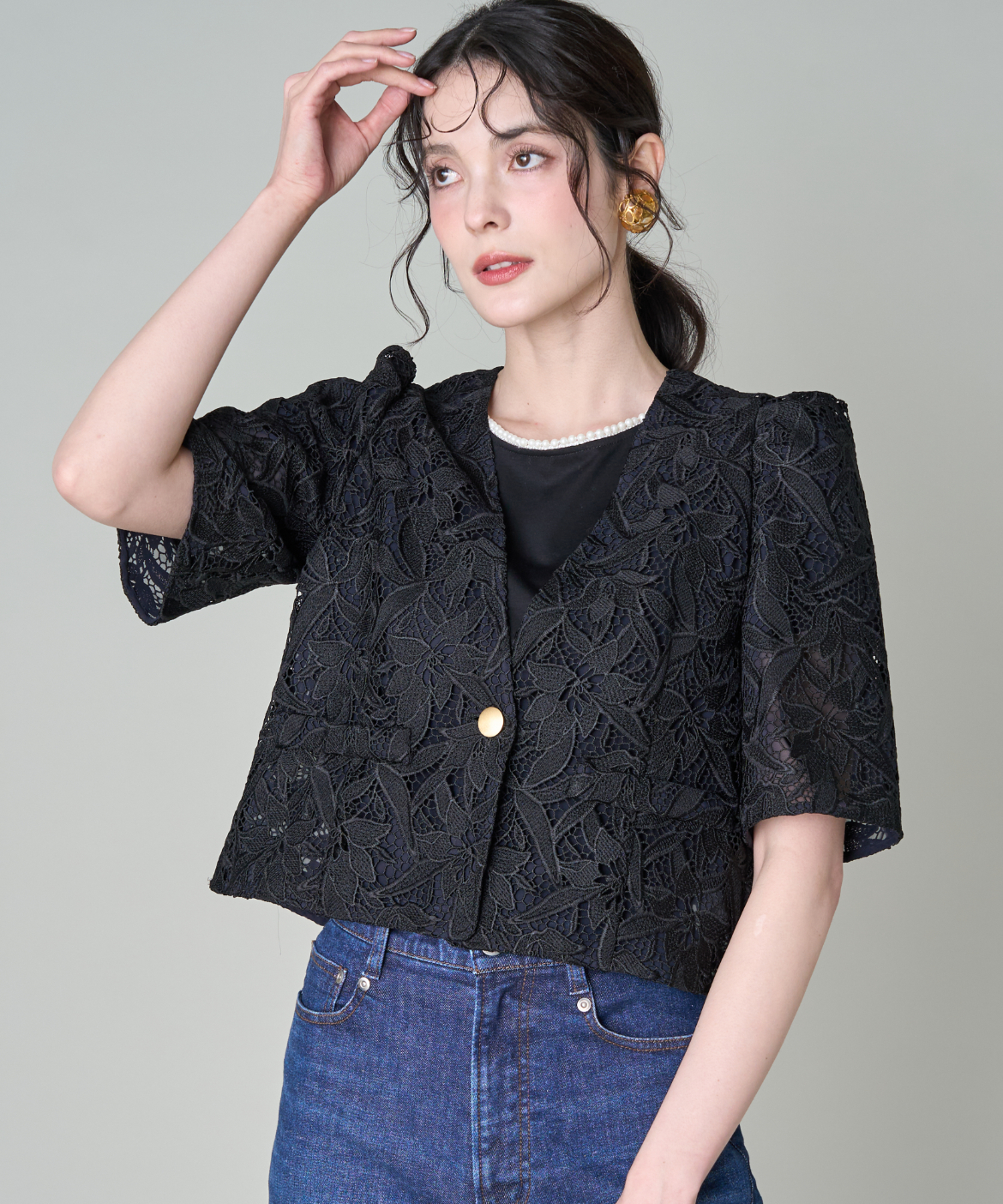M Maglie le cassetto 【先行予約】《M Maglie le cassetto》フラワーレース柄半袖ジャケット
