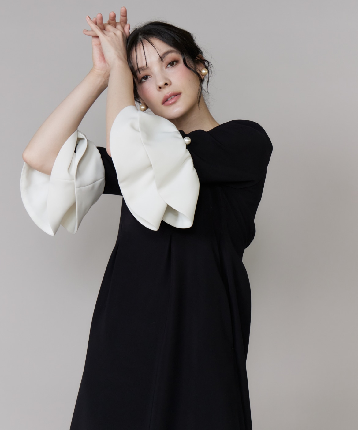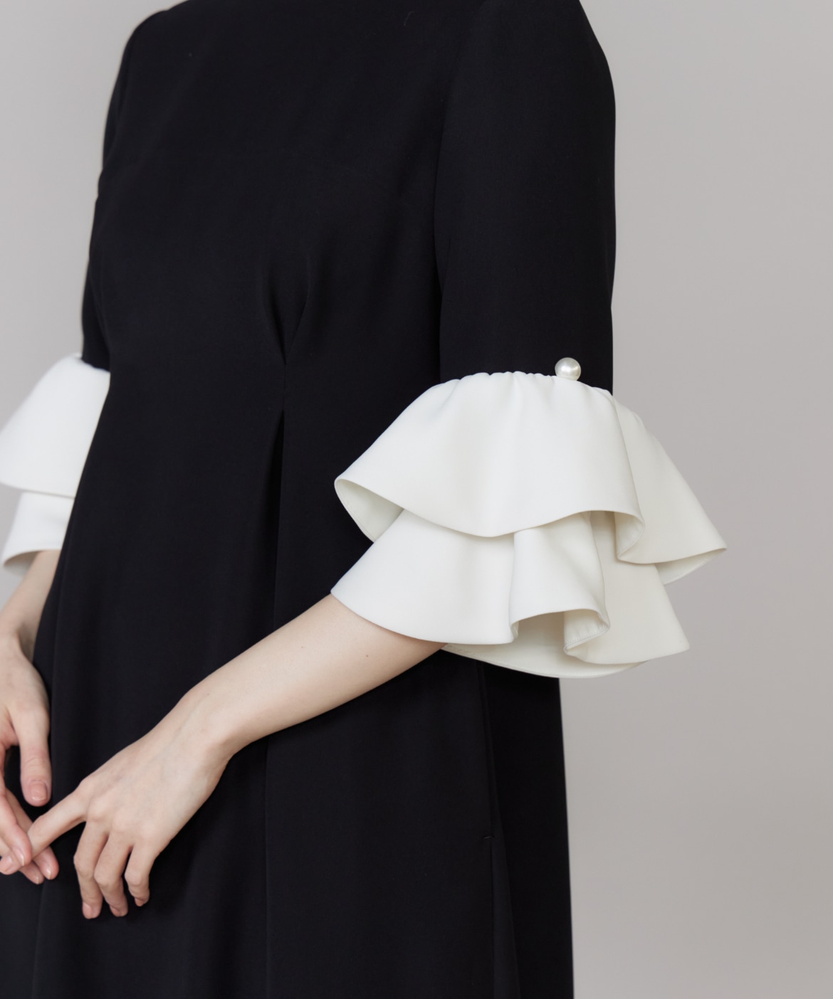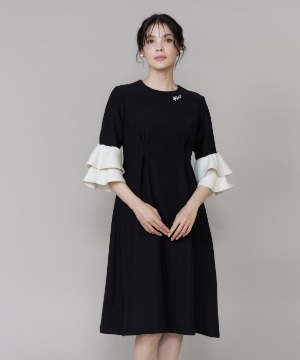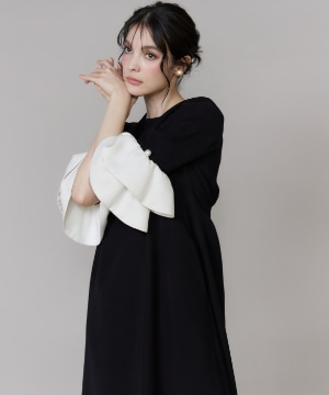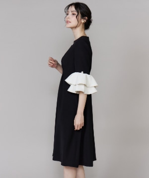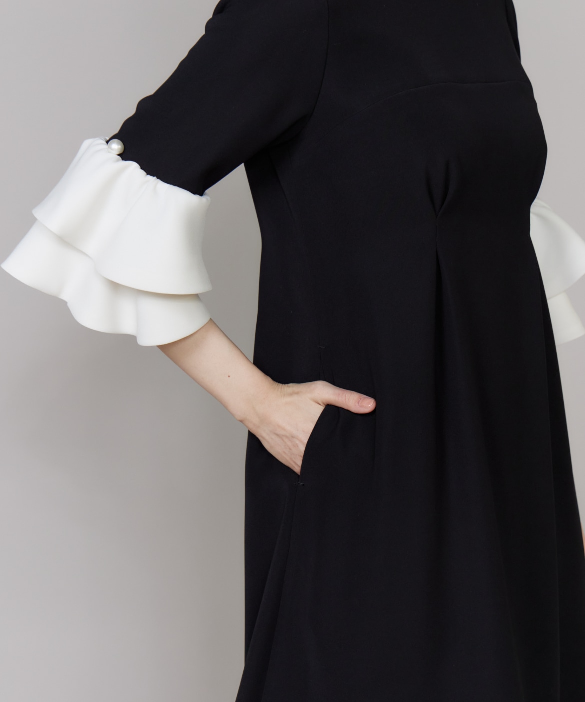 《M Maglie le cassetto》袖フリルフレアワンピース