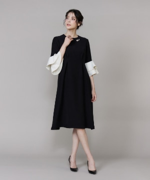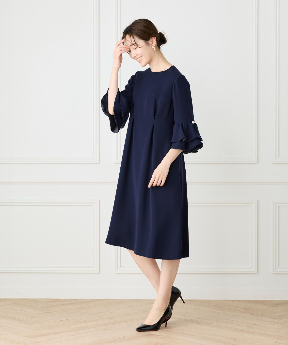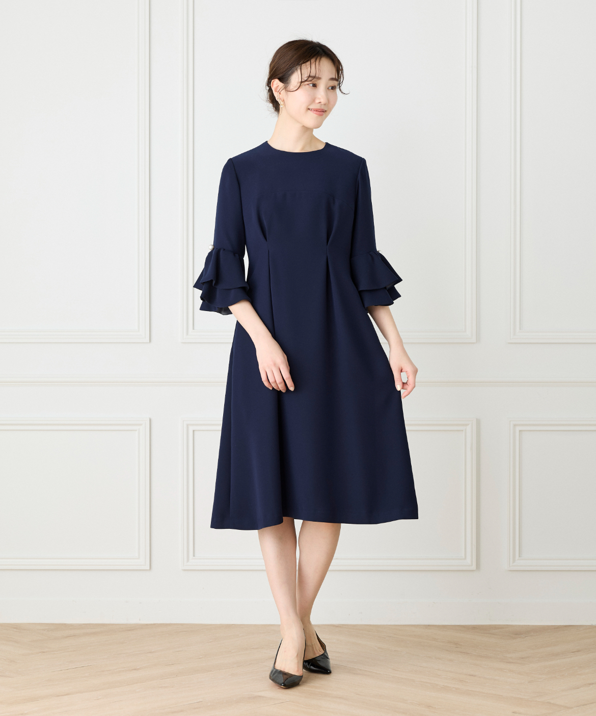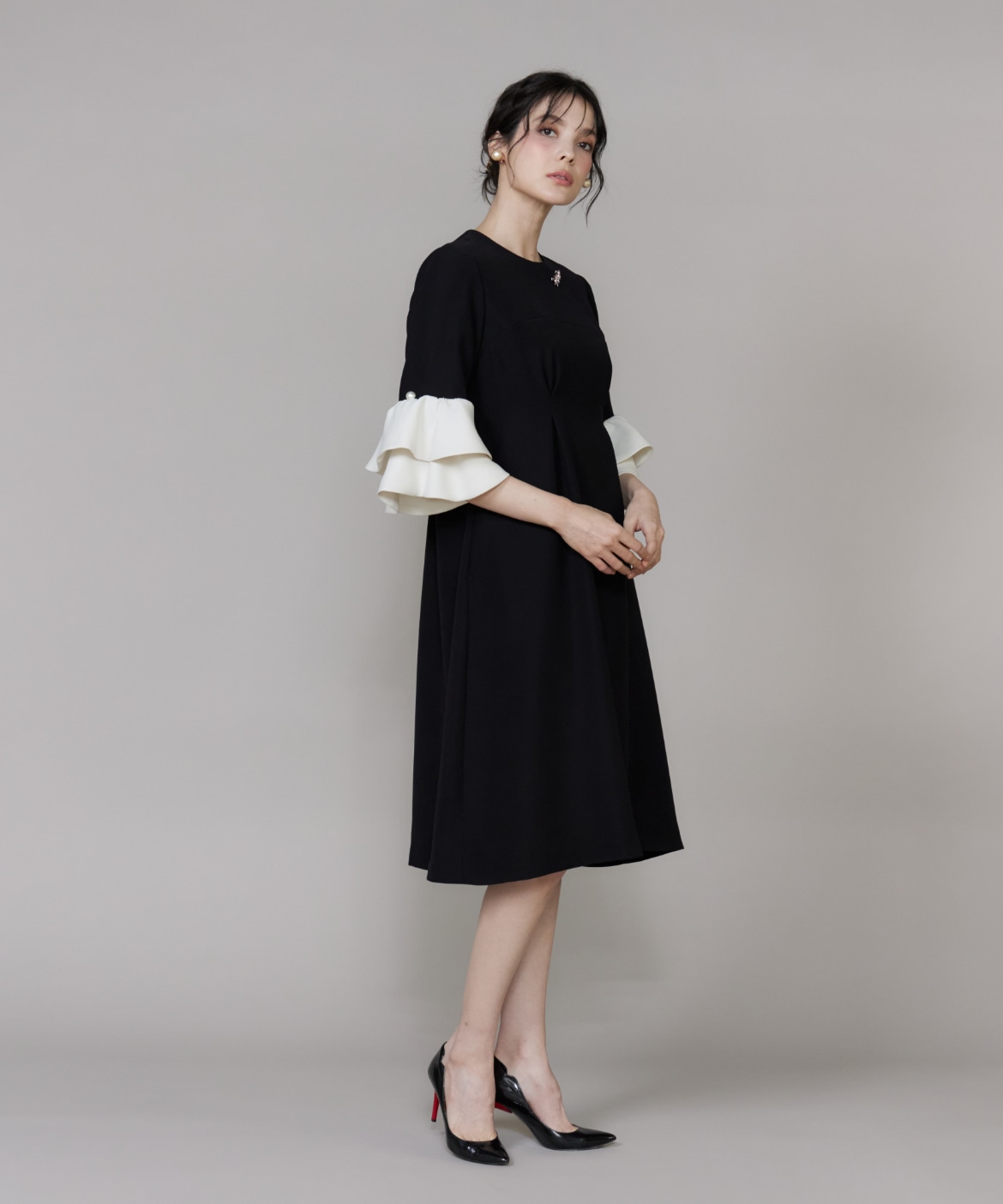 《M Maglie le cassetto》袖フリルフレアワンピース