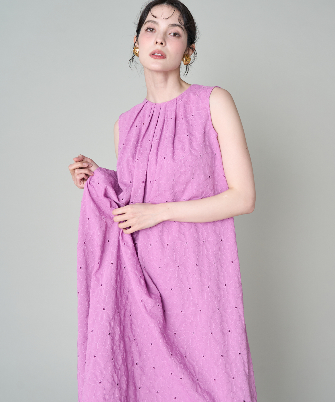 【先行予約】《M Maglie le cassetto》エンブロイダリータックフレアワンピース